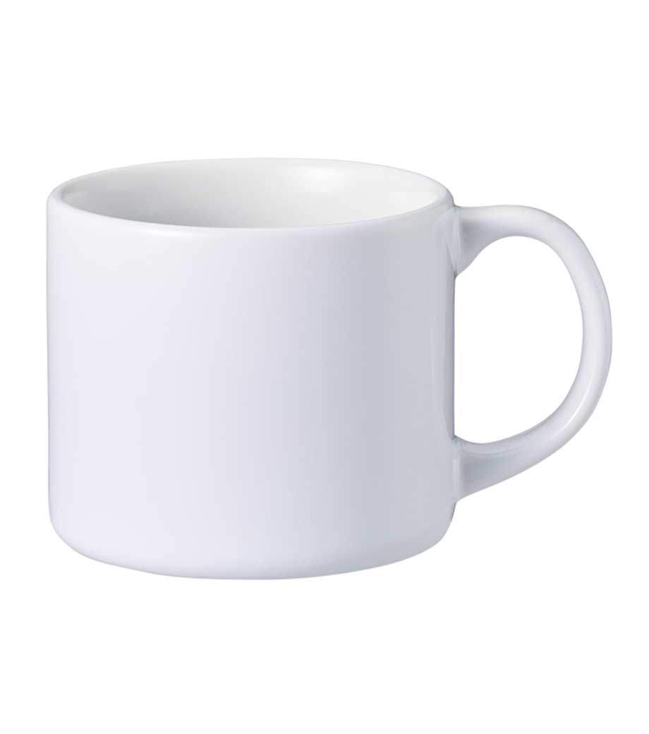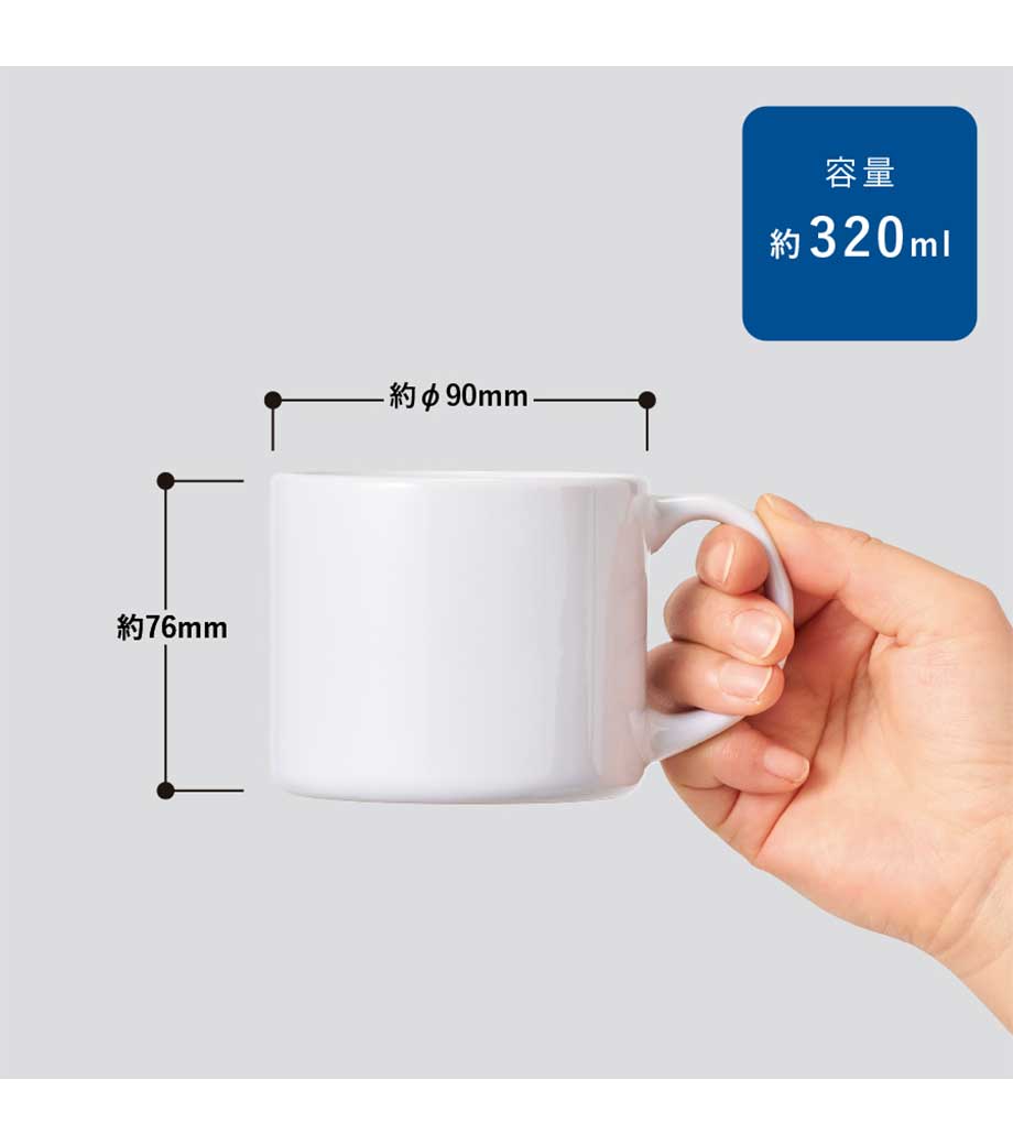 スタイリッシュマグカップはフルカラー昇華転写印刷ができる陶器製マグカップ。明るいホワイトにデザインが映えます。容量は使いやすい約350mlで安価も魅力。記念品や同人グッズ制作にピッタリです。