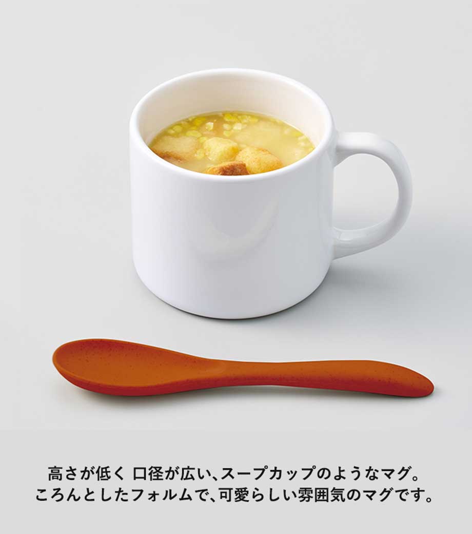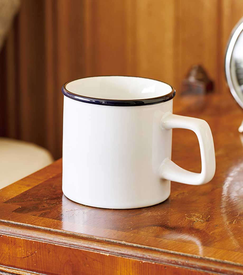 約350ml容量の陶磁器製マグカップ。外側も内側も同じ色でカラーリングされていて、シンプルながらもおしゃれなデザインです。目覚めのコーヒーやティータイムにはもちろん、毎日使えます。