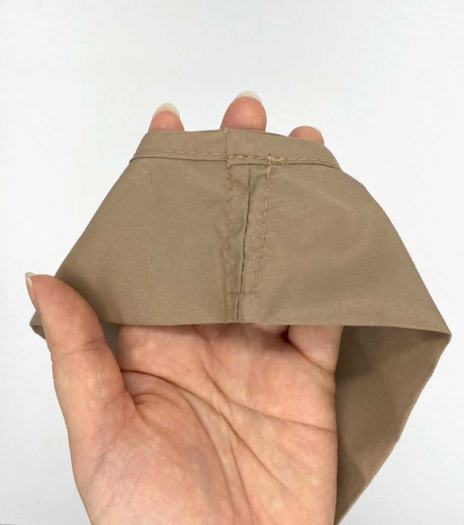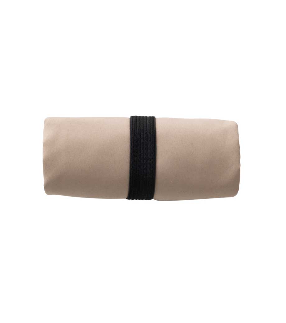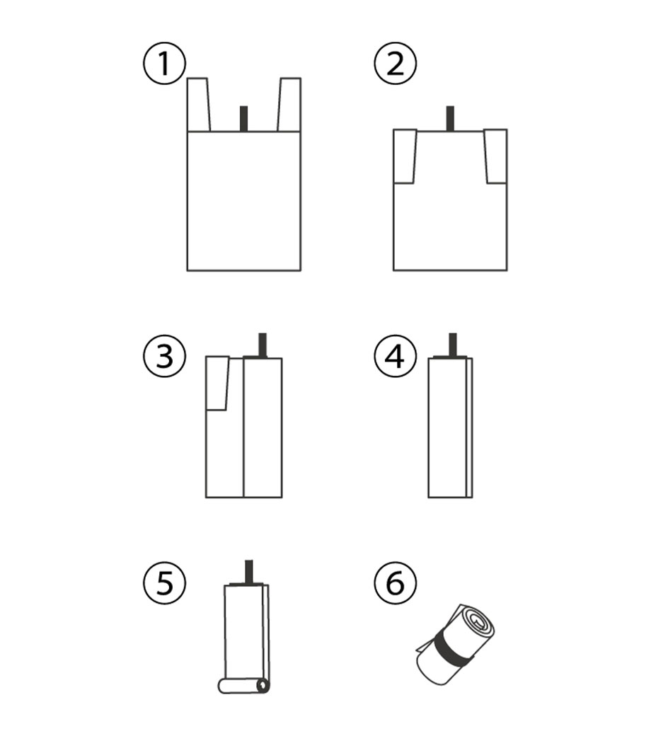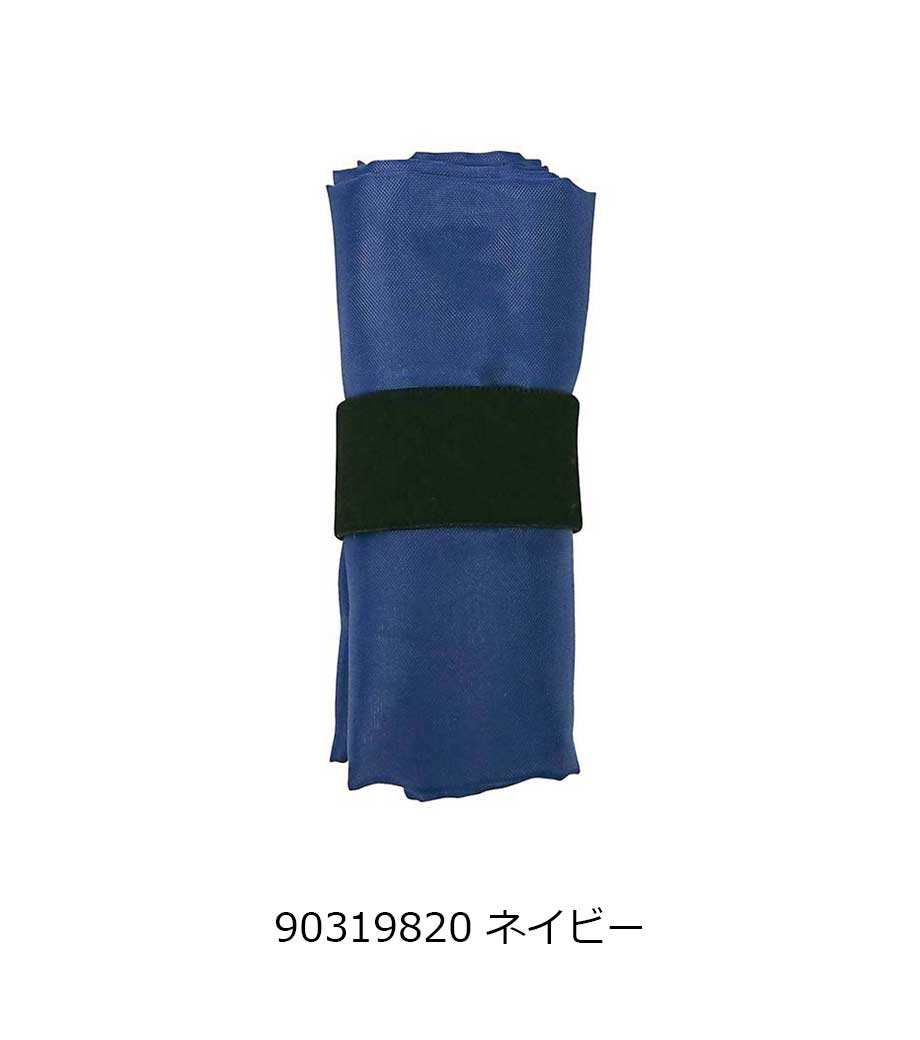 折り畳み方は簡単!縦に三つ折りしたあと、クルクルっと折り畳み、最後に面ファスナーで留めるだけ。折りたたみ時に見える位置にも名入れができるので販促効果バッチリです。