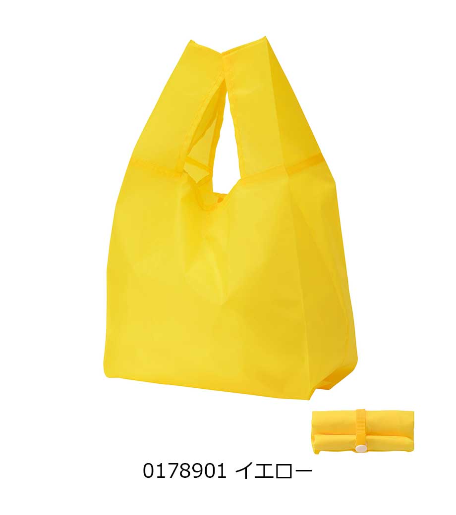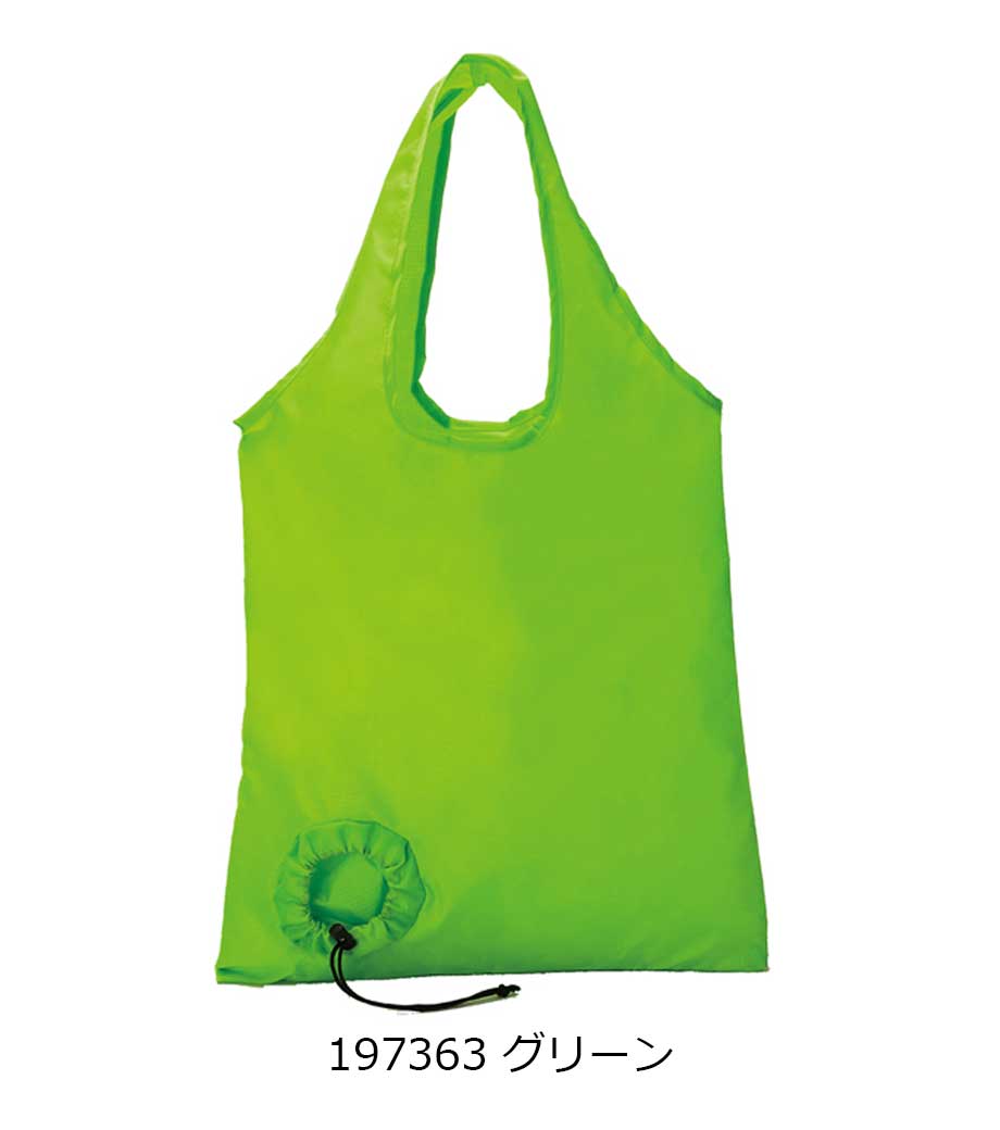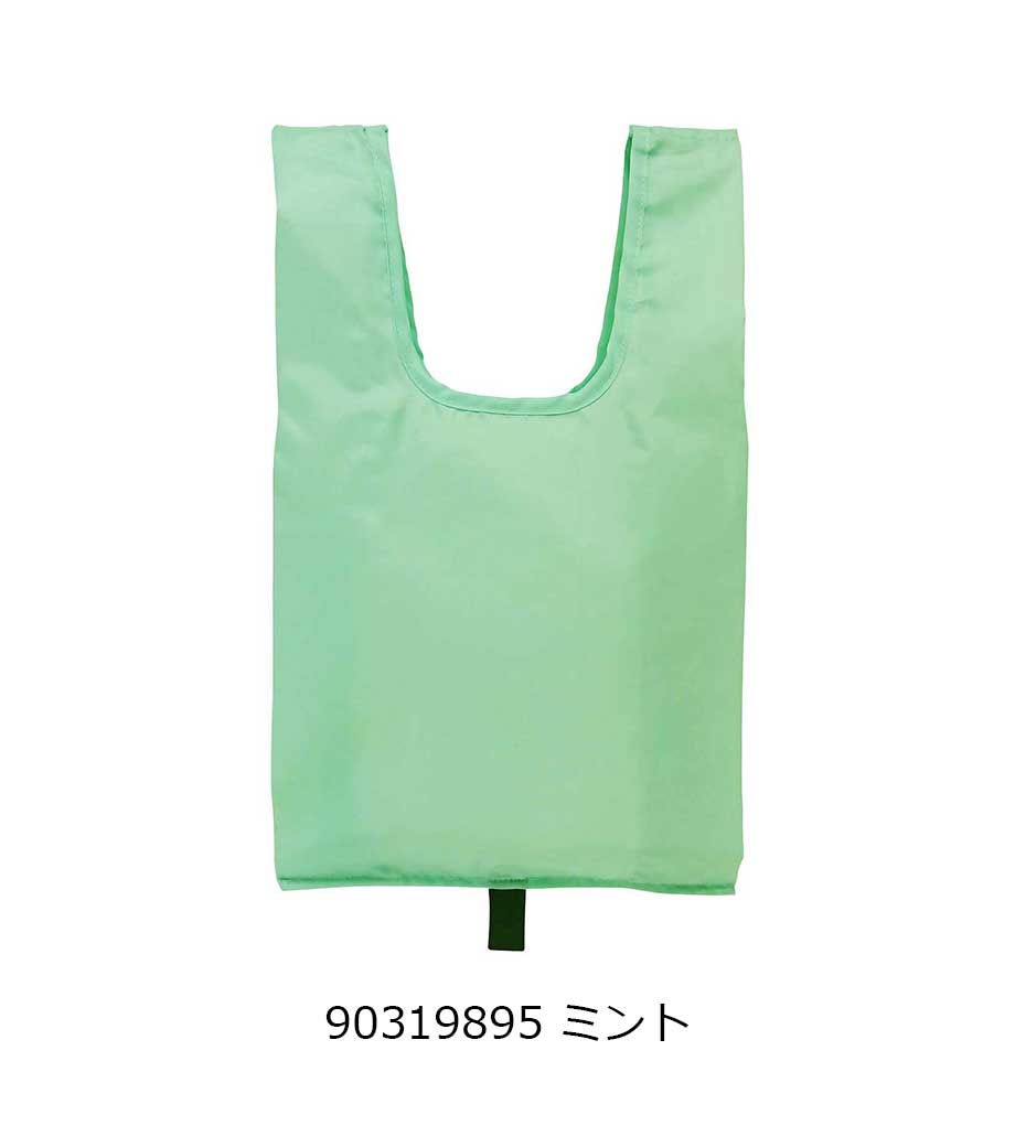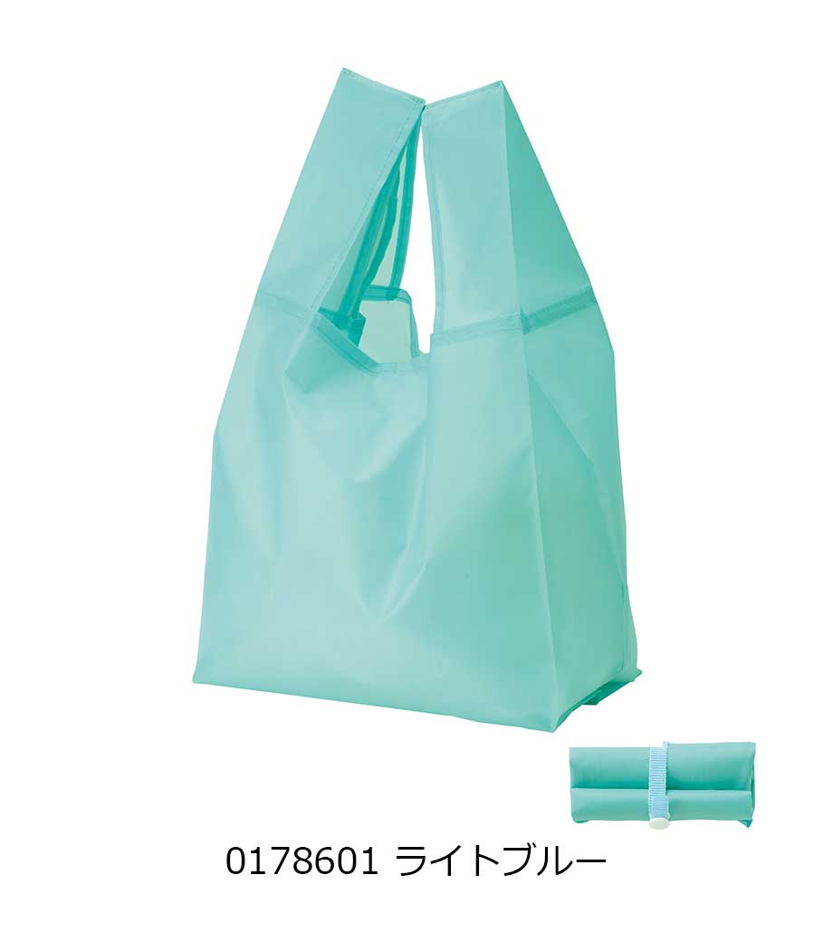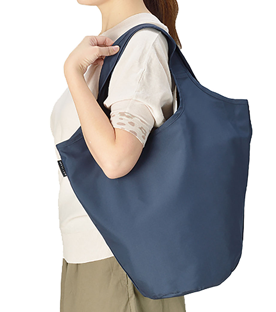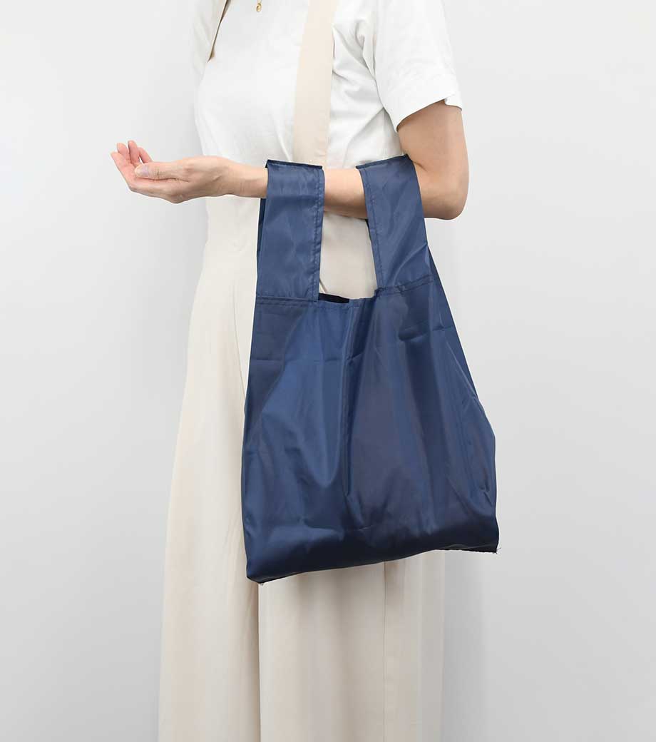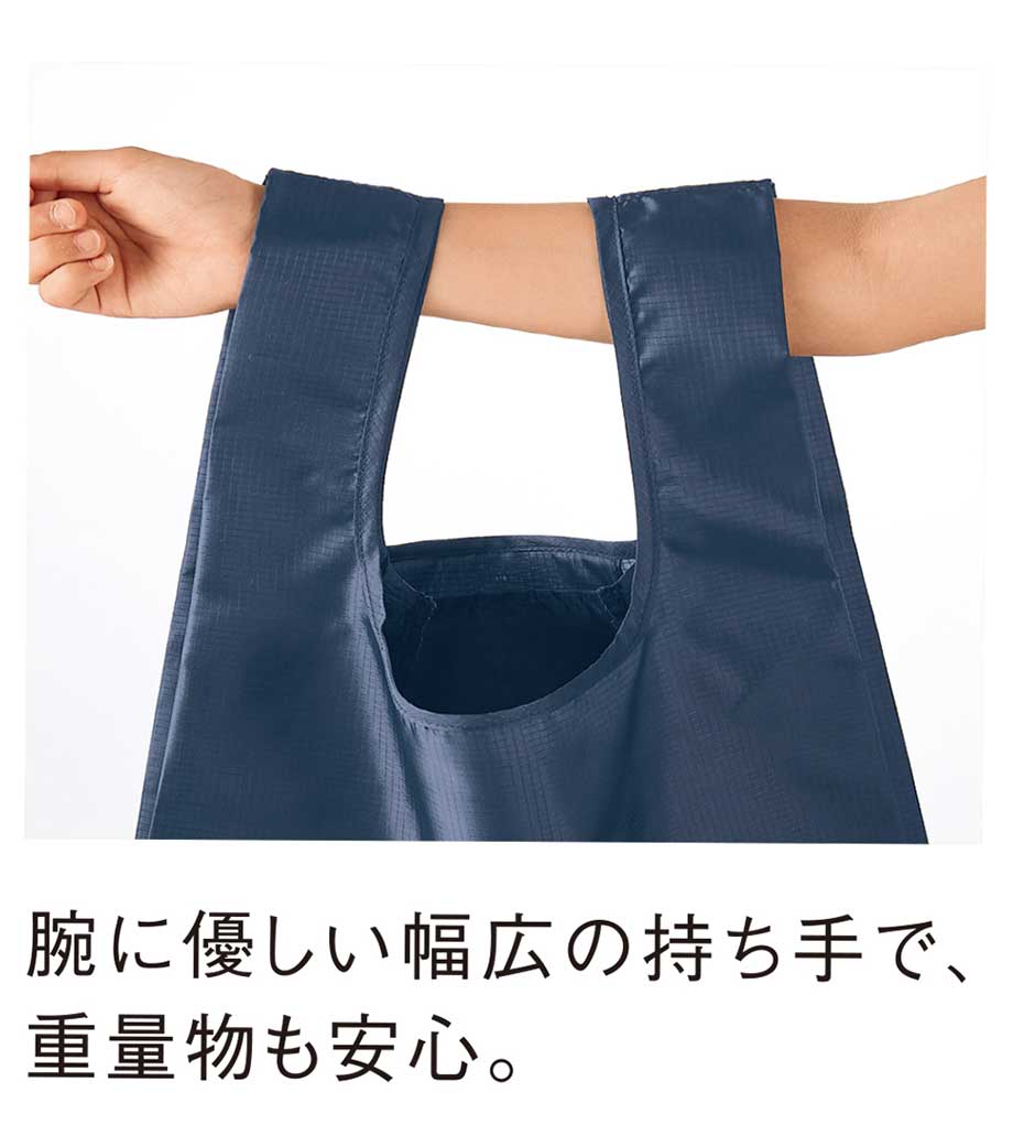 ゴムバンド付きのポリエステル製エコバッグ。くるっと畳んでゴムバンドで留めれば、手のひらサイズに早変わり。カバンの中でもかさばらず、持ち運びに便利です。肩にかけられる持ち手で、重い荷物も持ちやすいのがうれしいですね。