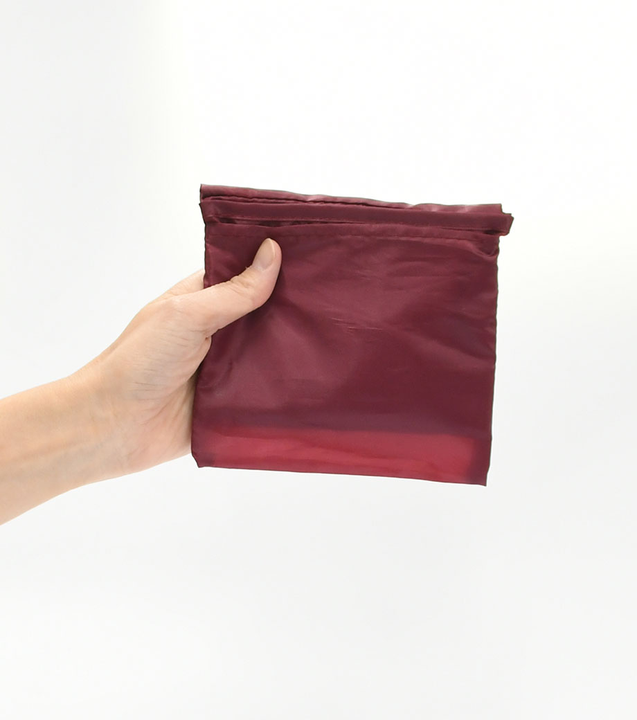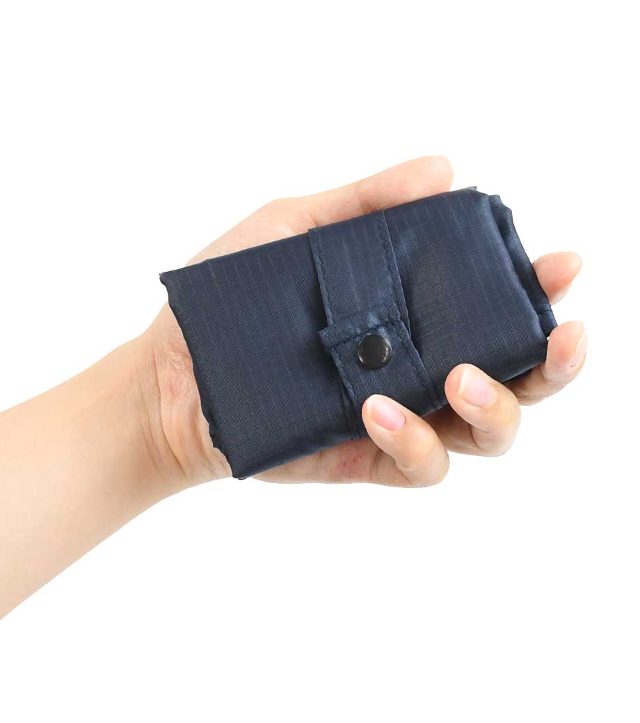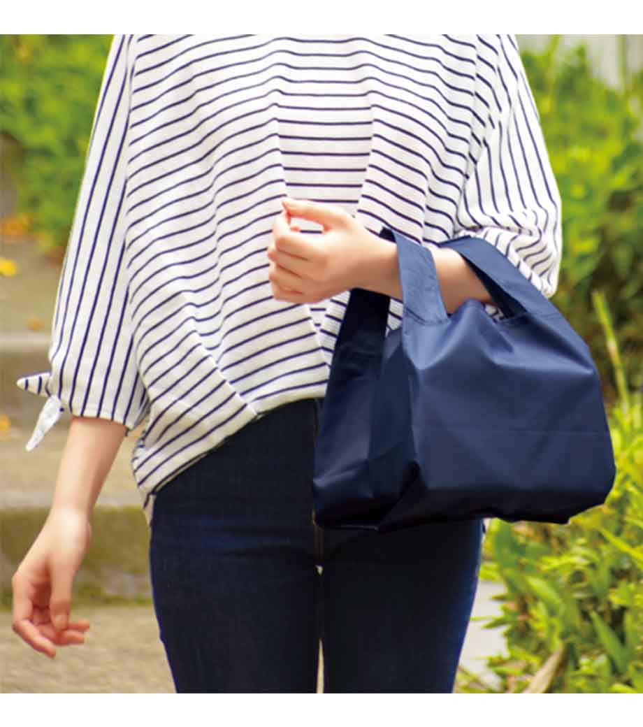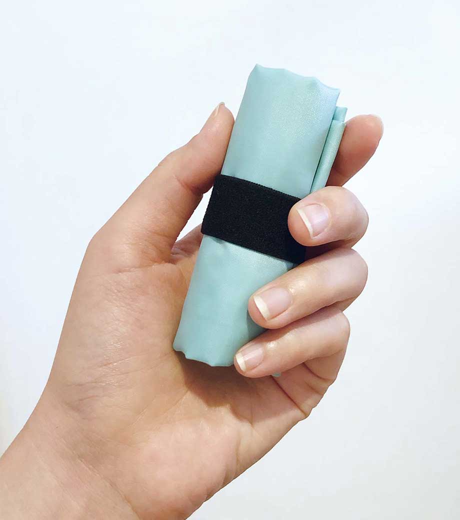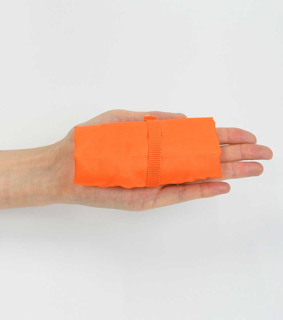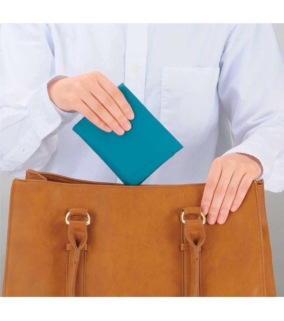 バッグ本体はスッキリとコンパクトに折り畳むことができ、面ファスナーで留めるだけのお手軽さ!普段使うバッグに忍ばせておけばいつでもさっと取り出せます。