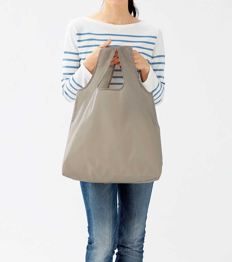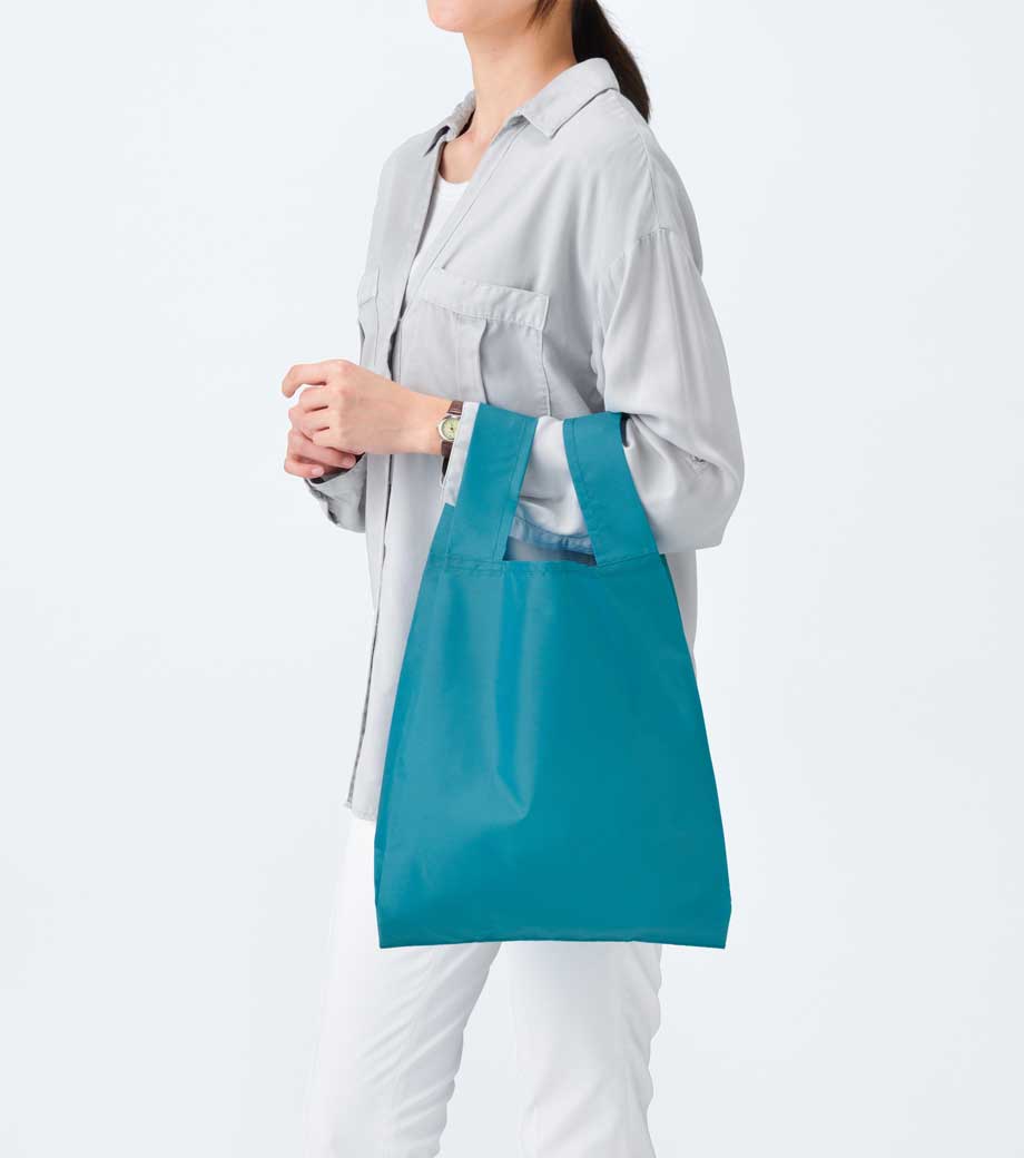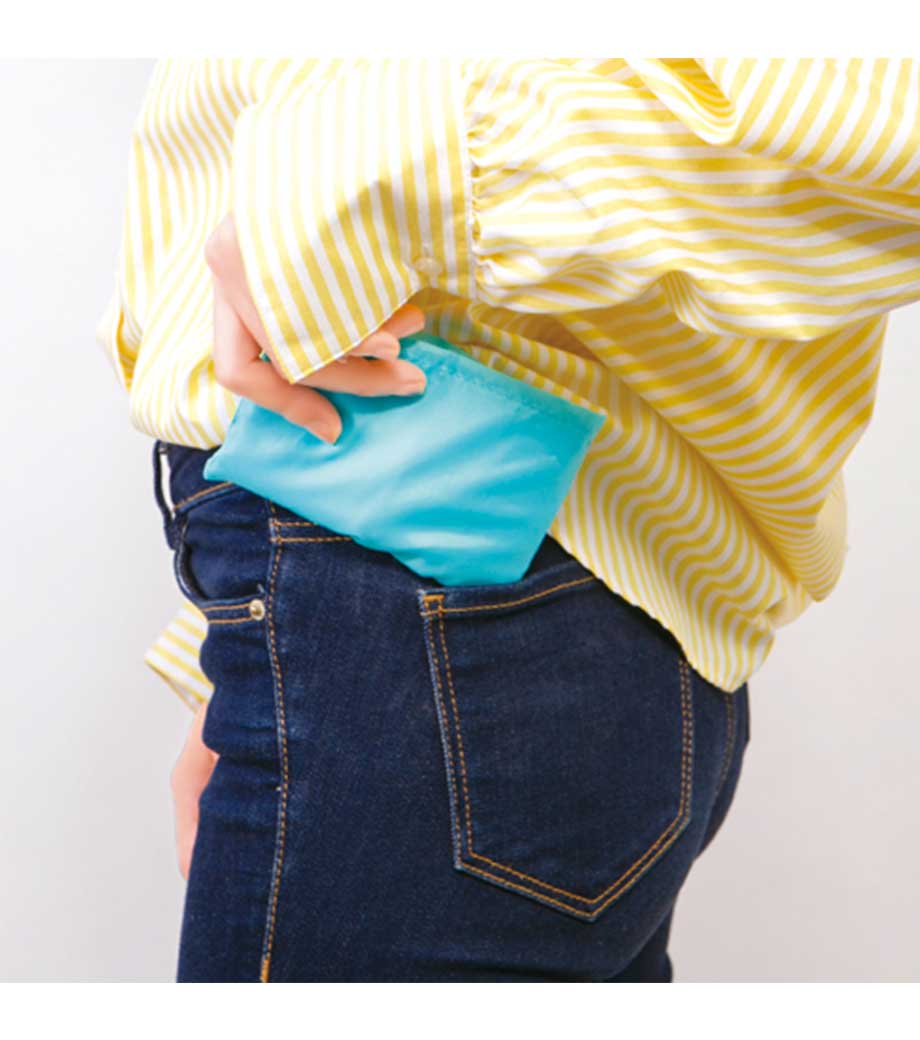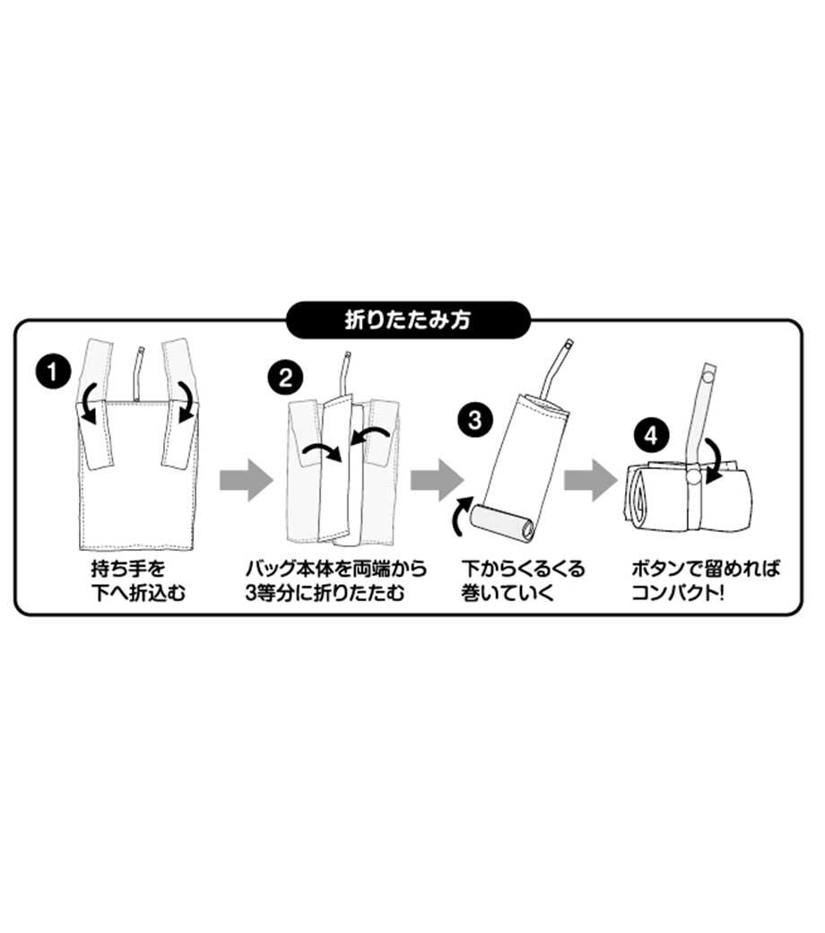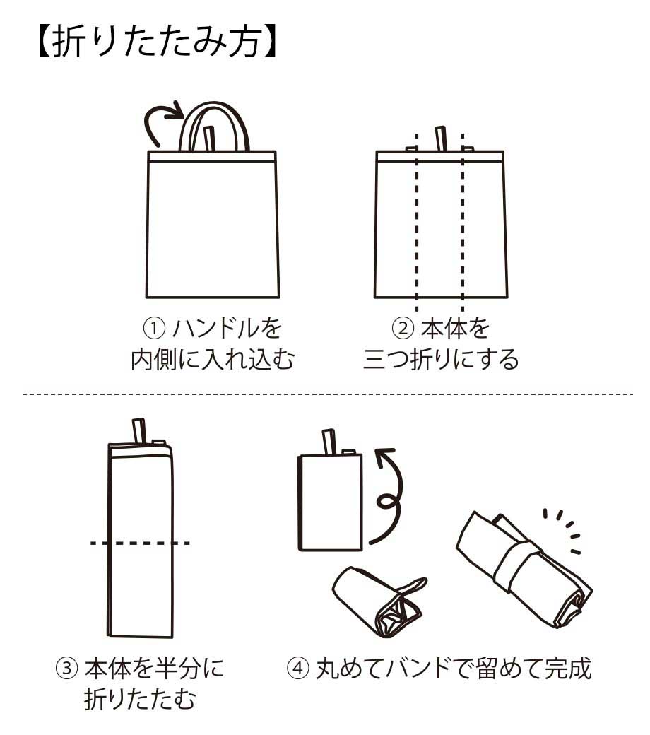 バッグ本体はスッキリとコンパクトに折り畳むことができ、面ファスナーで留めるだけのお手軽さ!普段使うバッグに忍ばせておけばいつでもさっと取り出せます。