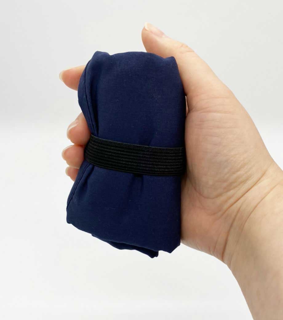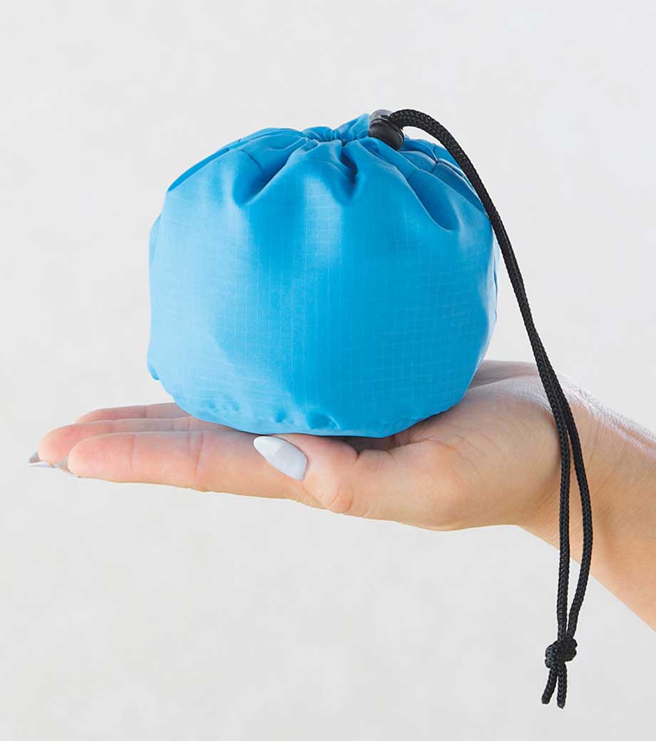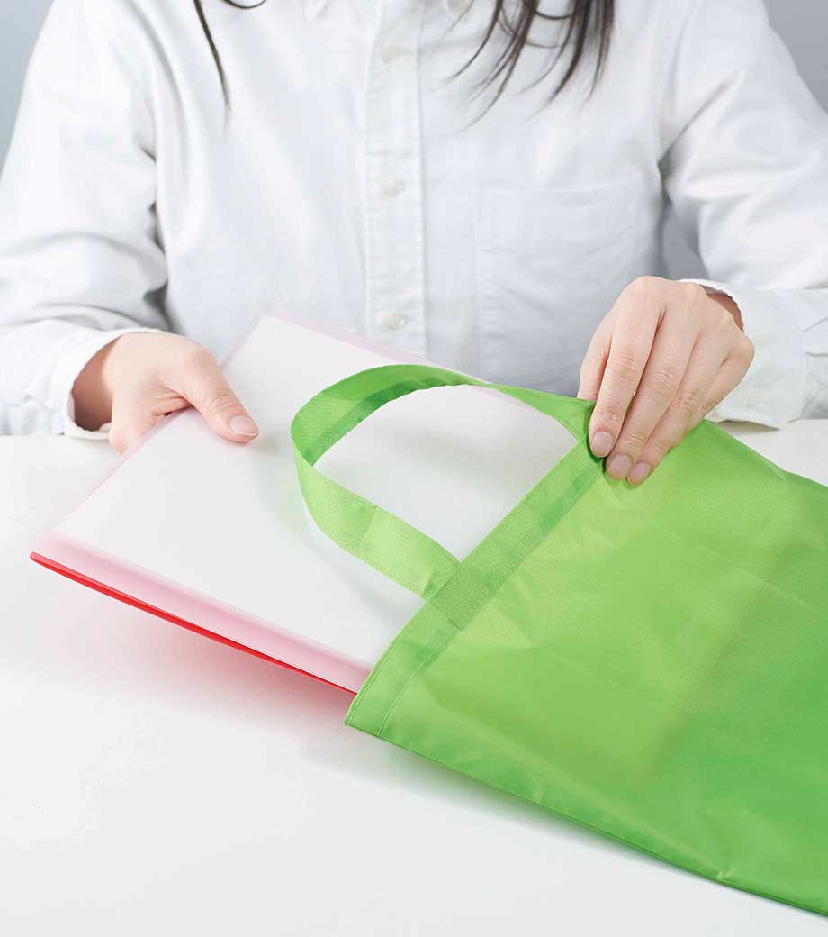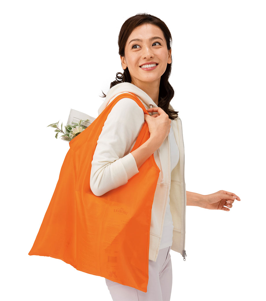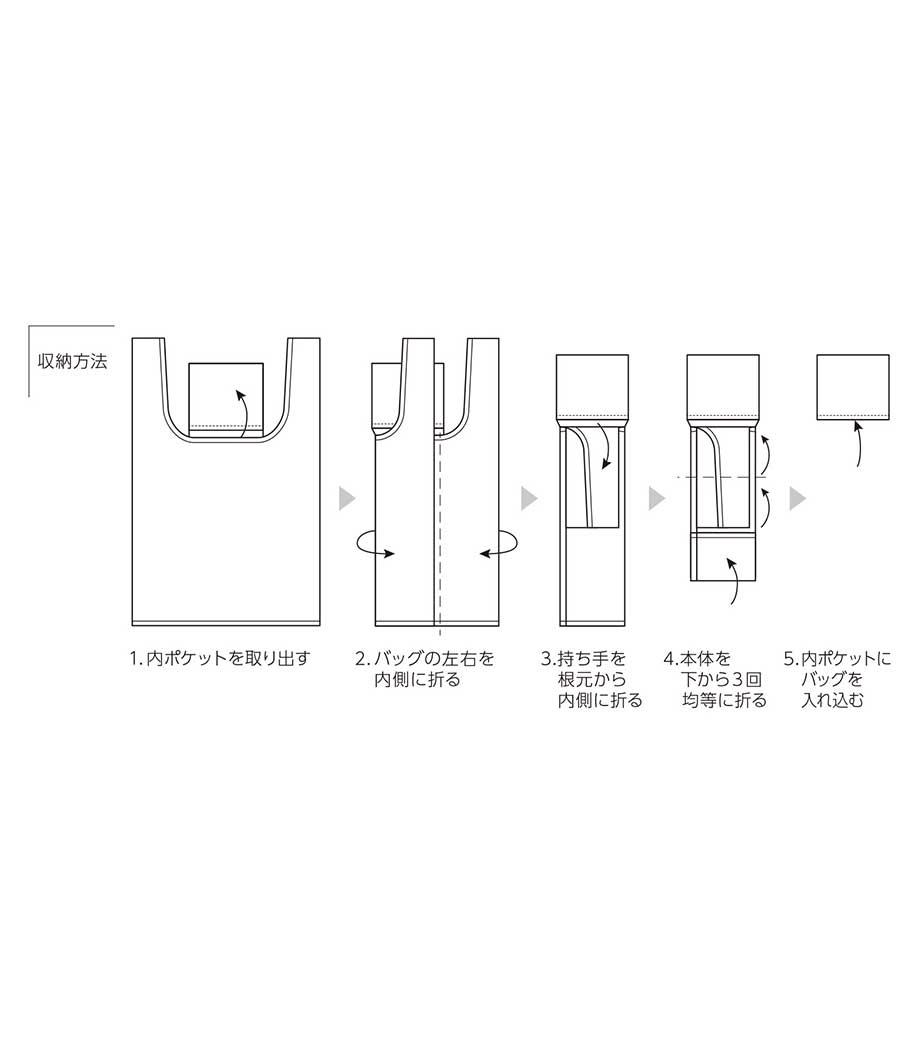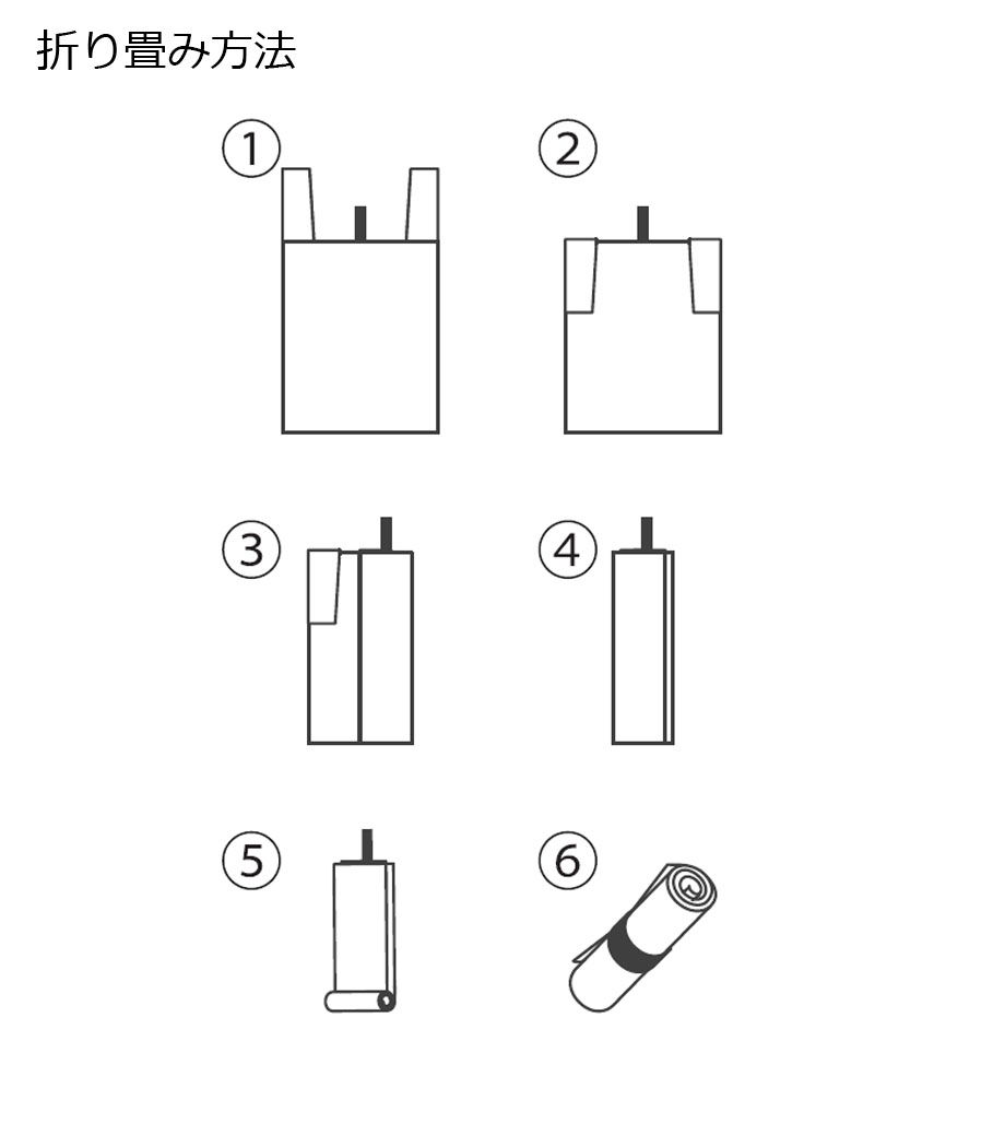 バッグ本体はスッキリとコンパクトに折り畳むことができ、面ファスナーで留めるだけのお手軽さ!普段使うバッグに忍ばせておけばいつでもさっと取り出せます。