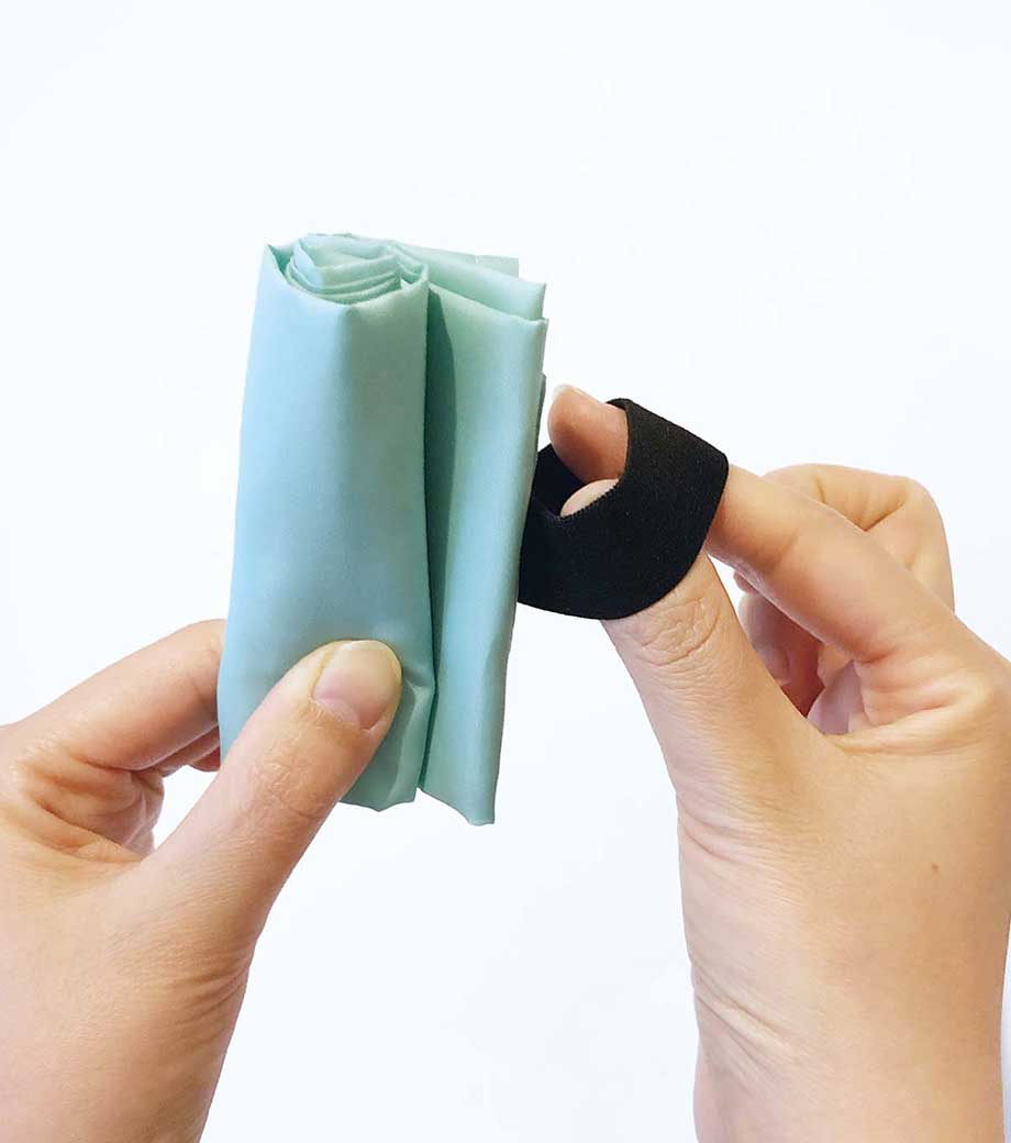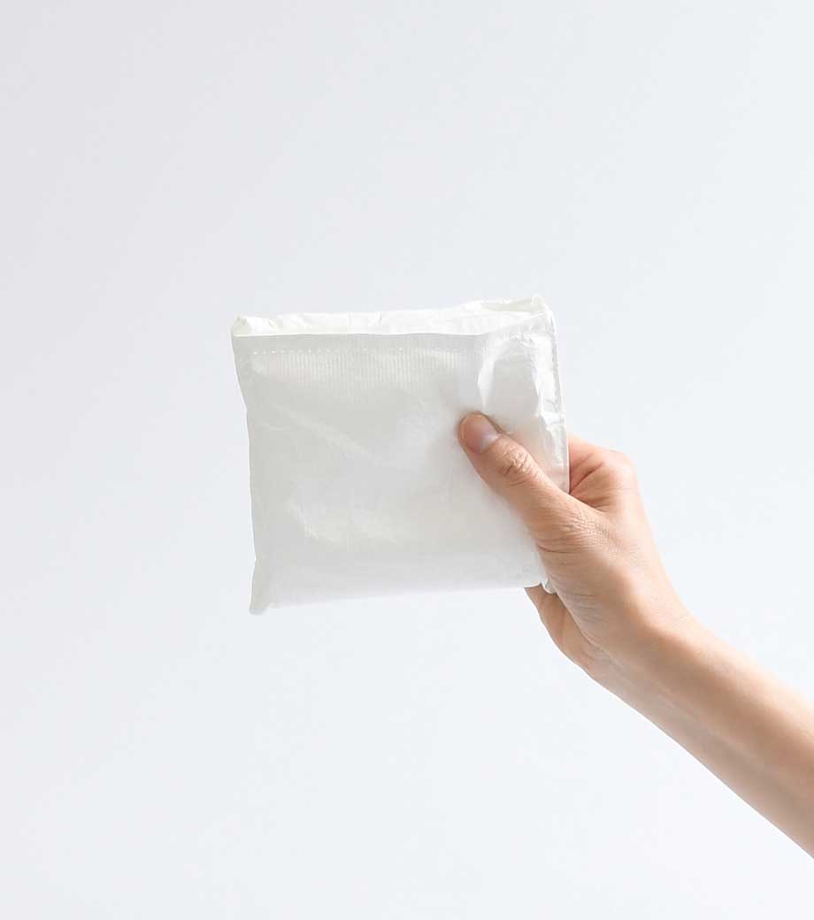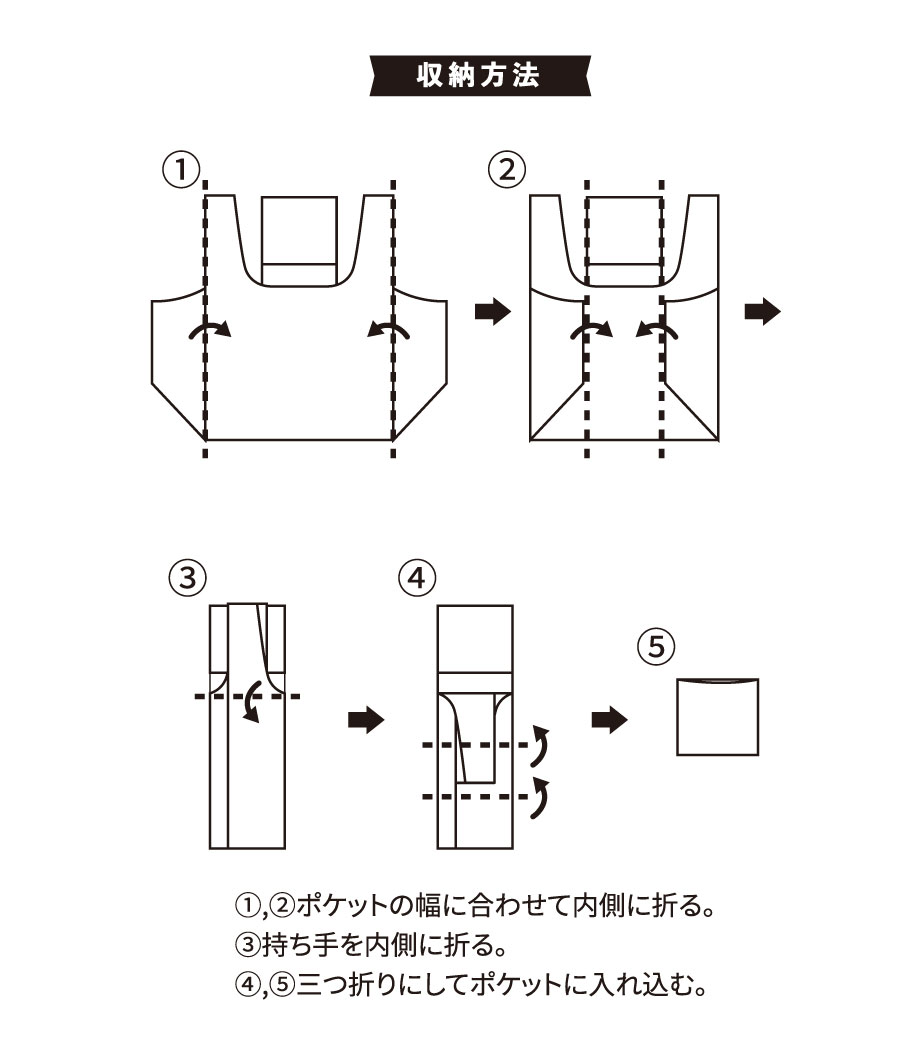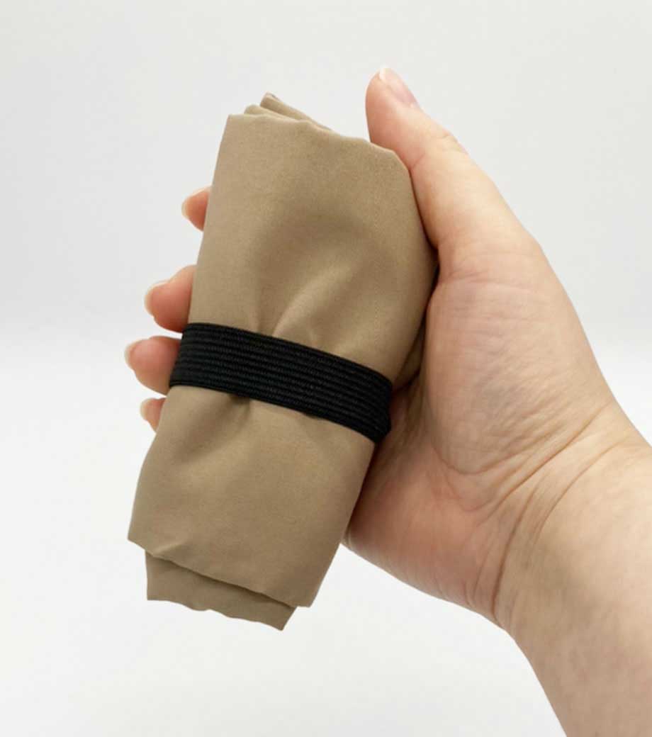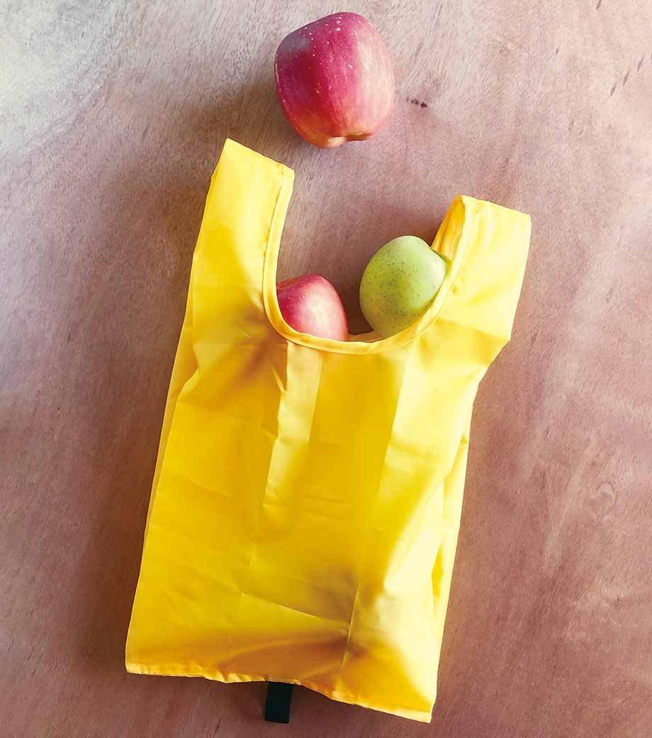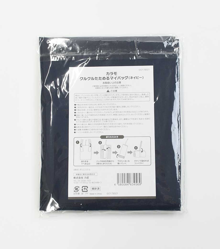 バッグ本体はスッキリとコンパクトに折り畳むことができ、面ファスナーで留めるだけのお手軽さ!普段使うバッグに忍ばせておけばいつでもさっと取り出せます。