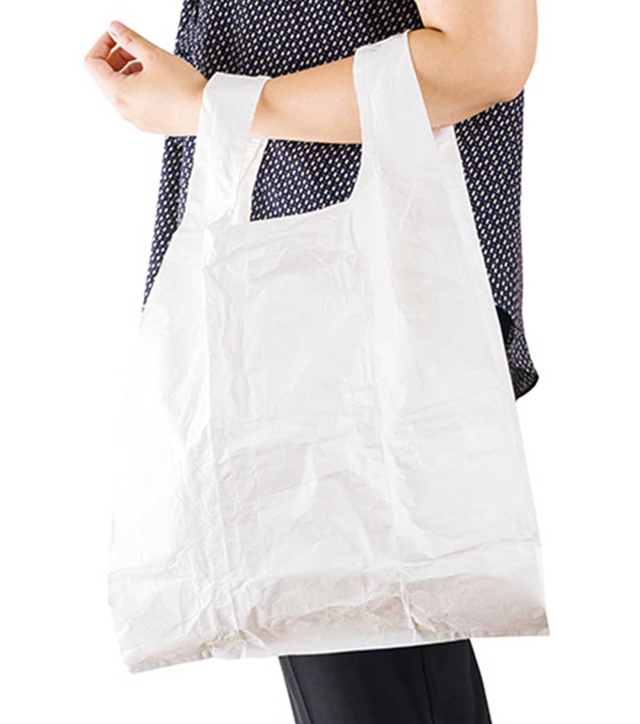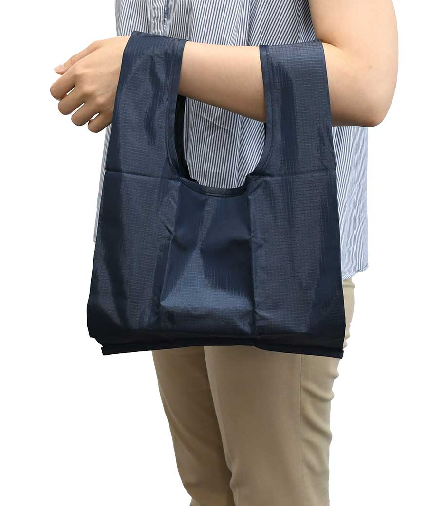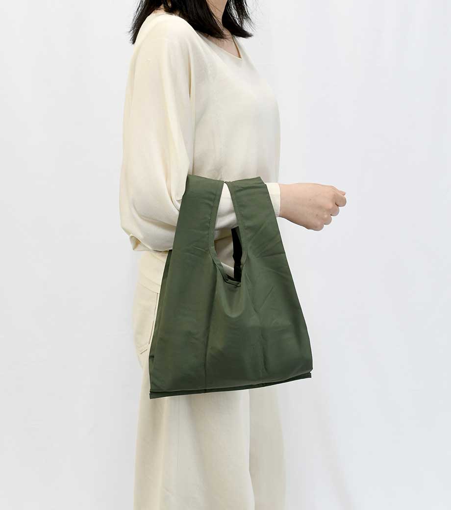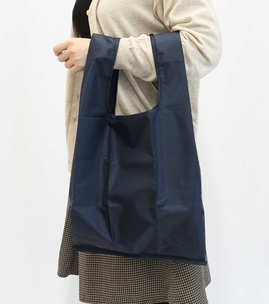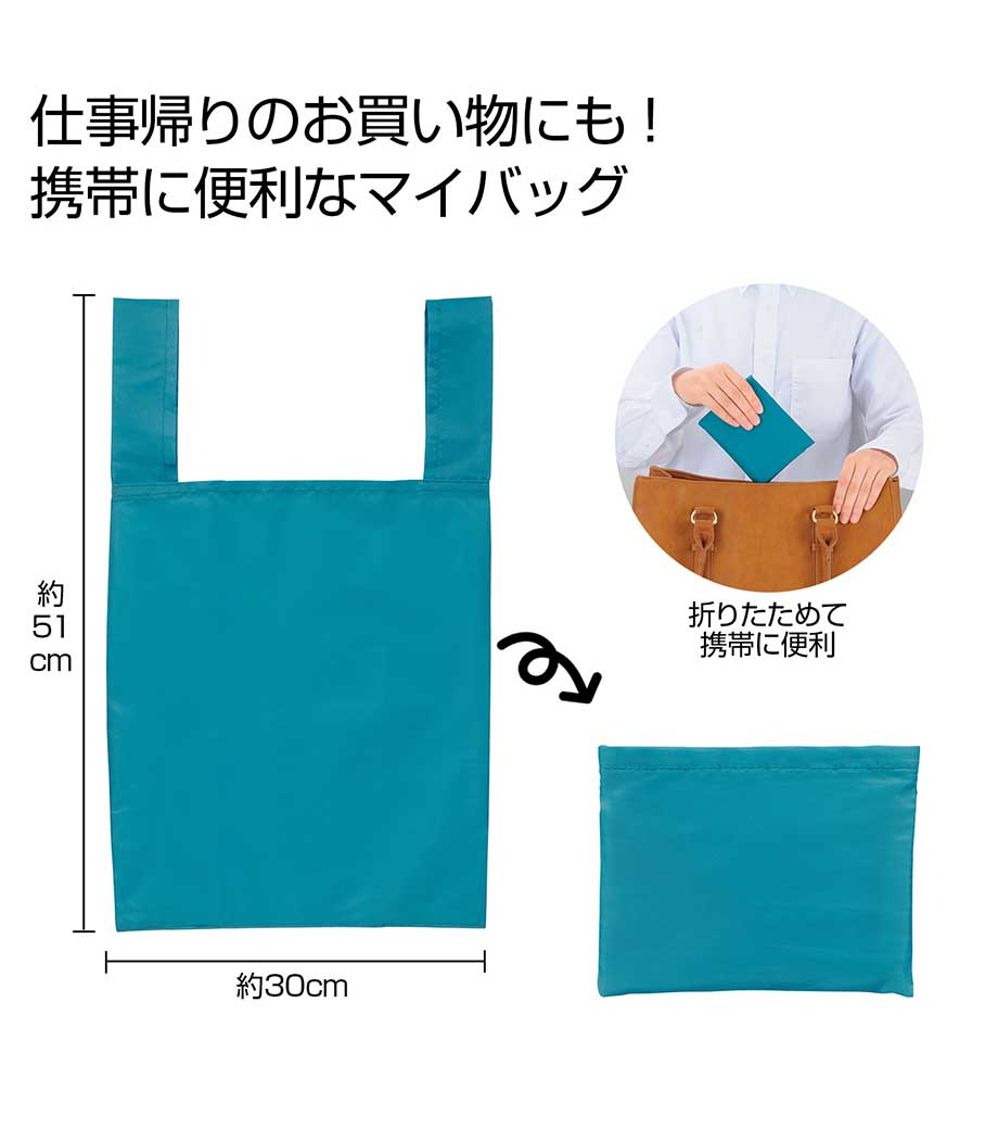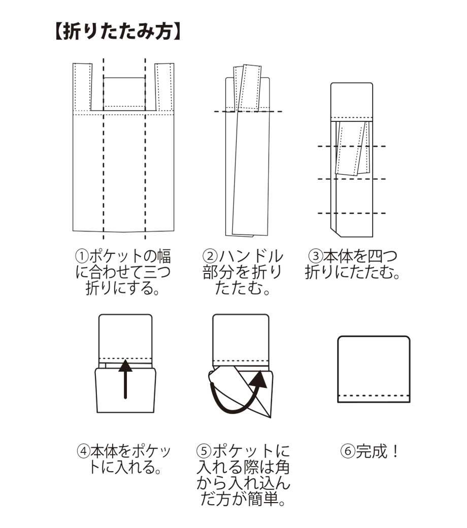 コンビニ弁当を水平に入れることができるレジ袋型で、ランチタイムの買い出しやサブバッグにピッタリ!使わないときは折りたたんでくるっとコンパクトに。携帯に便利です。