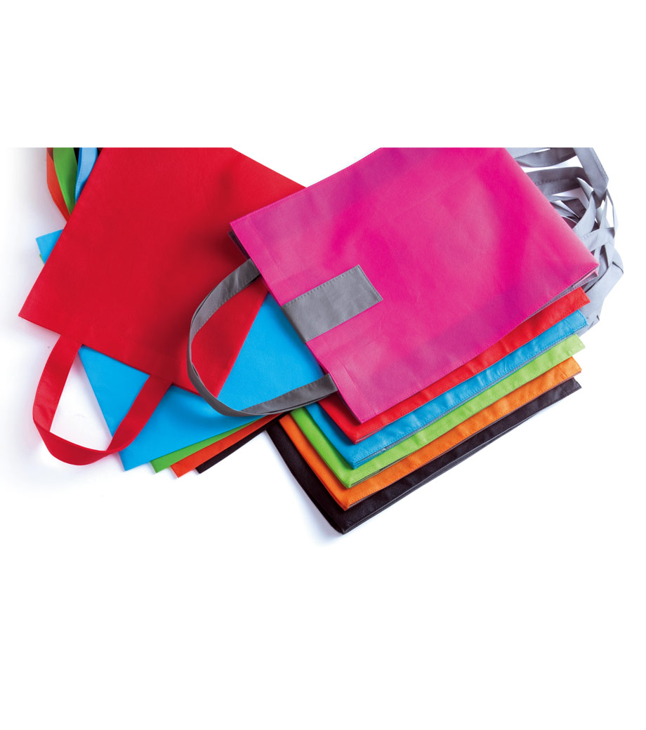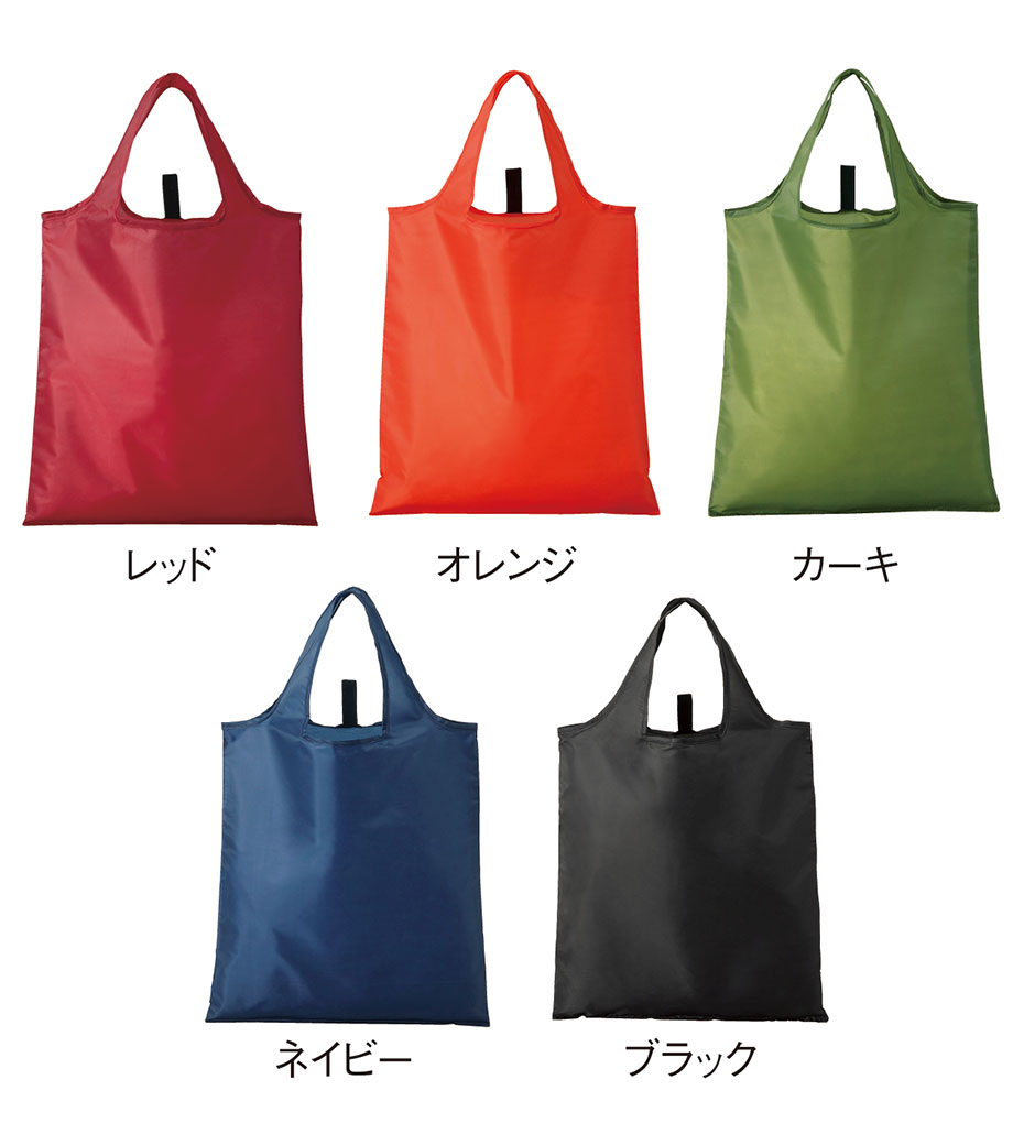 本体色はレッド・ピンク・オレンジ・グリーン・ブルー・ブラックのカラフルな6色展開。企業カラーやキャラクターイメージに合わせてオリジナルエコバッグを製作するのはいかがでしょうか。