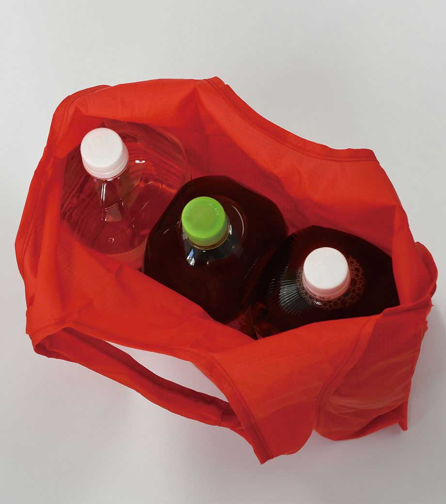 セルトナ・ポータブルマイバッグは小さく折りたためて大きく使えるのが魅力のエコバッグ。2Lペットボトルが約2本入るサイズです。使いやすいレジ袋型で毎日のお買い物やレジャーに便利です。