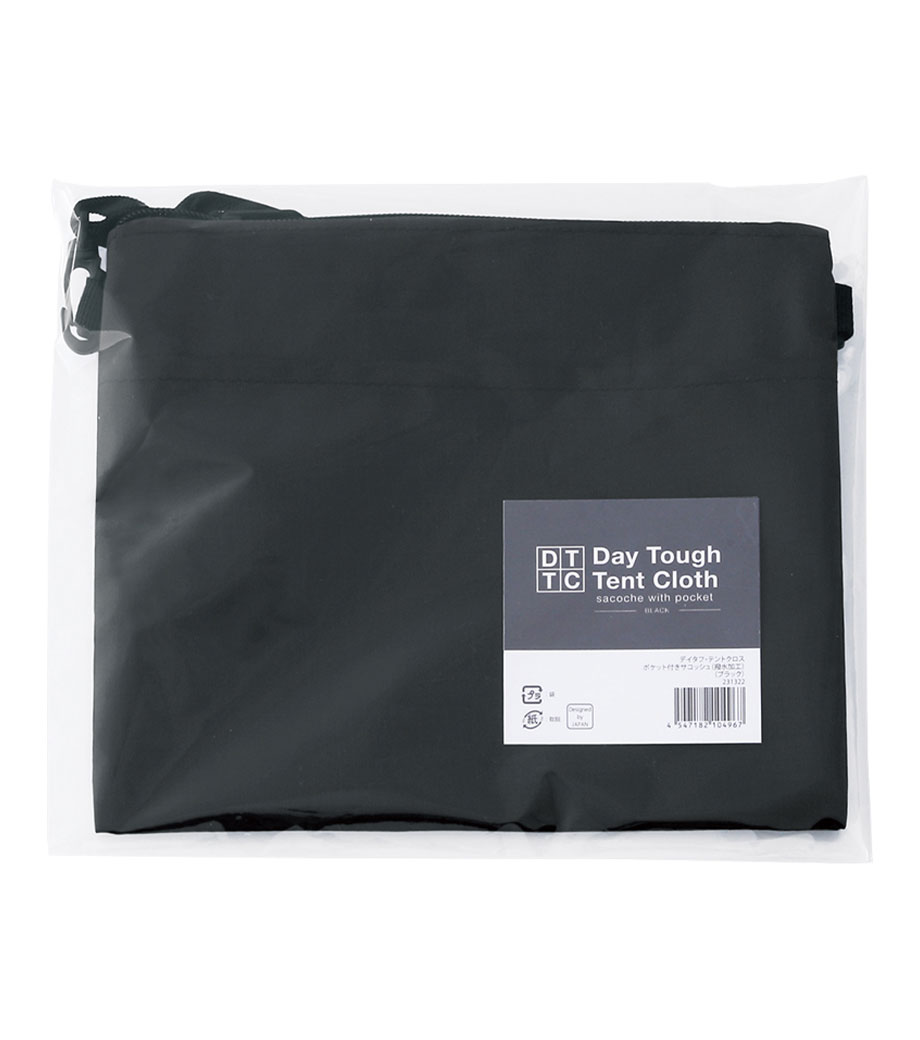 デイタフ・テントクロスポケット付きサコッシュ(撥水加工)の表面には撥水加工がしてあります。水や汚れに強く雨の日のお出掛けやアウトドアでも安心です。長財布やスマホなどの貴重品を肌身離さず持ち運びできる便利なサイズ。最低限必要な防災グッズを入れて玄関・寝室に置いておいても邪魔になりません。ハンカチなど小物が入るフロントポケット付きです。