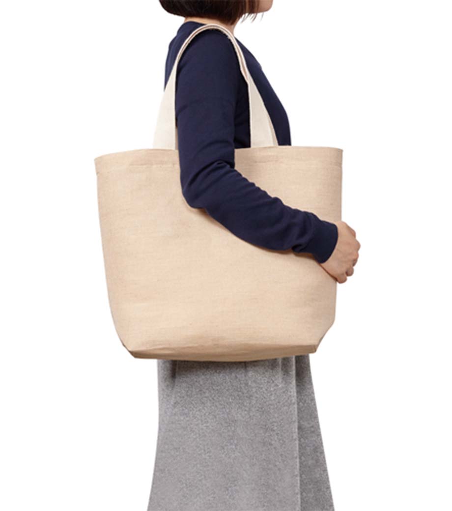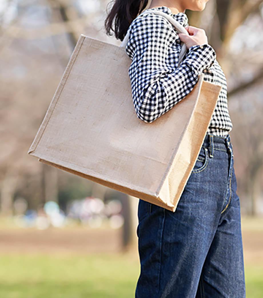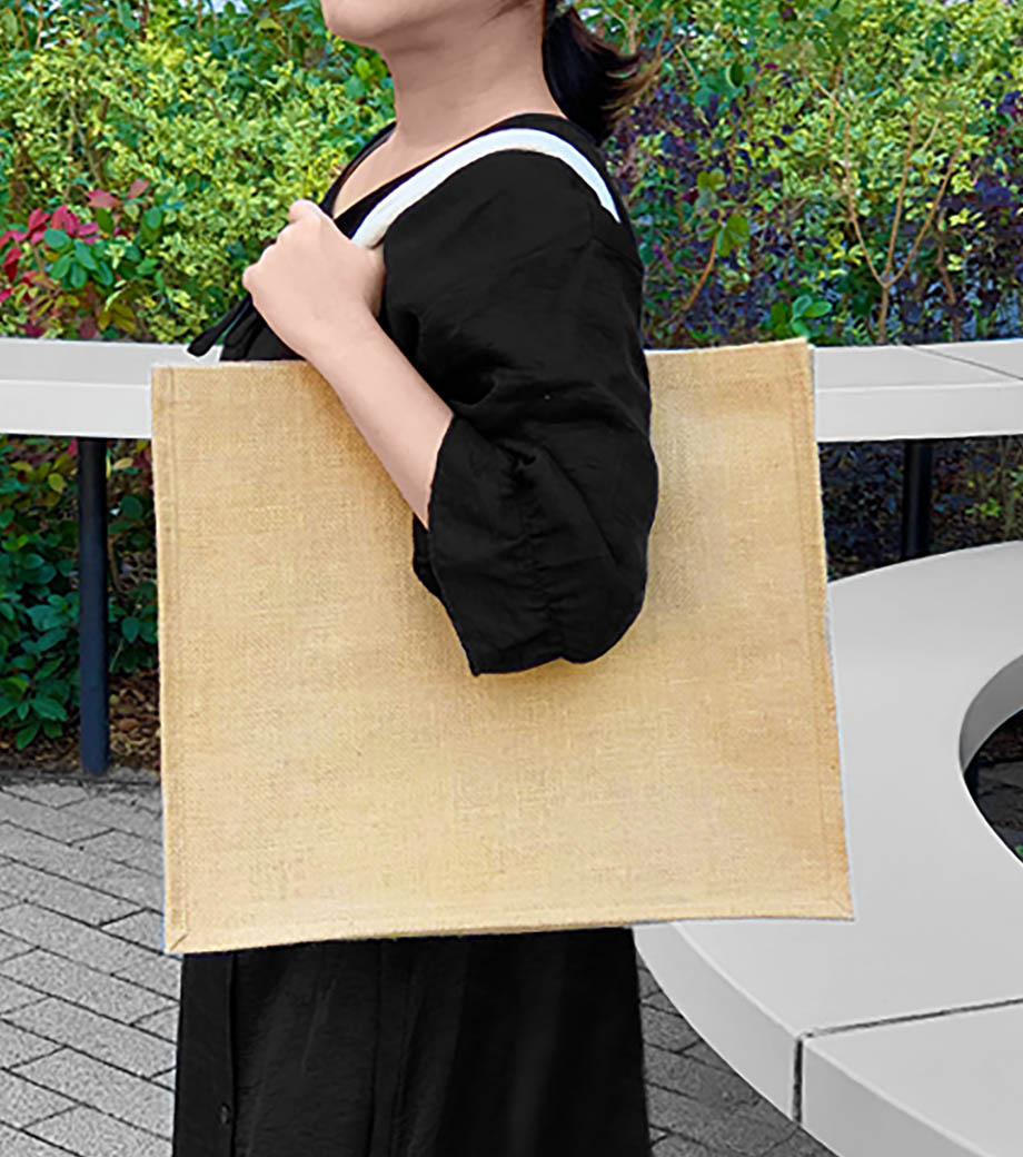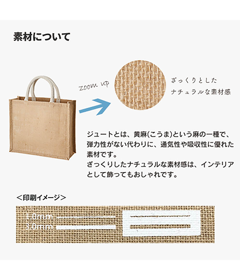 ジュートは、麻の一種の天然素材。通気性に優れ、伸びにくく、熱にも強い丈夫な繊維です。特別な記念日の限定ノベルティなど、オリジナルの名入れで個性的なバッグを作りませんか。