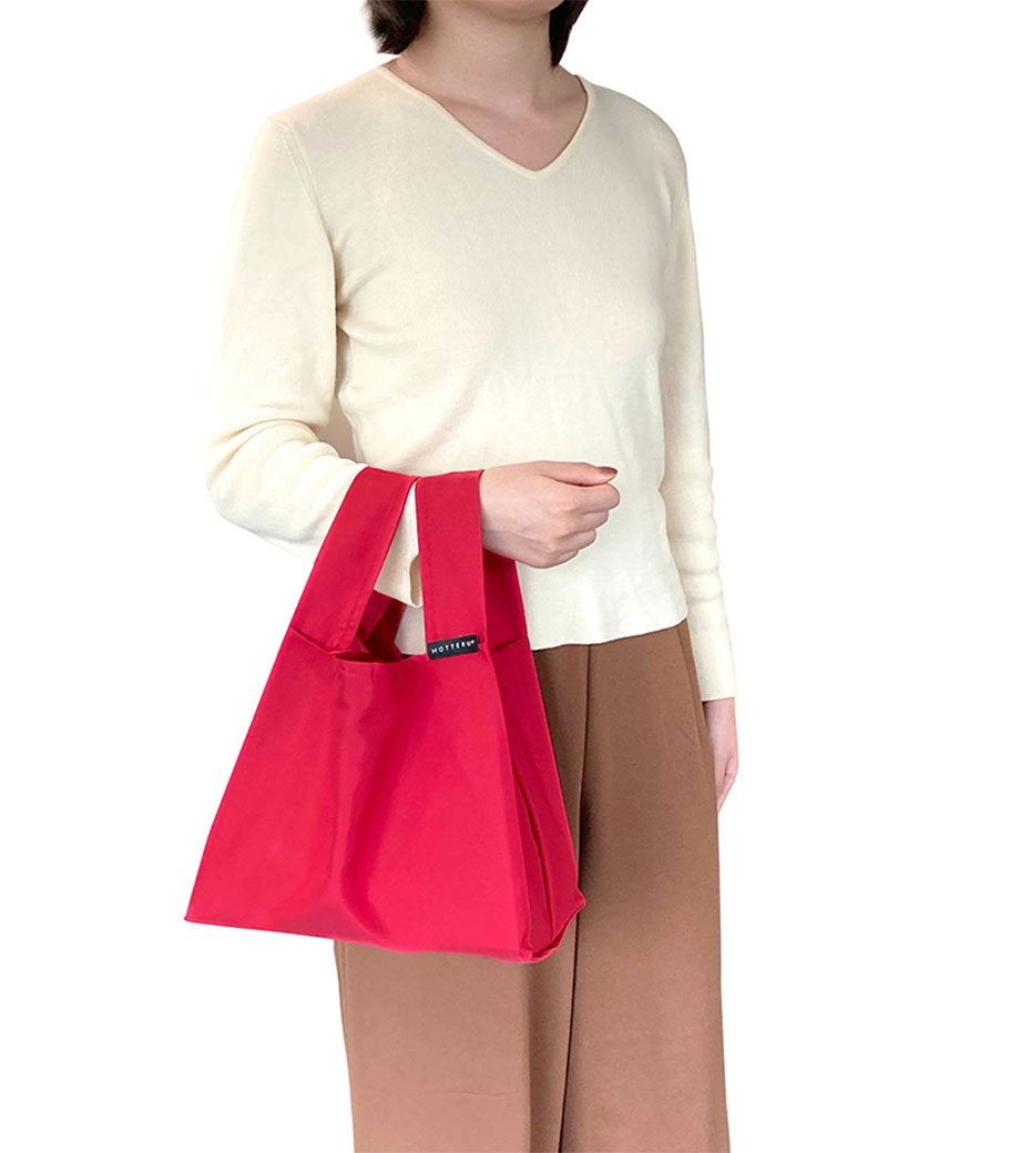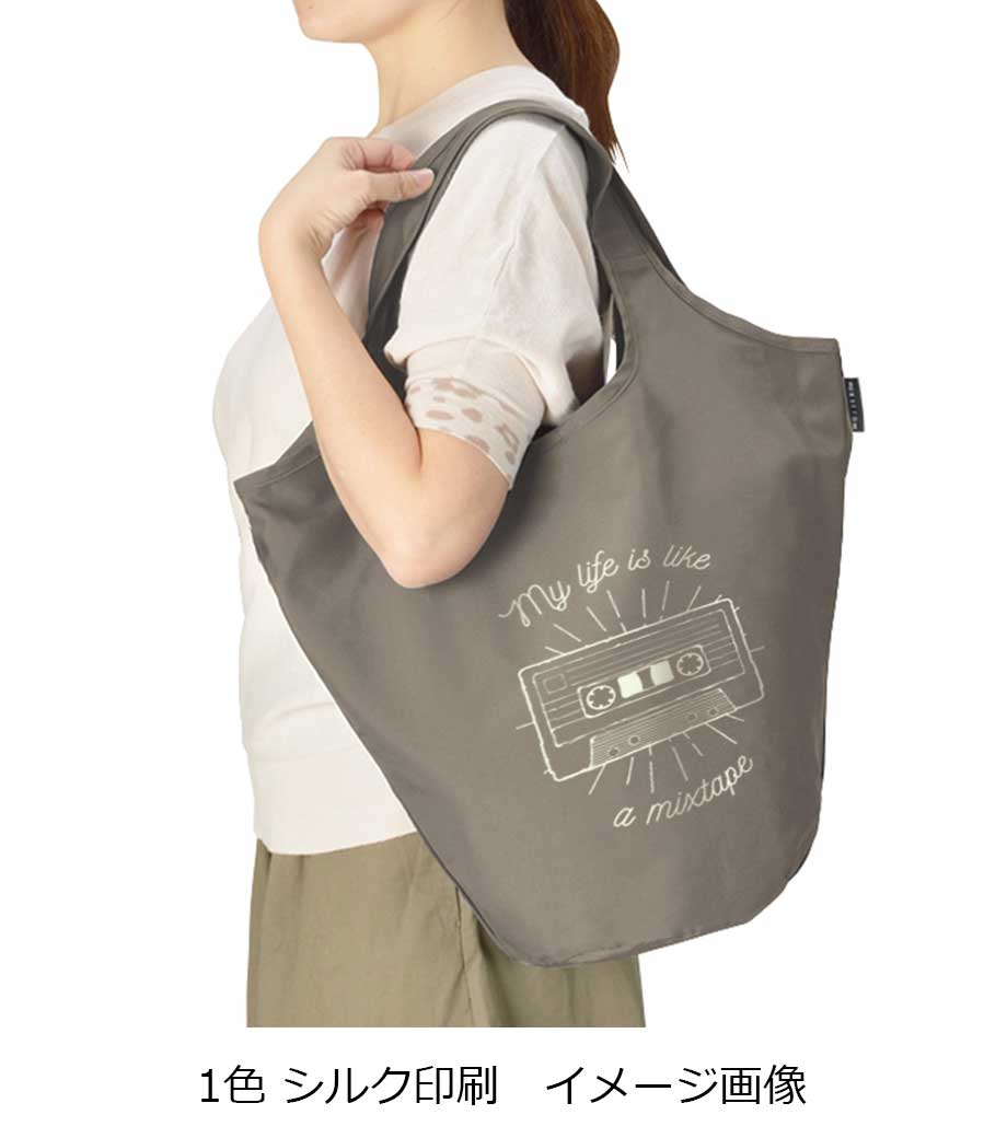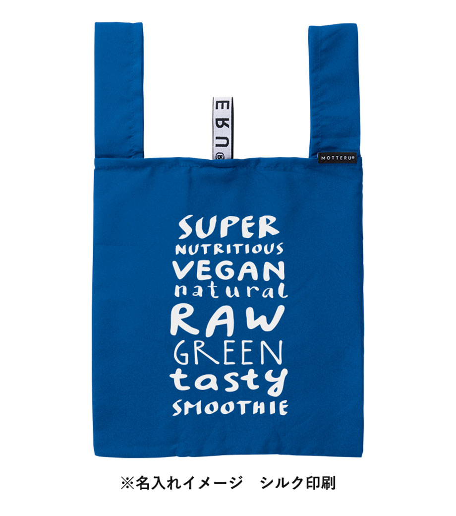 【MOTTERU】クルリト デイリーバッグ newカラーはオリジナル印刷ができるエコバッグ。しっとりとしたなめらかな触り心地で、シワが戻りやすくキレイなまま使えます。クルリとたためば手のひらサイズのコンパクトに。折り畳み用のゴムバンドは縫い付けられているので無くす心配がありません。レジ袋型でかさばる荷物もすっきり収納。一度使うと他のエコバッグに戻れませんよ!