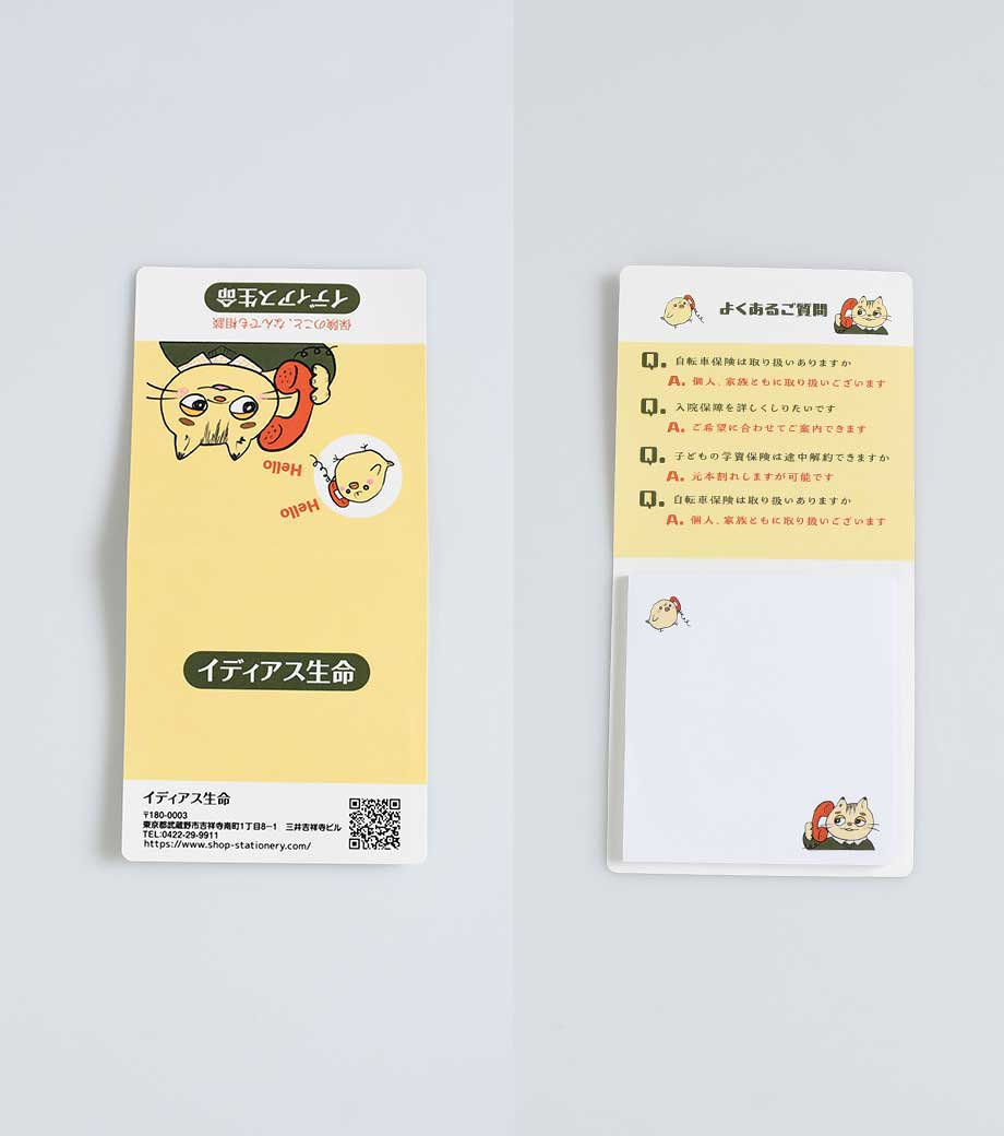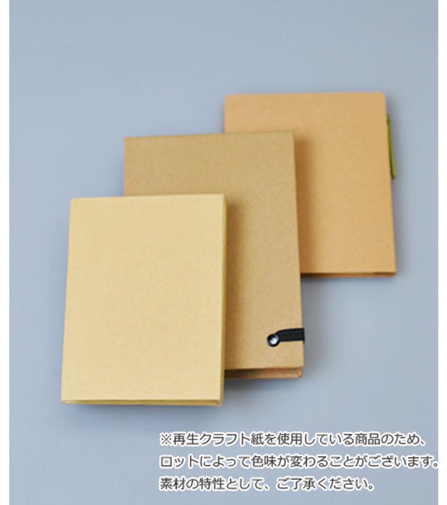 本体は再生クラフト紙で作ってあるので、環境に優しいエコアイテム。厚みもしっかりあるので、中の付箋が折れ曲がる心配もありません。名入れも大きく入れることが可能なので、エコライフ推進・ゴミ分別・環境保全などの各種エコイベントにオススメのノベルティです。