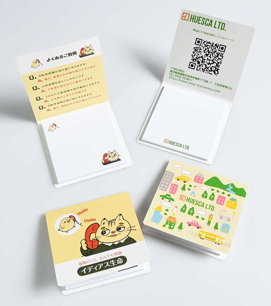 1色印刷・箔押し・フルカラー印刷で、お持ちのロゴ・文字・イラストを印刷いたします。学生から社会人、主婦の方まで、どなたにも喜ばれるお役立ちアイテム。適度な粘着力、書きやすい紙質・色とサイズで、スタッフからの支持も熱い大人気ふせんです。