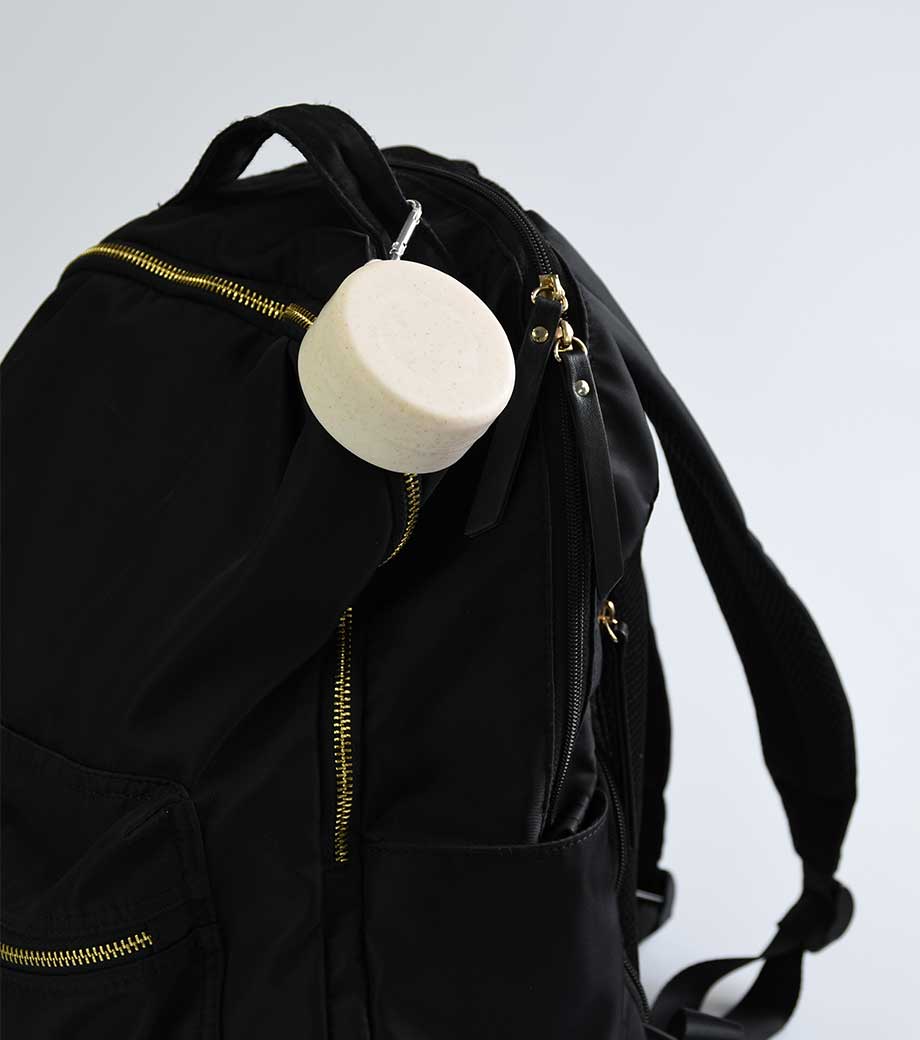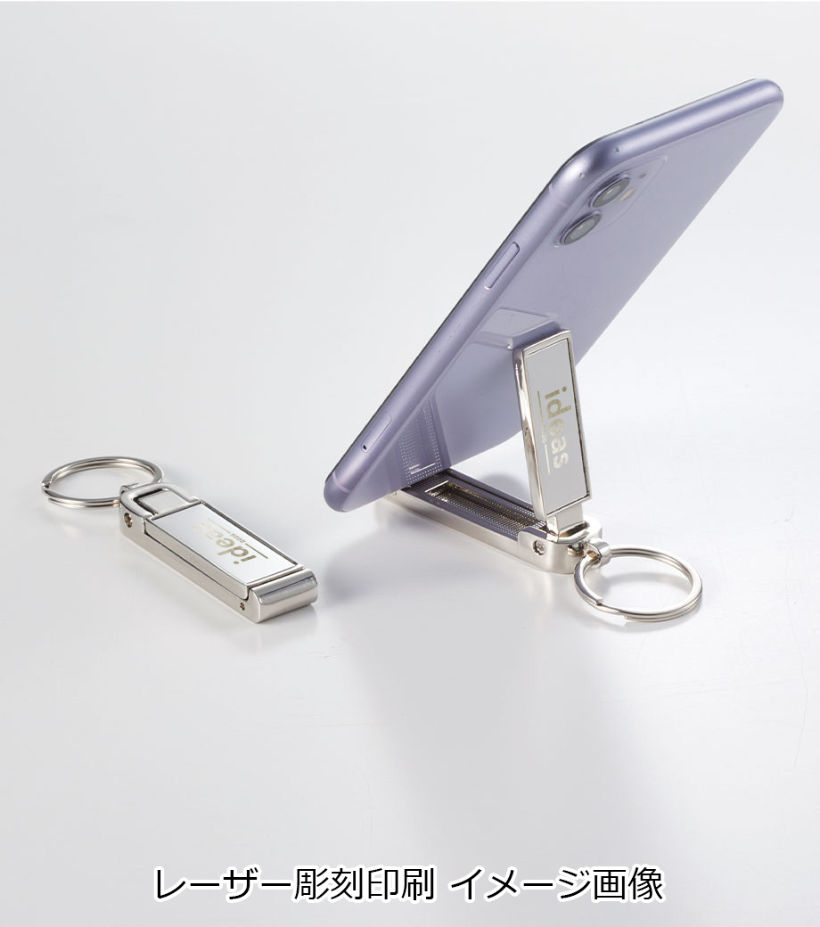 スマホスタンドにもなるバッグハンガーは、便利な2WAYキーホルダー。レストランやカフェで荷物の置き場に困った時、さっとテーブルに掛ければ即席の吊り下げフックに。床にバッグを置かなくてすむので衛生的。狭い店内でも快適です!