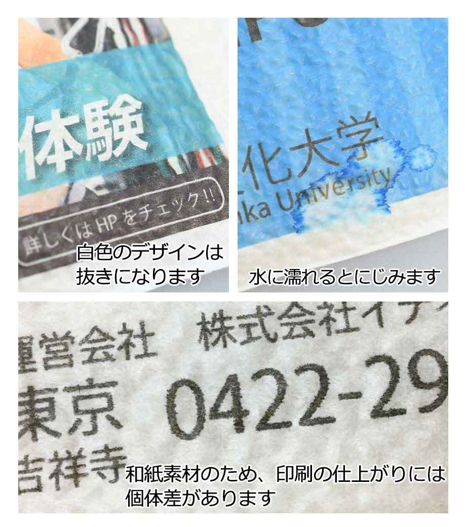 さらっとしたクラフト地にパッド印刷で名入れをして、展示会やセミナー、オープンキャンパスでのばら撒きに向いています。