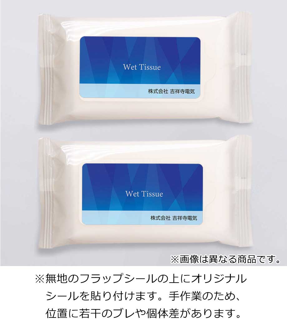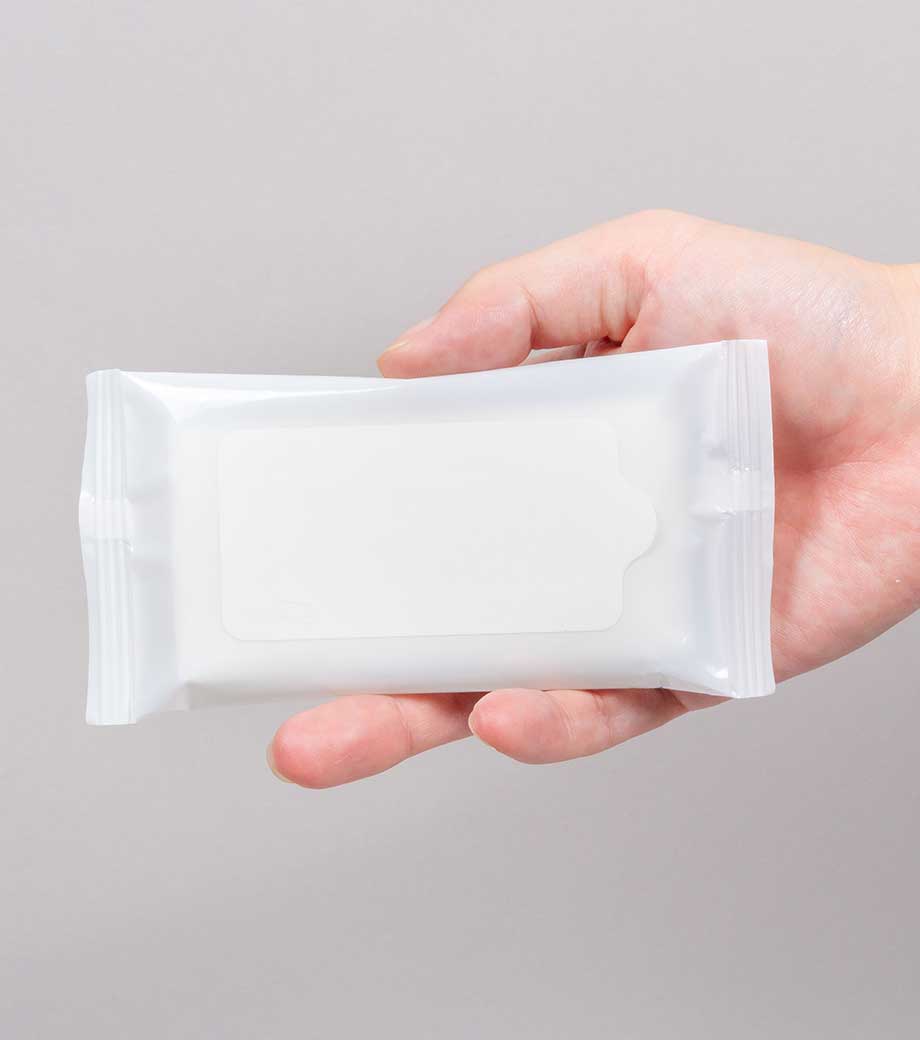 100個から作成可能な日本製のアルコール配合除菌ウェットティッシュです。内容量は10枚入りで、日常使いに便利なサイズ感。フラップ部分にオリジナルシールを貼り付けて名入れができ、フルカラー印刷で鮮やかなデザインを再現可能です。手軽に配れる実用的な販促品として、PR効果が期待できます。イベントやキャンペーンのノベルティとして大活躍なアイテムです。