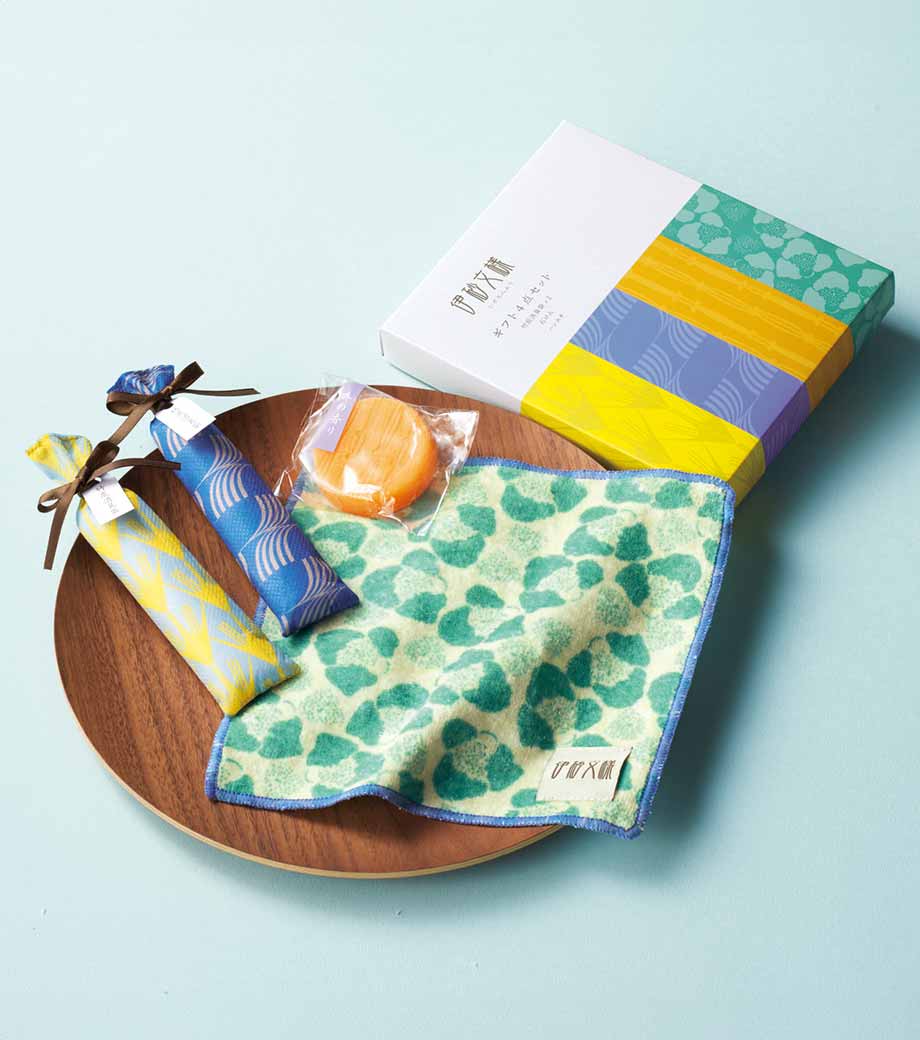 ノベルティや粗品で渡しやすい、竹炭消臭袋×2・爽やかな森の香りの固形石鹸・綿100%ハンカチタオルの4点セット。コンパクトなサイズの化粧箱は、伊砂文様のおしゃれなデザインです。サロンの入会特典や金融関係の契約記念品などに喜ばれます。