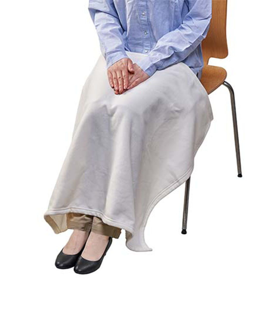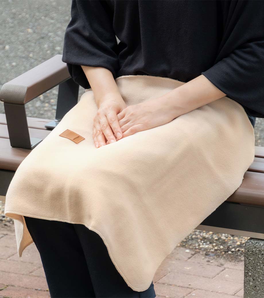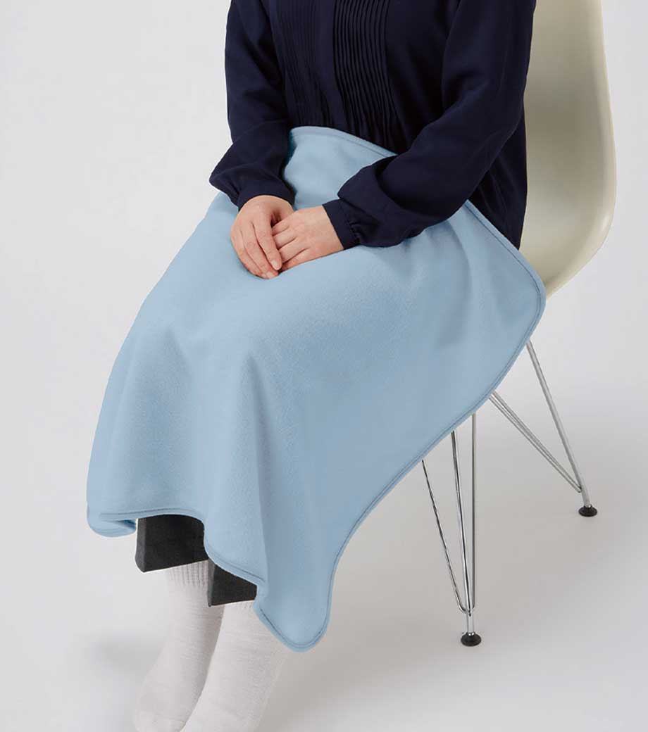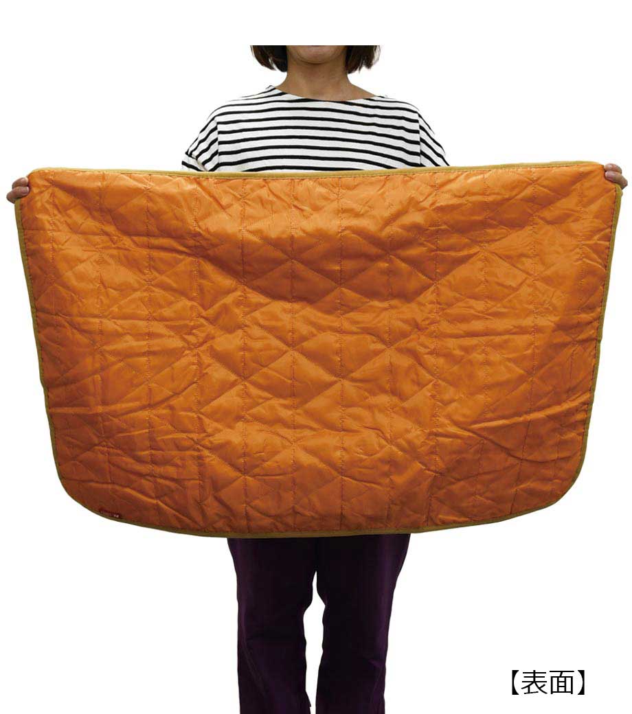 縦にすると、お腹から足元まですっぽり覆えるサイズです。お家でのリラックスタイムやオフィスでのデスクワーク、屋外でのアウトドアシーンなど、冬場の寒さ対策に一枚あると便利です。