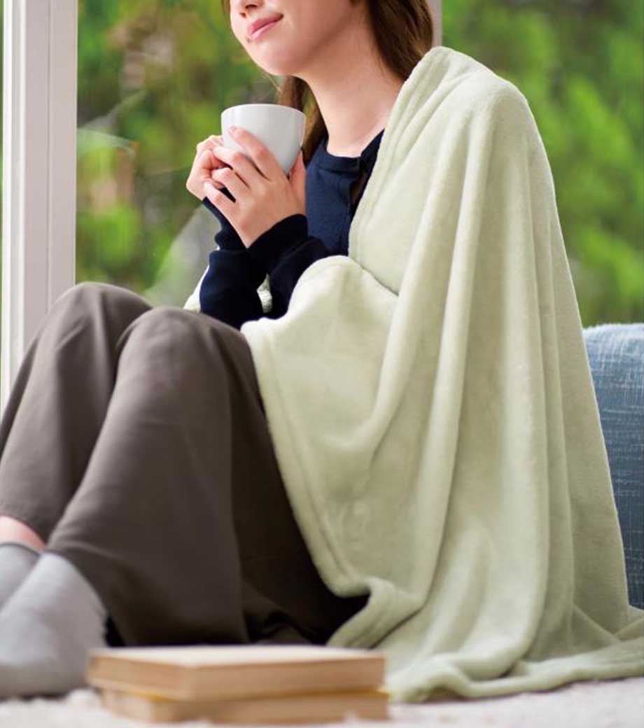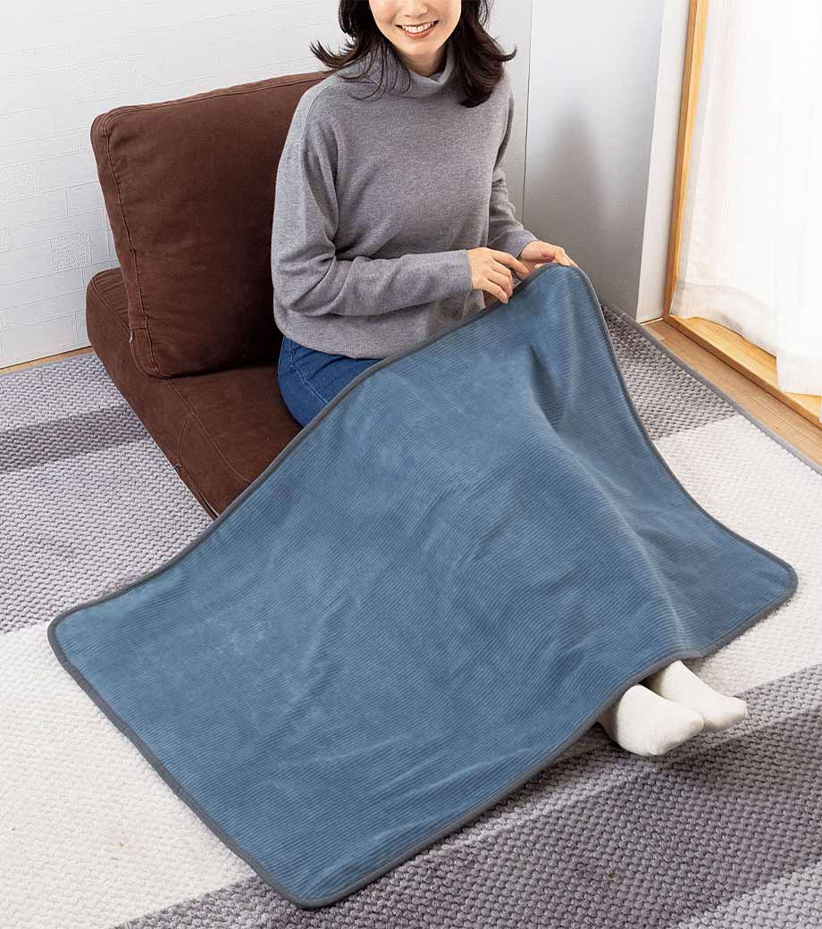 ソフトタッチブランケット(S)は触り心地の良いひざ掛けサイズのブランケット。縦向きにすると、お腹からひざ下まで暖められるコンパクトなサイズです。