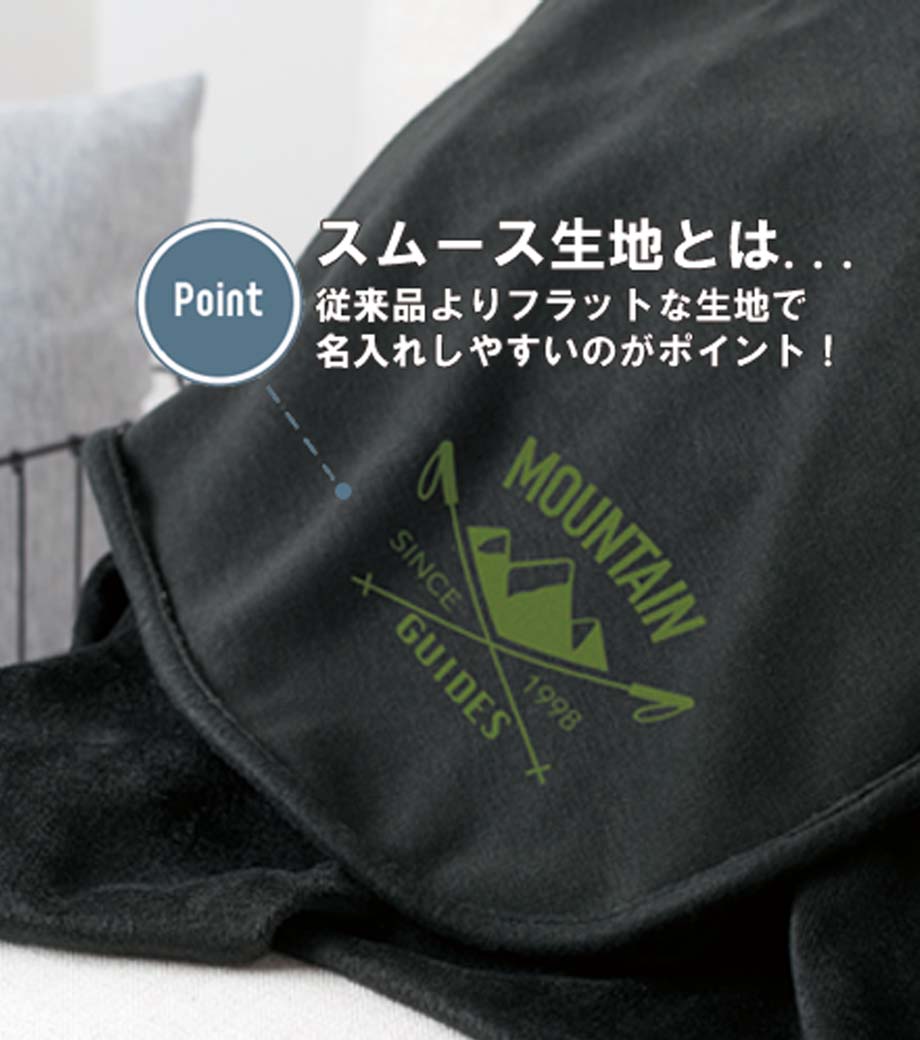 厚手スムースフリースレギュラーブランケットは、表面はスウェットのようななめらかなスムース生地で、体に当たる裏面は暖かいファーのダブルフェイス生地になっています。