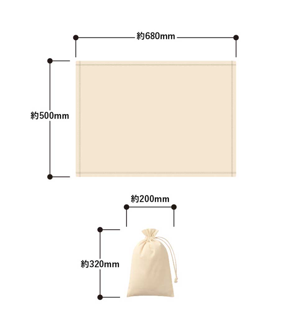 ブランケットか巾着に1色で印刷できます。オリジナルの名入れをしてSDGsの取り組みをアピールしてはいかがでしょうか。エコ関連のイベントやキャンペーンノベルティにオススメです。