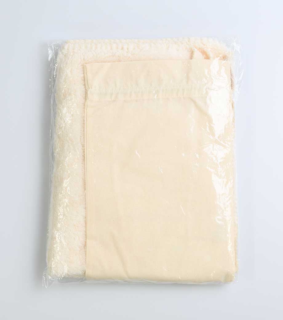 ボアフリースブランケット(巾着付)は名入れ印刷がしやすい巾着に入ったブランケット。ボアと起毛のダブルフェイス生地でふんわりやわらか。価格以上にゴージャスなのです。巾着の最大印刷範囲はW160×H220mmと広め。ロゴ印刷が映えるから、リラクゼーションショップや女性向けのサロン、カーショップの販促品としてプレゼント・ノベルティなどに人気があります。印刷は30個から可能です。