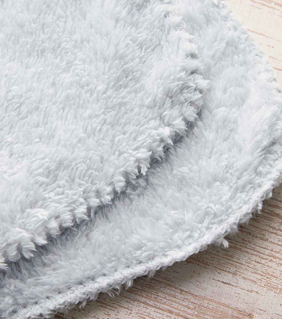 スムースフリースブランケット(バッグ付き)は、表がスムース生地と裏がファーのダブルフェイスブランケット。足元全体を包み込むサイズ感で、肩掛けとしてもご使用いただけます。