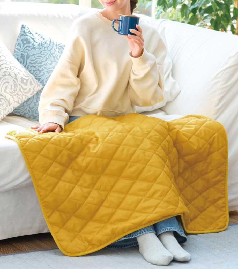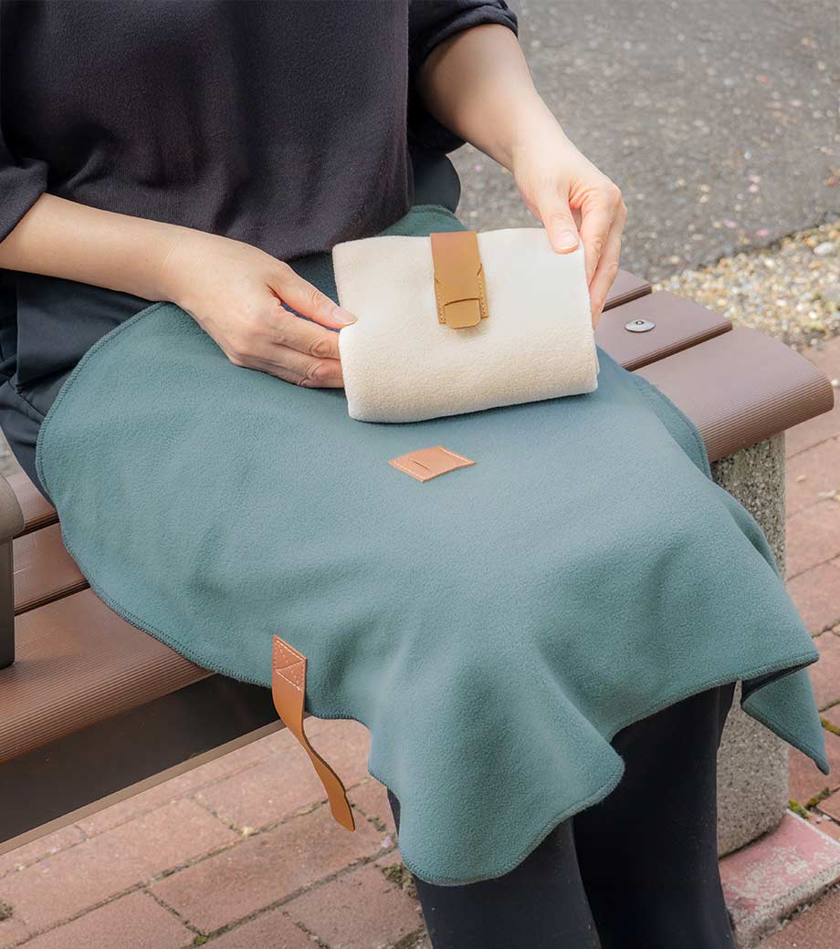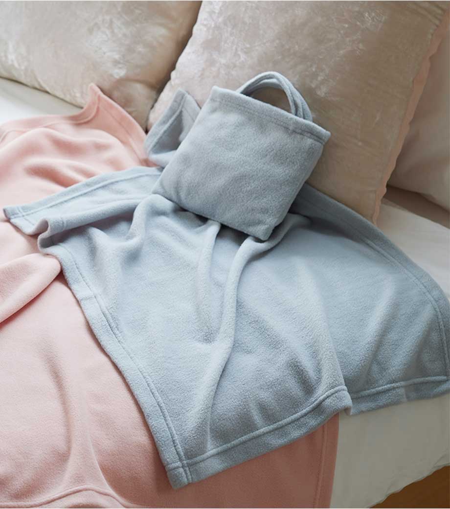 温め効果抜群で、家やオフィスに、どこにでも持ち歩きたくなるブランケットです。巾着に入れれば、仮眠にぴったりなミニ枕にもなります。
