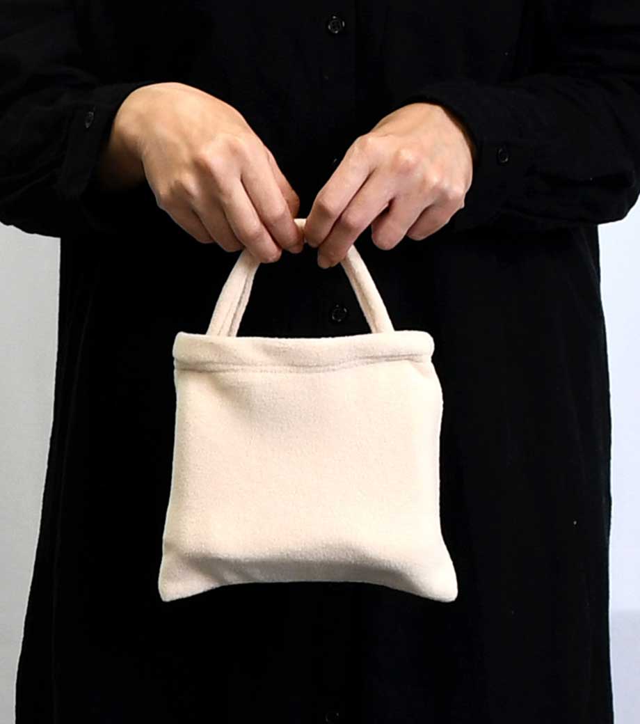 表面のスムース生地は名入れが綺麗に入り販促効果もバッチリ。裏面のファーは光沢感があり、なめらかな手触りで上品な印象です。