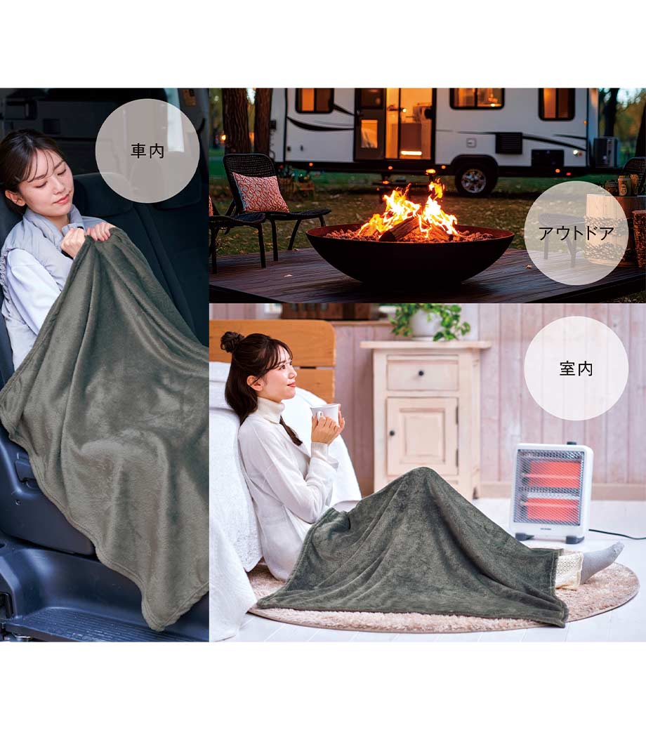 お家やオフィスでの寒さ対策に気軽に使える一枚です。冬の寒い時期はもちろん、冷えの気になる映画館や屋外のカフェなどさまざまなシーンで活躍します。とても軽いのでスポーツ観戦やアウトドアなど外への持ち歩きにも◎。