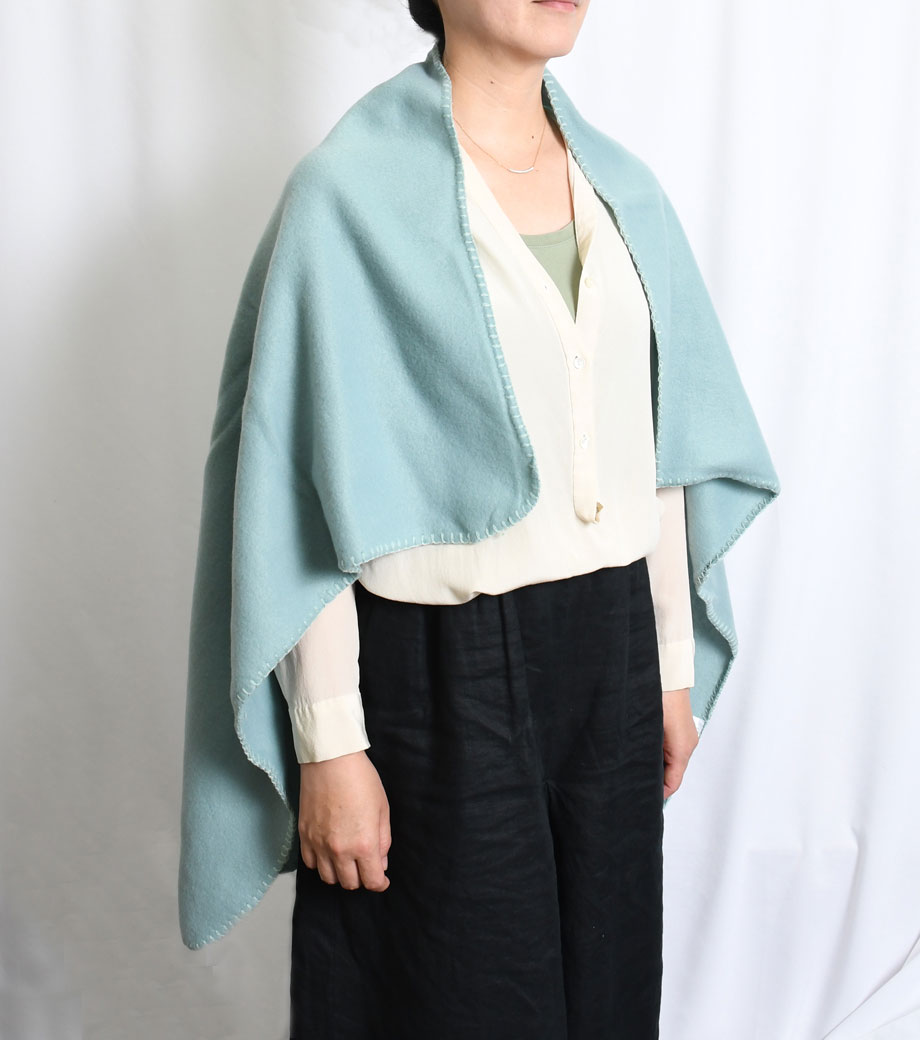 縦向きにすると、お腹から足元まですっぽり覆える大きさでひざに掛けたり、肩に掛けたりマルチに使えるサイズです。