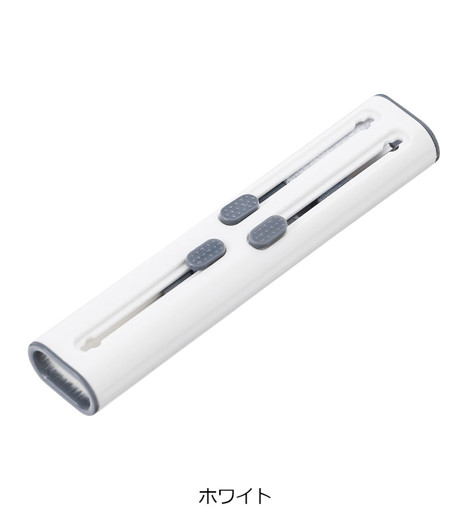 スマホや電子機器のお掃除に便利!? ➀ほこりやゴミを絡めとるスポンジ②メッシュ部分や角にたまった汚れがとれる金属スティック③細かい汚れを掻き出す高密度ミニブラシ④キーボードのすき間を掃除できるクリーニングブラシの4つの機能がコンパクトに一体化。デスクやカバンに1つあれば役立つこと間違いなしです。