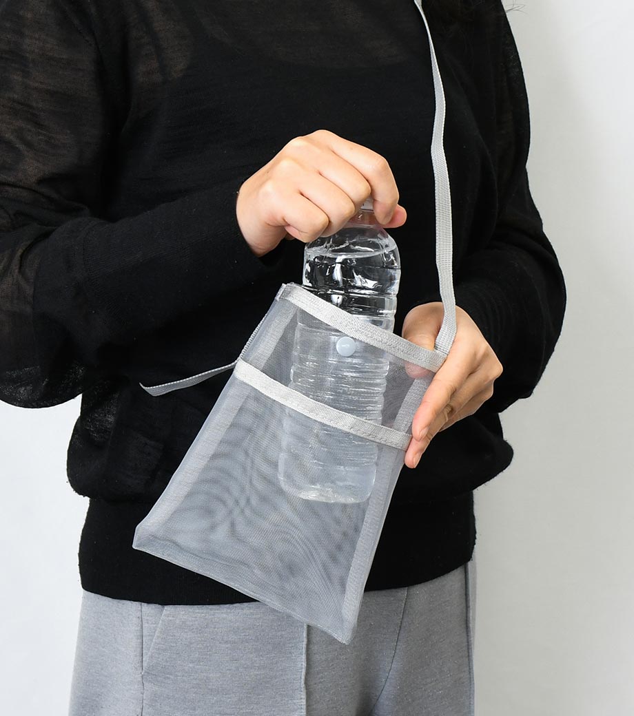 かさばらない薄さと軽さが魅力のメッシュ生地サコッシュ。スタイリッシュな印象で、どんなコーデにもマッチします。スマホや小物を収納できるフロントポケット付きで、ちょっとしたお出かけや散歩にぴったり。ペットボトルホルダーとしても使えます。日常使いからアウトドアまで幅広くお使いいただけるので、もらった方に喜ばれる実用性の高いアイテムです。