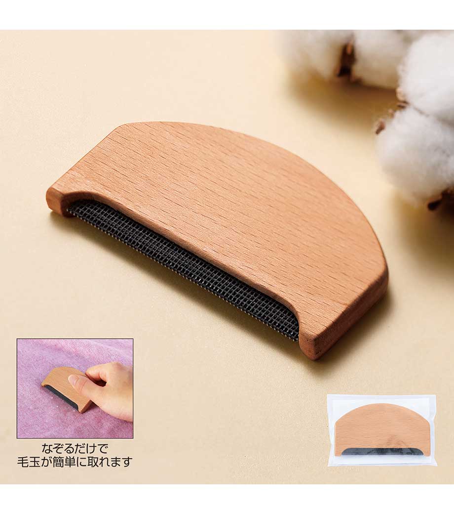 耐久性に優れたブナ材を使用した毛玉クリーナー。化粧ポーチにもいれておきやすいコンパクトなサイズが特徴です。電池は不要。お気に入りのセーターや毛布、車のシートなどにできた毛玉を気づいた時にサッととることができます。