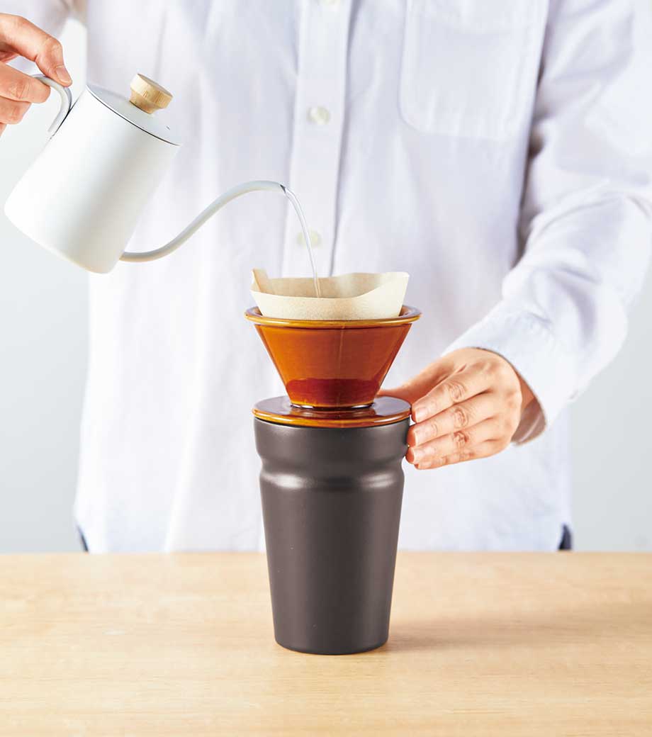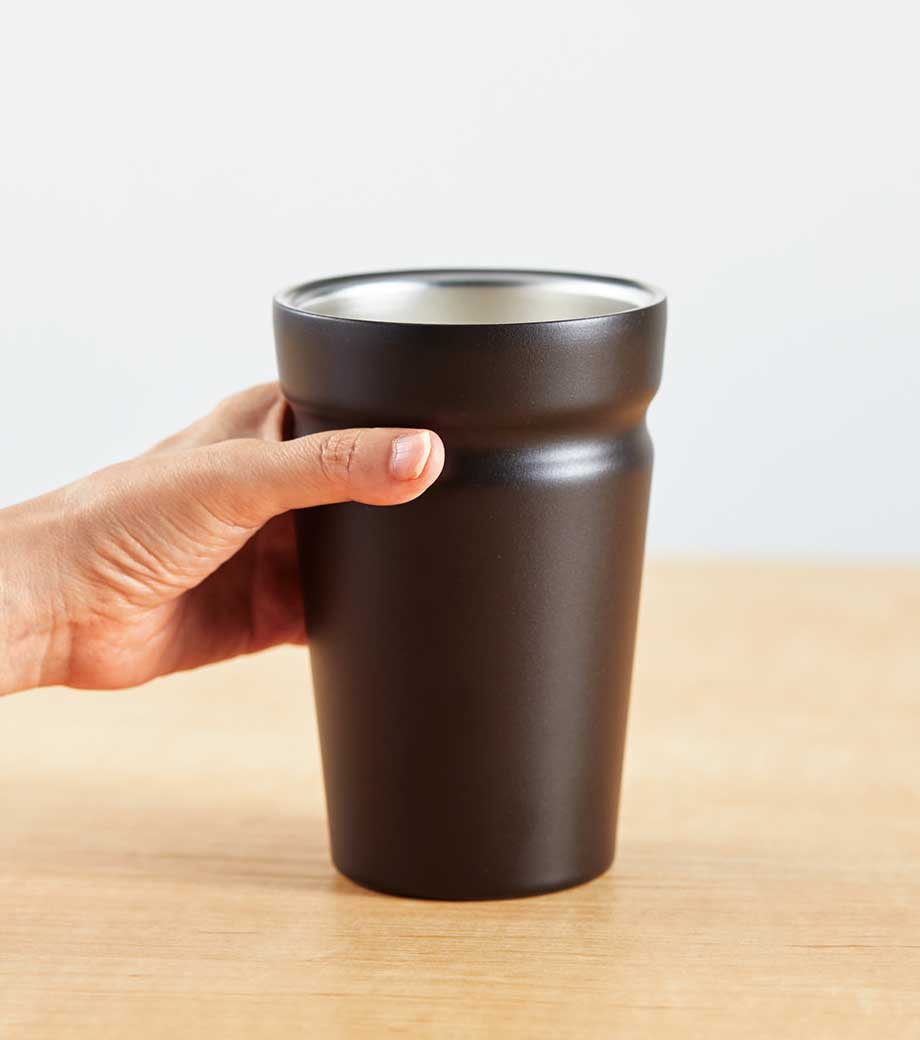 表面がパウダーコーティングしてある真空二重構造のボトル。滑りにくく濡れた手でもしっかり持つことができて保冷温もバッチリです。持ち歩きにもちょうどいい容量約350mlです。氷止め兼パッキンは簡単に取り外せてお手入れも楽チン!ハンドルは折りたためて、携帯にも便利。デザイン性と機能性を併せ持つ人気商品です。