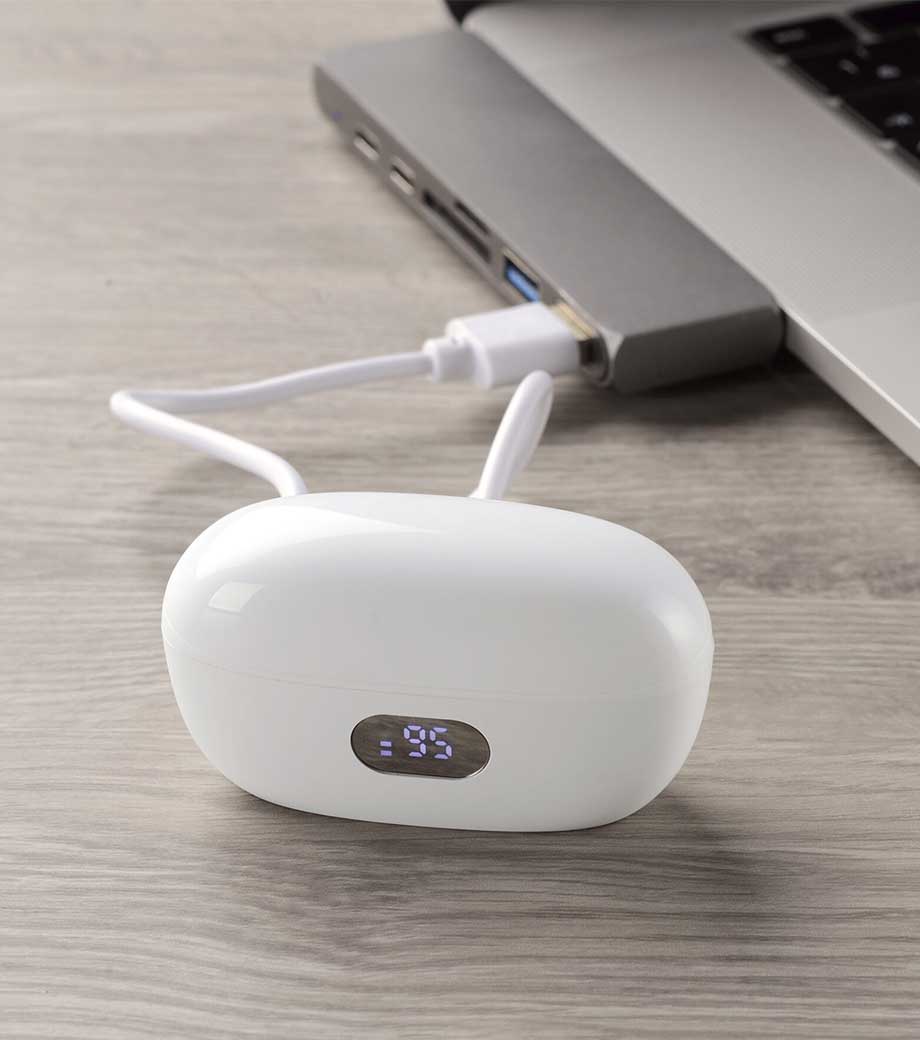 ケースの天面に1色でロゴを印刷し、オリジナルのイヤホンを作れます。購入特典や特別な記念品にぴったりのアイテムです。