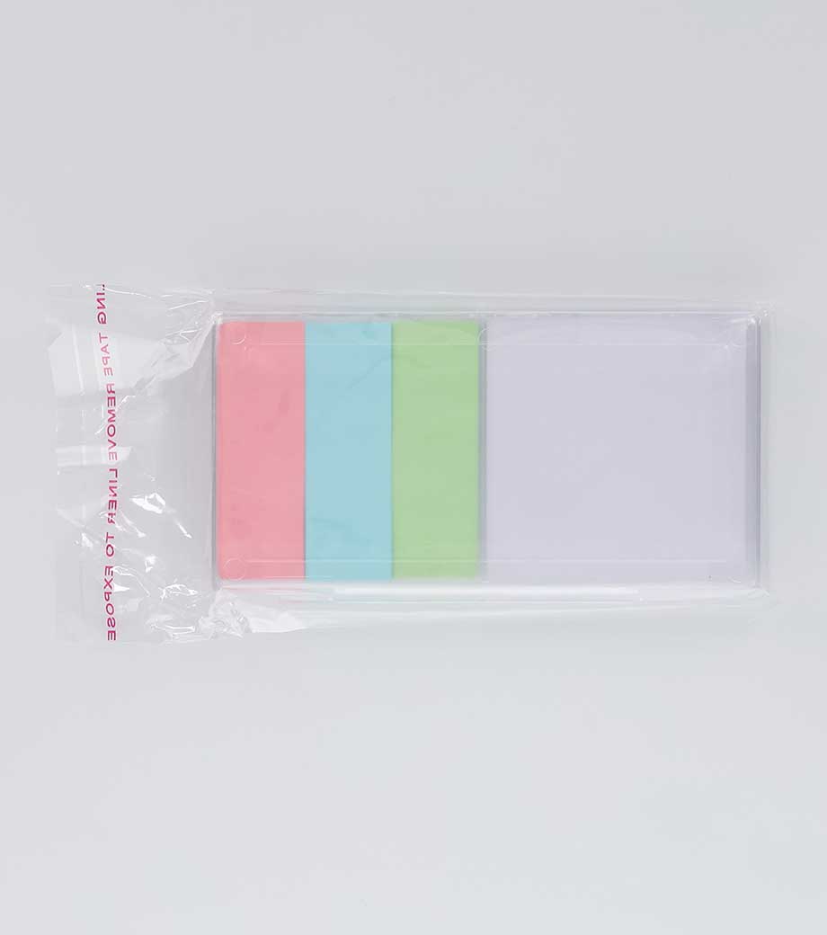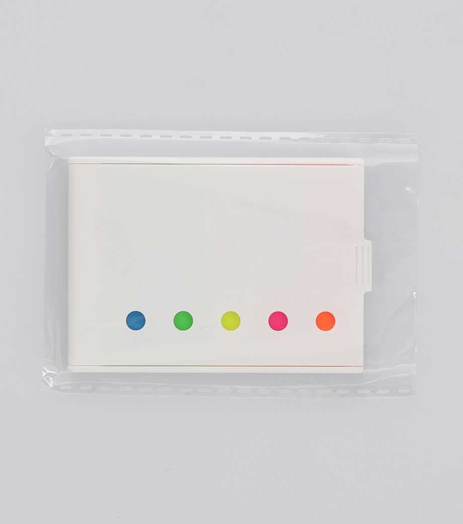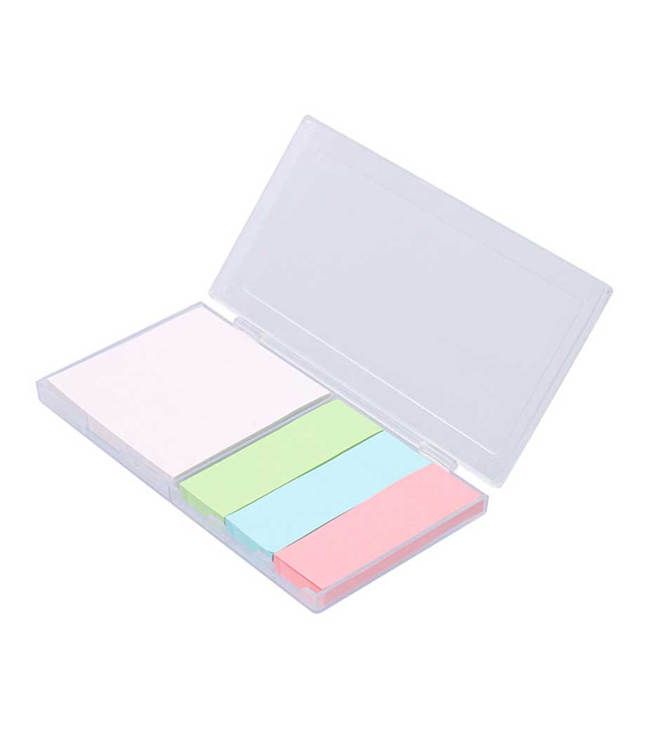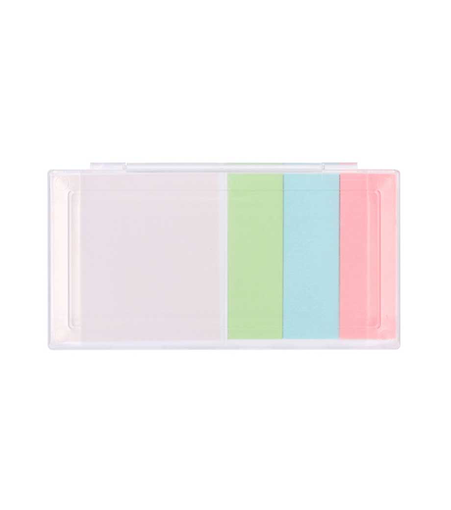 思いついたアイデアをすぐにメモできるケース入ふせんセット。4種類のふせんがケースに収まっており、持ち運びにも便利。鞄の中でかさばらず、ふせんがバラつく心配もありません。透明ケースで中身が見えるから、デスク上で必要なふせんをサッと取り出せます。