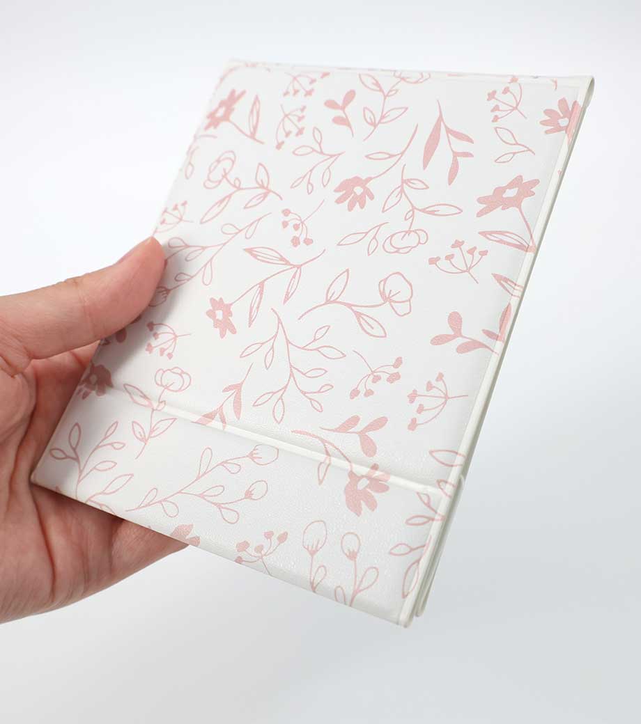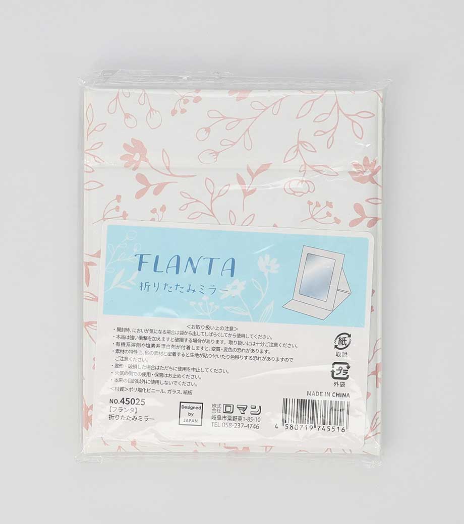 おしゃれなボタニカル柄が目を引く折りたたみミラーです。シンプルな色使いでインテリアに馴染みやすく、おうちでのメイクや身だしなみチェックにぴったり。折りたたむとフラットになるので、旅行にも持っていきやすいです。使わないときはすっきり収納できます。