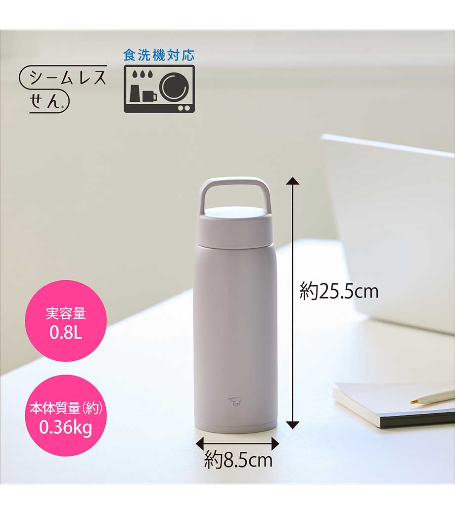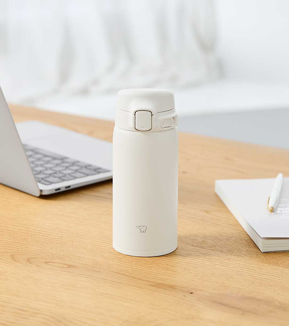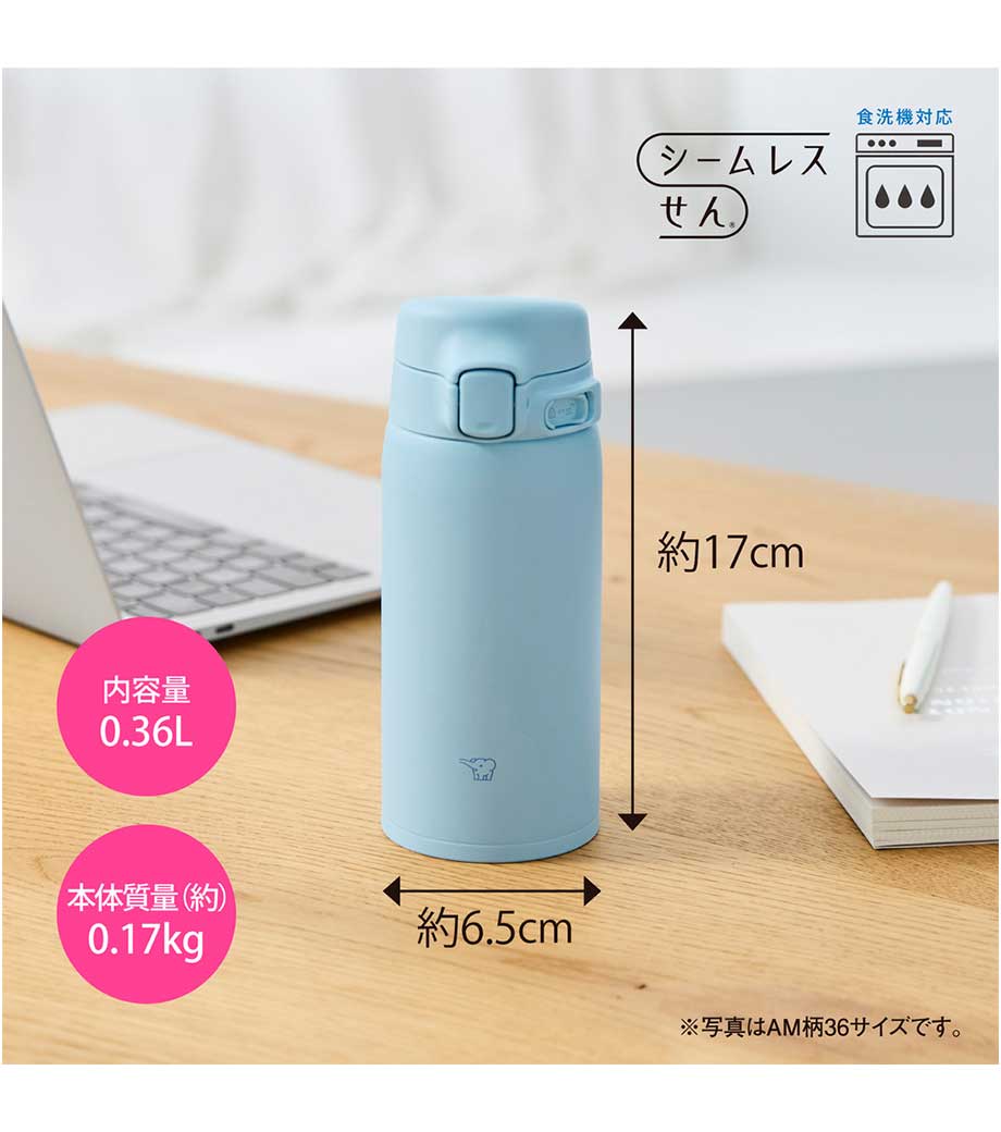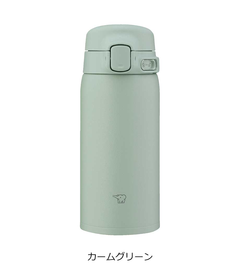 象印独自の「サーモリング構造」で高い保温・保冷力を誇る真空ステンレスボトルです。ワンタッチで開閉できるキャップは、栓とパッキンが一体化したシームレスせん。パーツが少なく食洗機対応なので、とにかくお手入れが簡単です。ボトル内面は耐食性が高くサビに強い加工がされています。開閉ロック付きでキャップがしっかり閉まるのも嬉しいポイント。容量約360mlで、ランチバッグにもすっぽり収まるサイズ感です。
