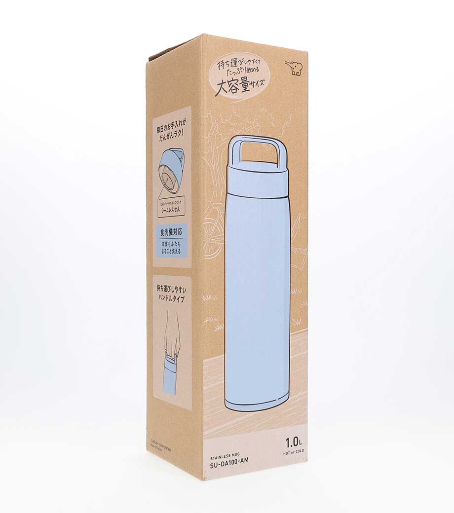 サッと手に取れる持ち運びやすいハンドル付きのマグボトル。氷が入れやすい広めの口径で、大容量の約1000mlサイズです。保冷温効果抜群の真空二重構造。せんとパッキンをひとつにした「シームレスせん」採用でお手入れしやすく、内側はニオイや汚れが付きにくい特殊なコーティングがされています。スポーツドリンクも入れられるので、運動中の水分補給に最適です!