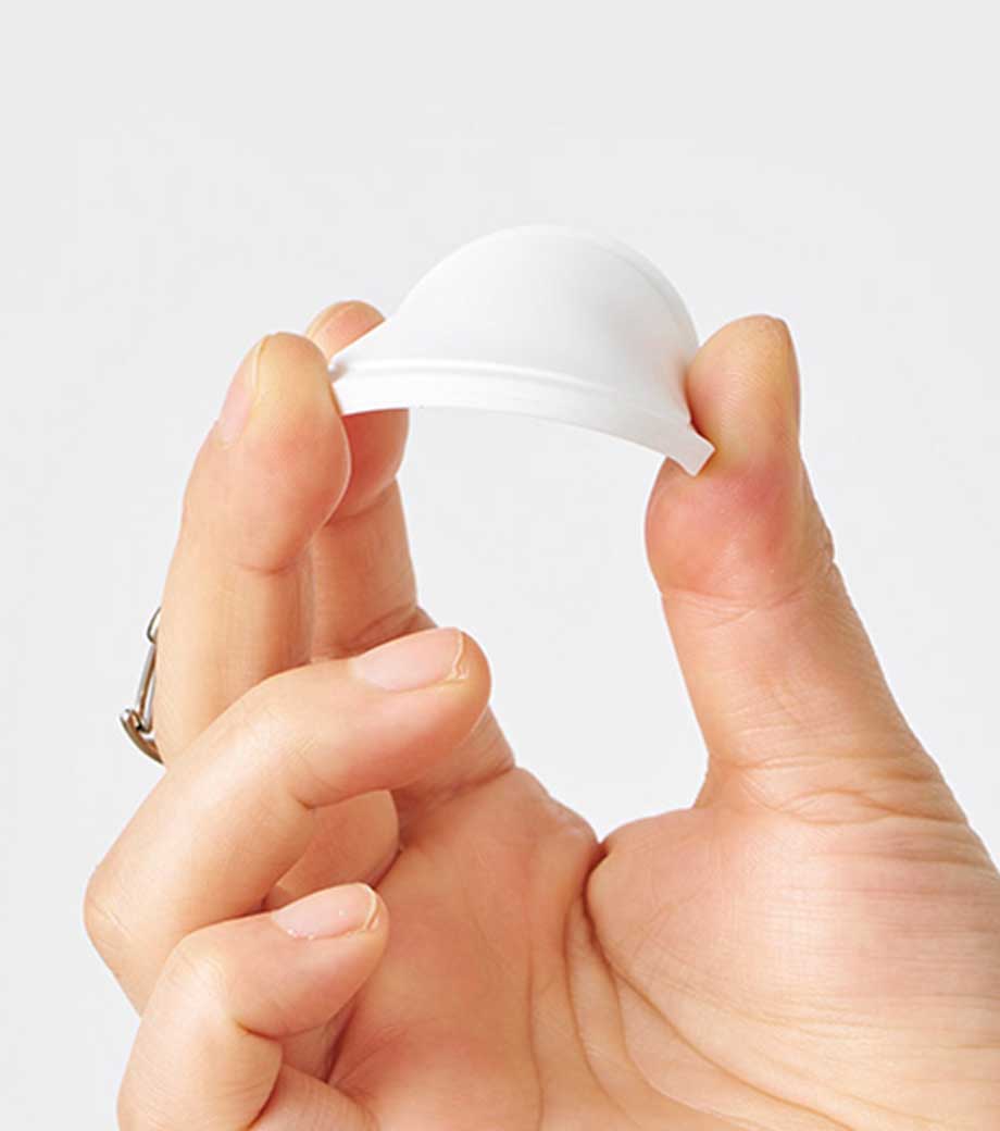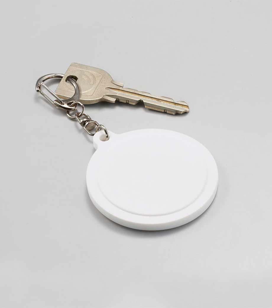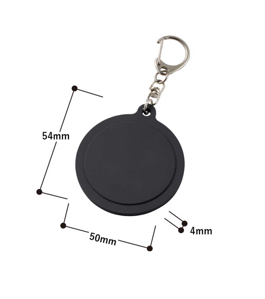 ラバー素材でやわらかく、傷がつきにくいラウンド型のキーホルダーです。