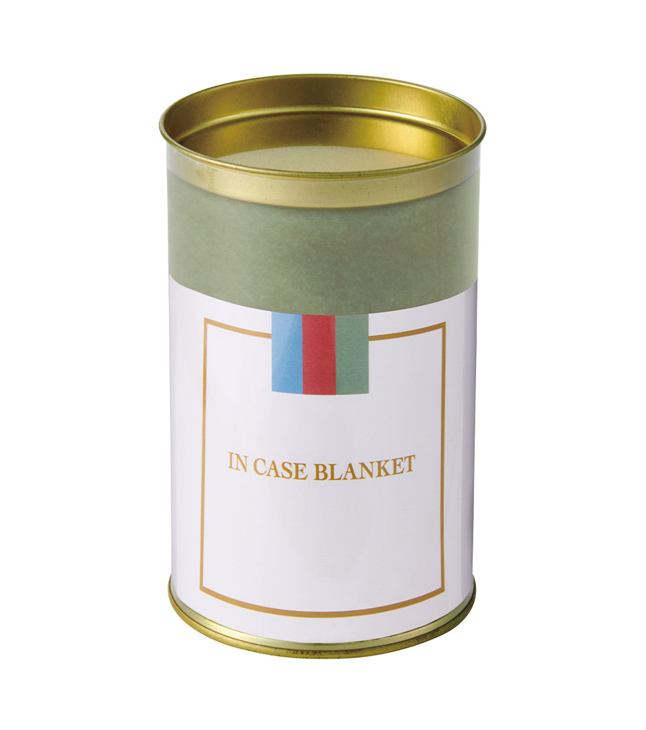 スタイリッシュなゴールドの蓋が印象的な円筒形のクリアケースに、ニュアンスカラーのグリーン・ブルー・レッドのブランケットを入れました。ひざ掛けにちょうどいいサイズ感。オフィスや車内での寒さ対策に役立ちます。カーショップの来場者プレゼントやキャンペーンのノベルティにおすすめ!1色印刷でオリジナルブランケットも作れます。