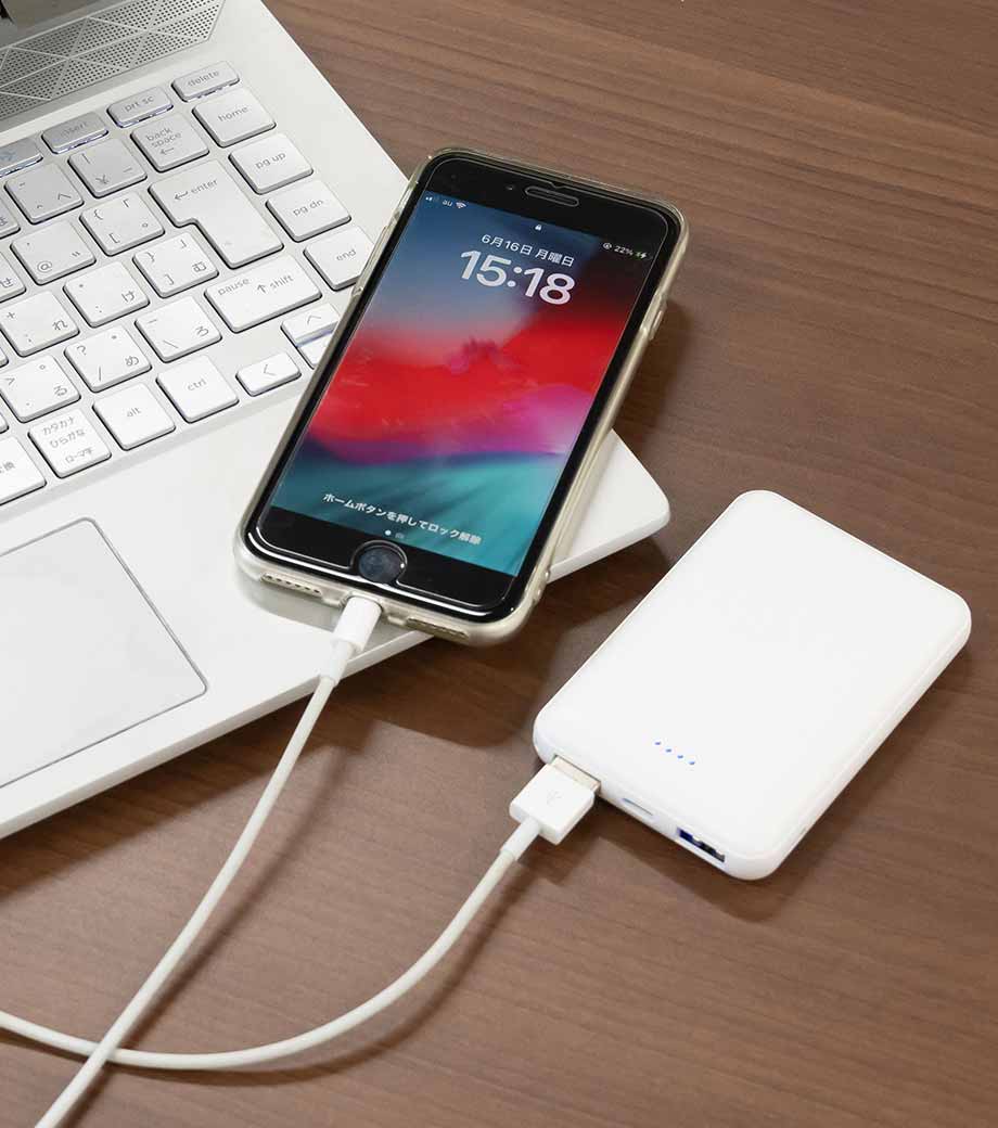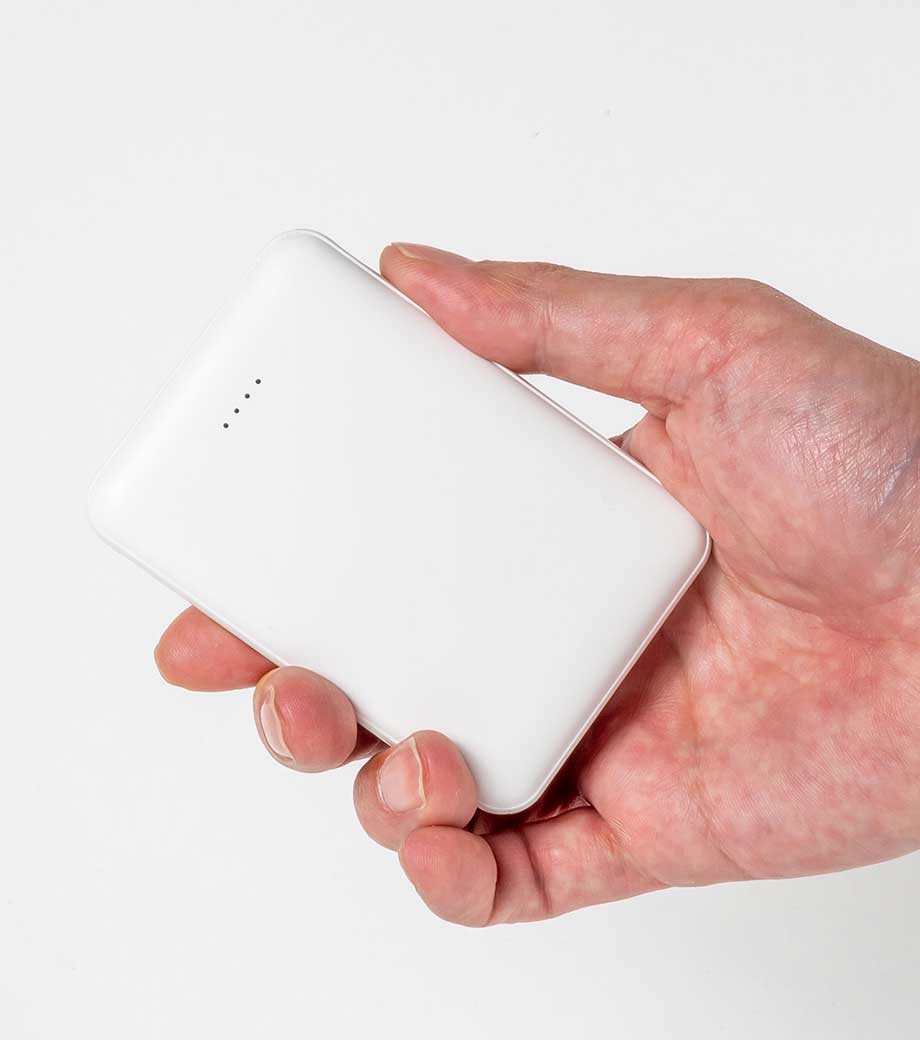いまや旅行や防災目的だけでなく、日常のお出かけでも必需品のポケットバッテリー。手のひらサイズのコンパクトボディで手軽にカバンに入れておけます。容量は安心の5000mAh。信頼のPSE検査合格品です。