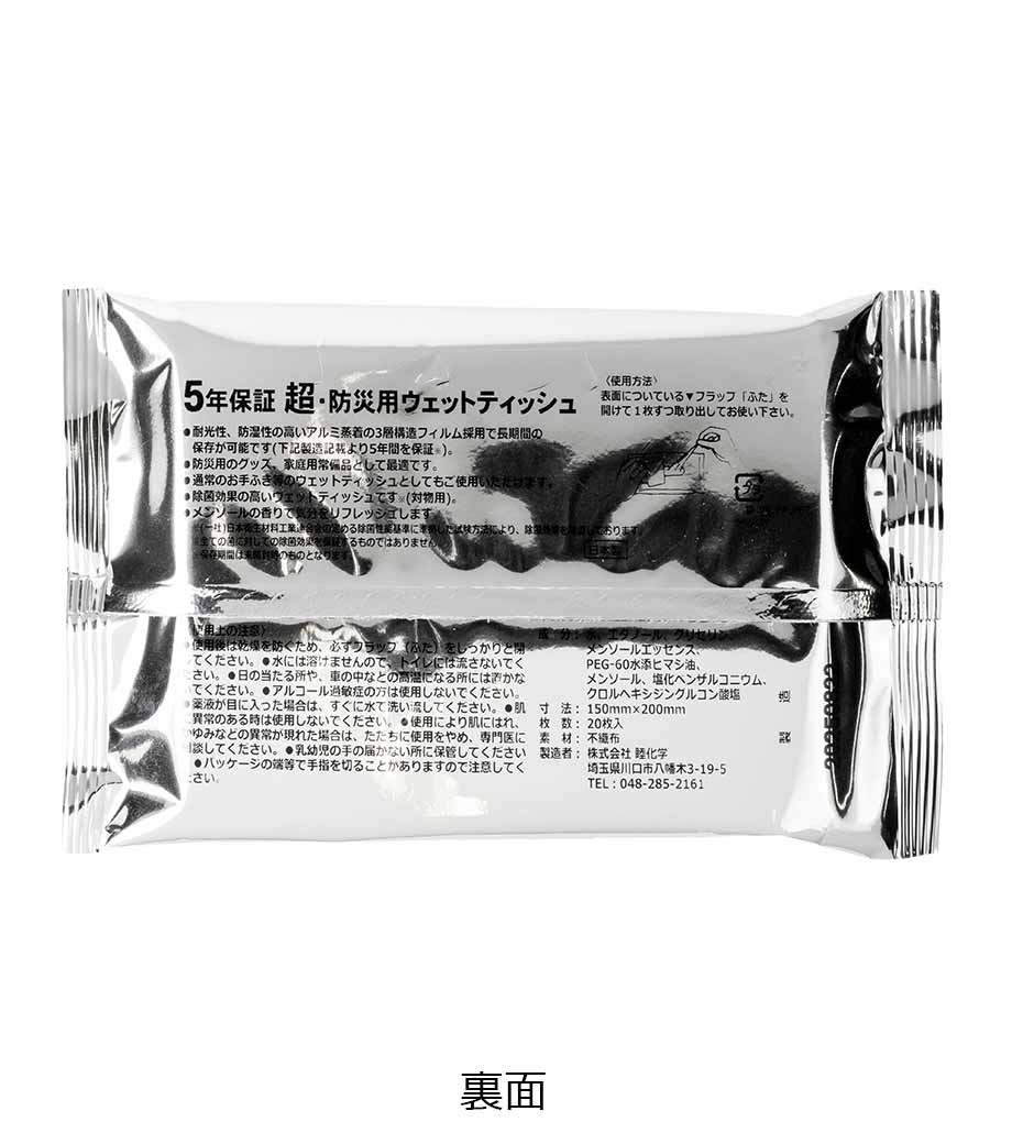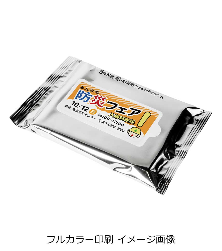 100個からつくれる!5年保証防災用ウェットティッシュ 20枚【フルカラー印刷】