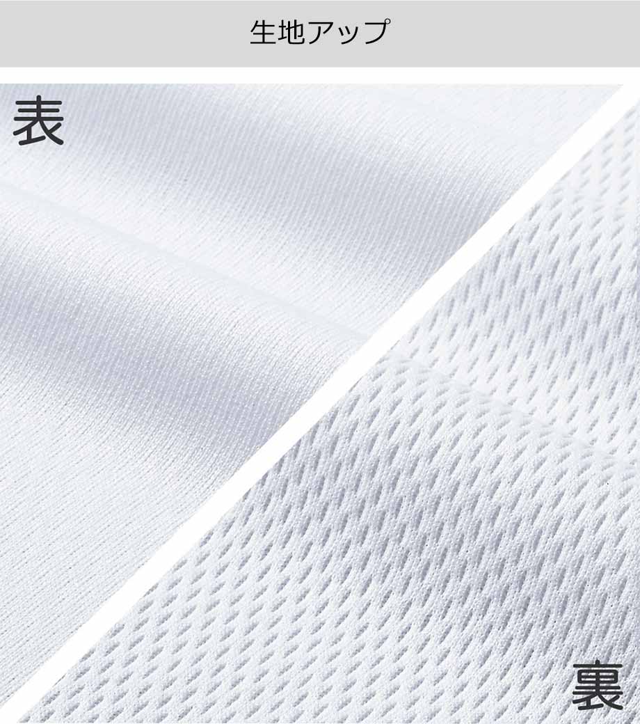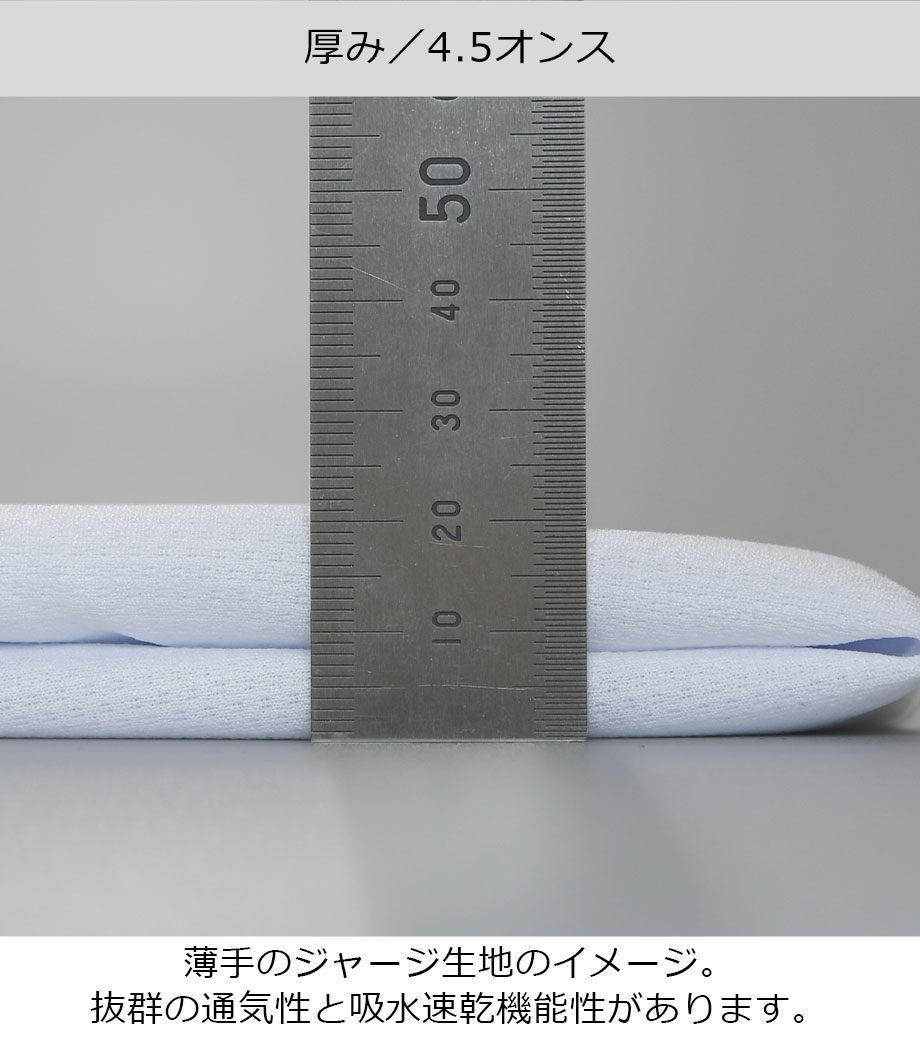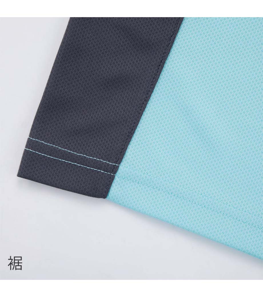 丈夫で適度な厚みとハリのあるメッシュ生地のTシャツです。吸汗速乾性があるため快適な着心地をキープ。フライス編みの襟とカバーステッチの裾で、伸縮性があり着脱しやすいです。袖口はカン止めされているのでほつれにくくなっています。