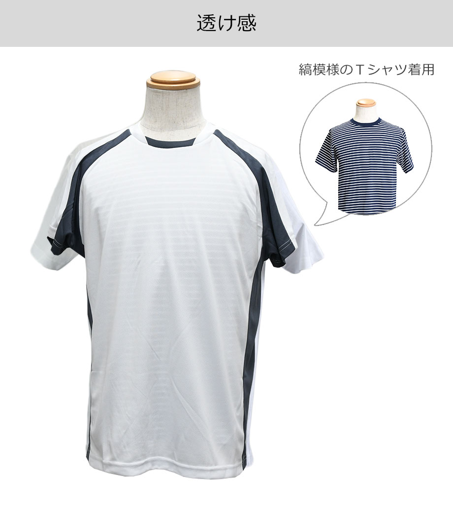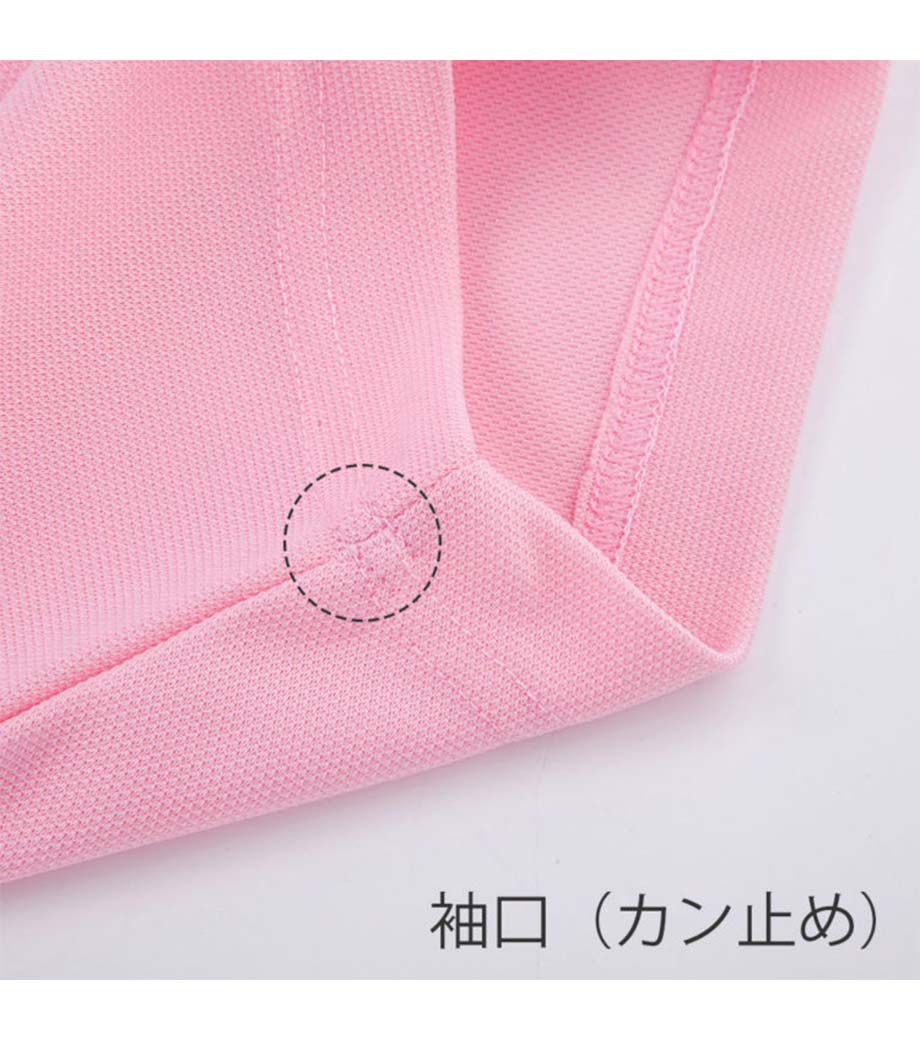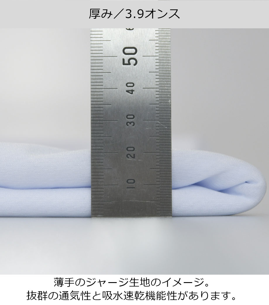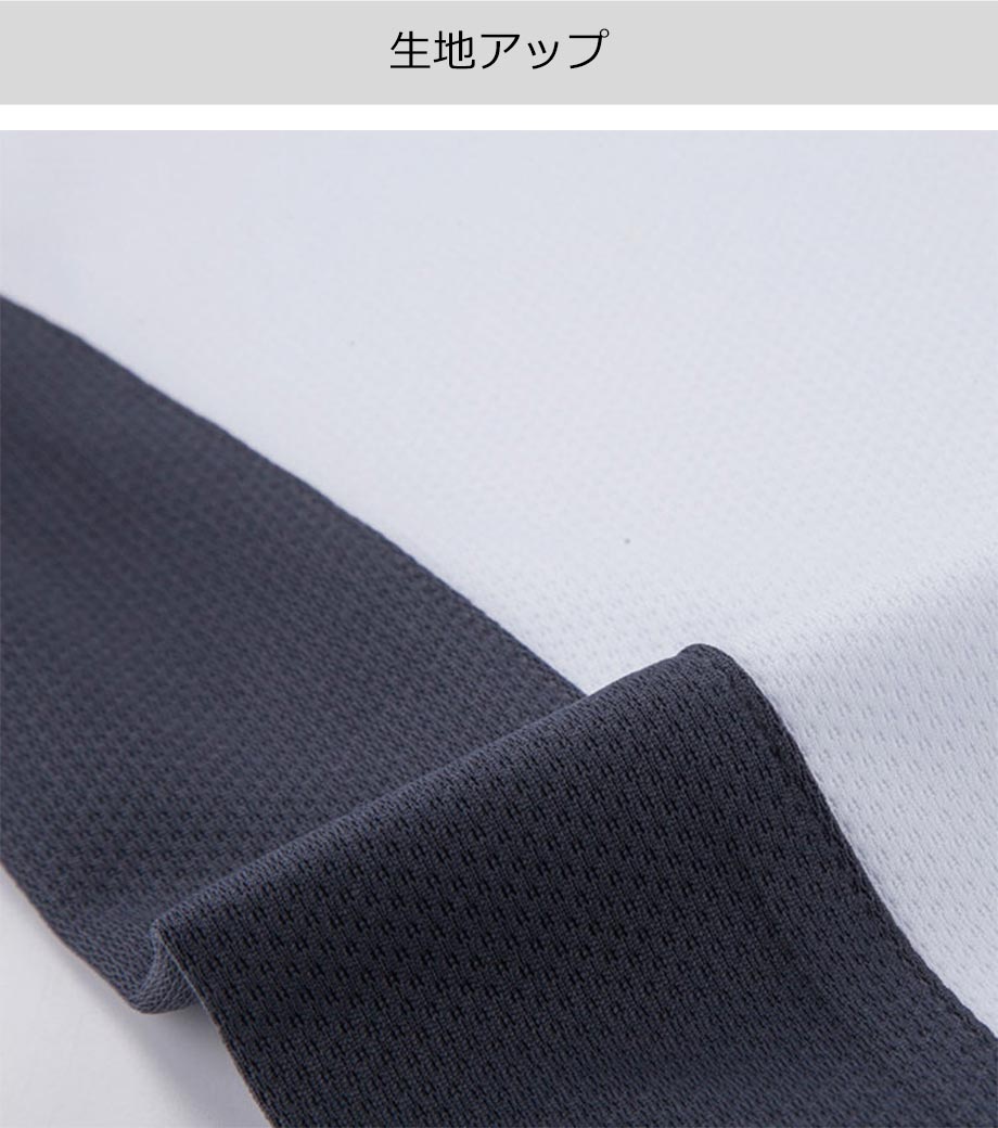 丈夫で適度な厚みとハリのあるメッシュ生地のTシャツです。吸汗速乾性があるため快適な着心地をキープ。フライス編みの襟とカバーステッチの裾で、伸縮性があり着脱しやすいです。袖口はカン止めされているのでほつれにくくなっています。