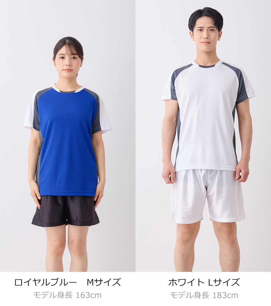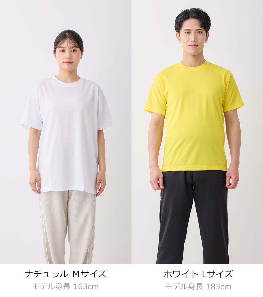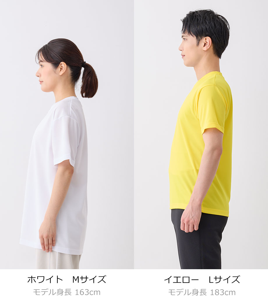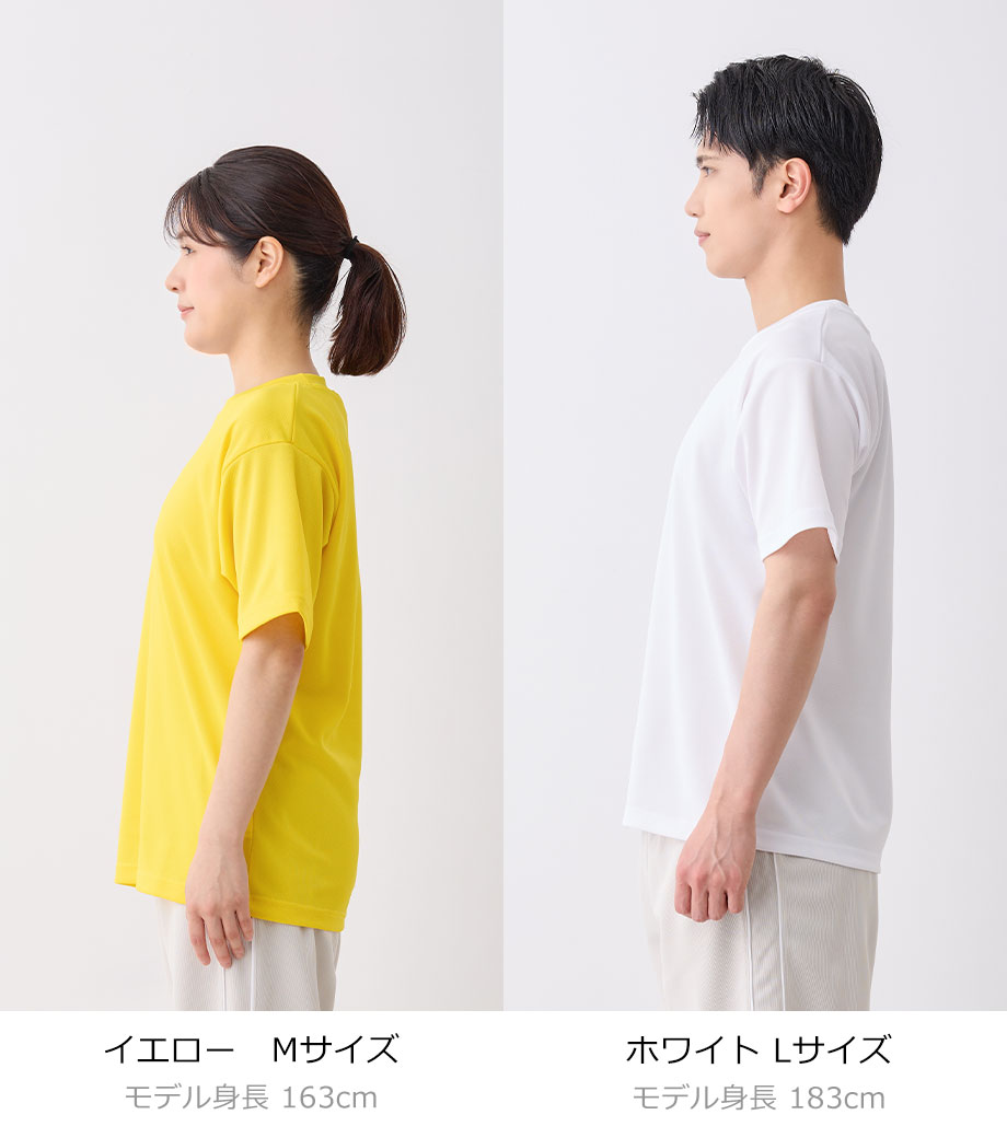 吸汗速乾性のあるポリエステル素材を使用した、ベーシックな半袖Tシャツです。表面はなめらかなスムース生地でシワになりにくく、裏地はメッシュ仕様でサラッとした着心地を実現。襟はフライス生地で型崩れしにくく、着脱もスムーズです。