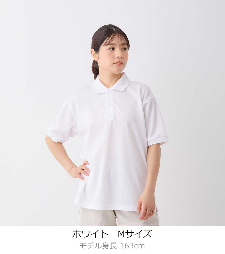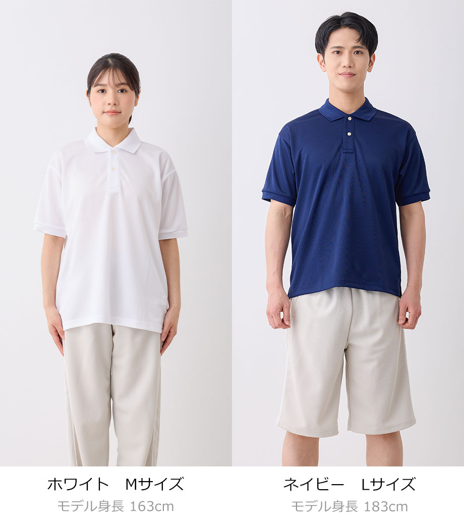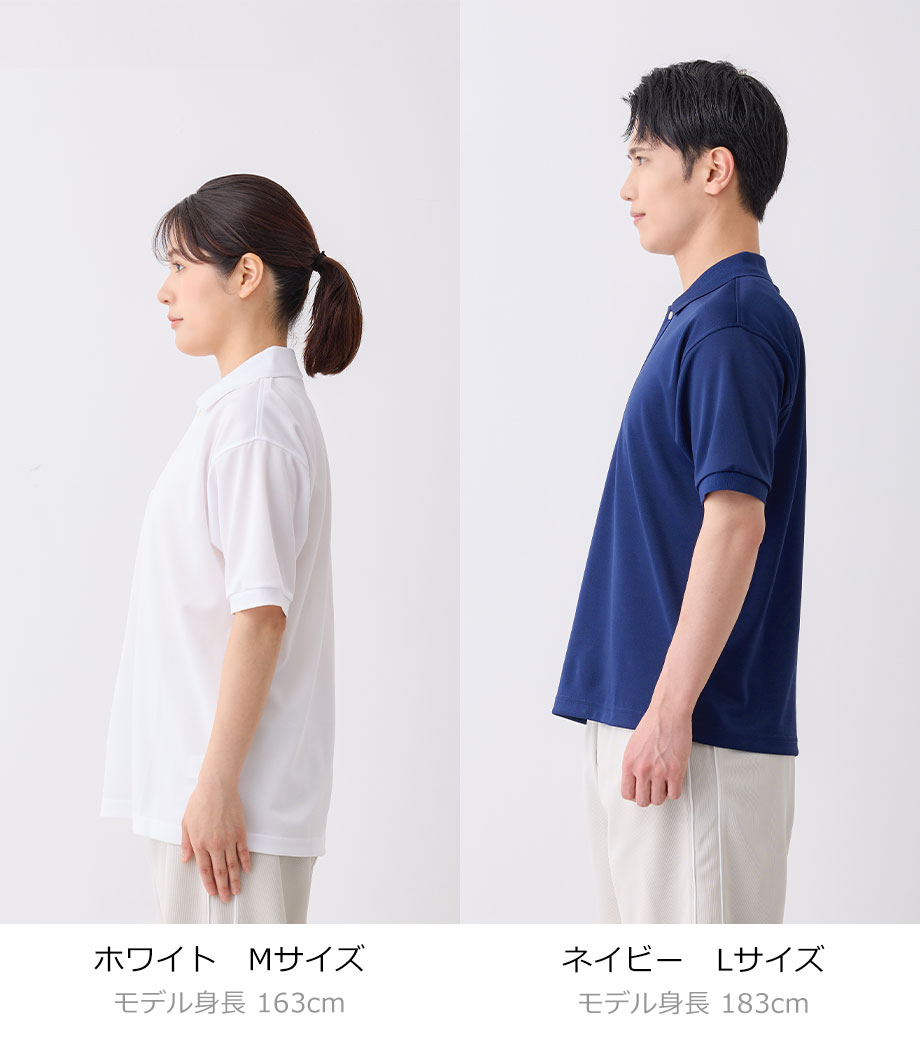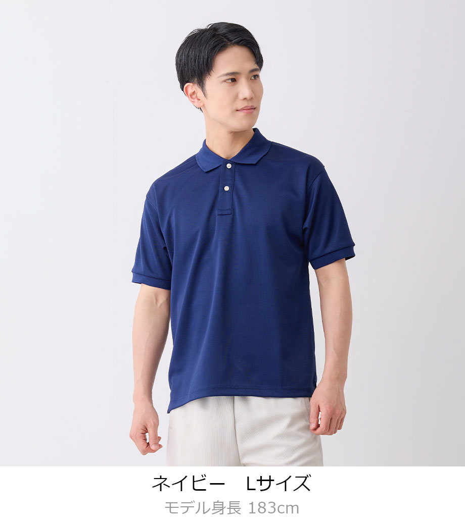 丈夫で適度な厚みのあるポリエステル生地の半袖ポロシャツです。吸汗速乾性があるため快適な着心地をキープできます。襟と袖口は伸縮性のあるフライス編みで着脱しやすく、裾にはサイドスリット入りで動きやすいです。シンプルなデザインなので、年代性別問わず着られます。