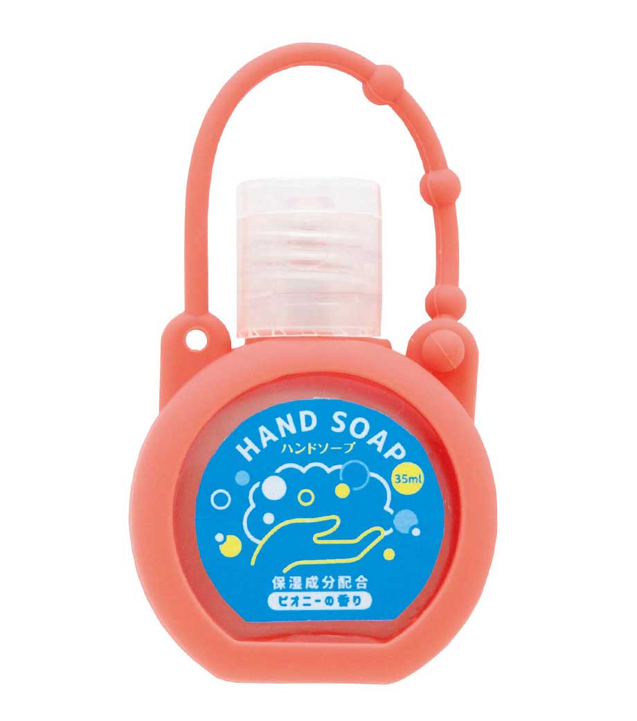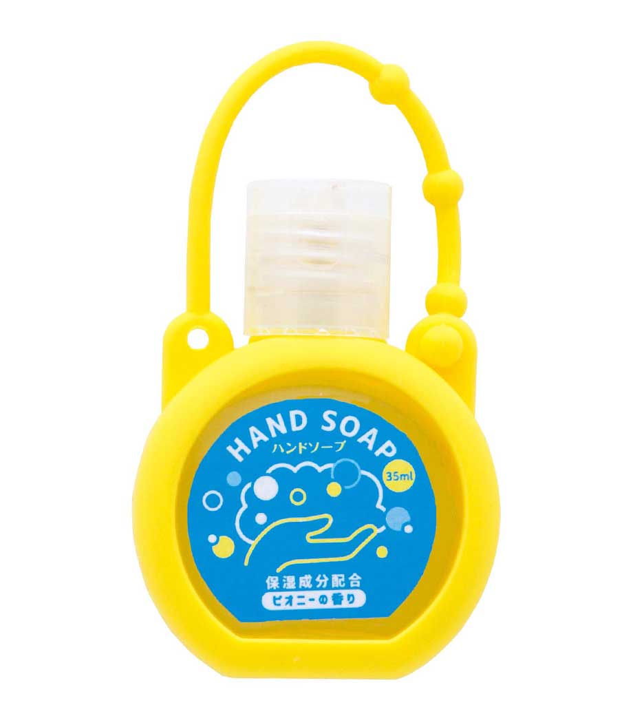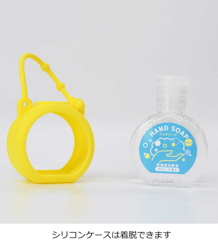 シリコンケース付きハンドソープ35ml1個は、コロンとした形がかわいいハンドソープです。バッグにも付けられるストラップ付きでキーホルダーのように手軽に持ち運べます。4色取り混ぜでお届けするので、選ぶのも楽しいですね。