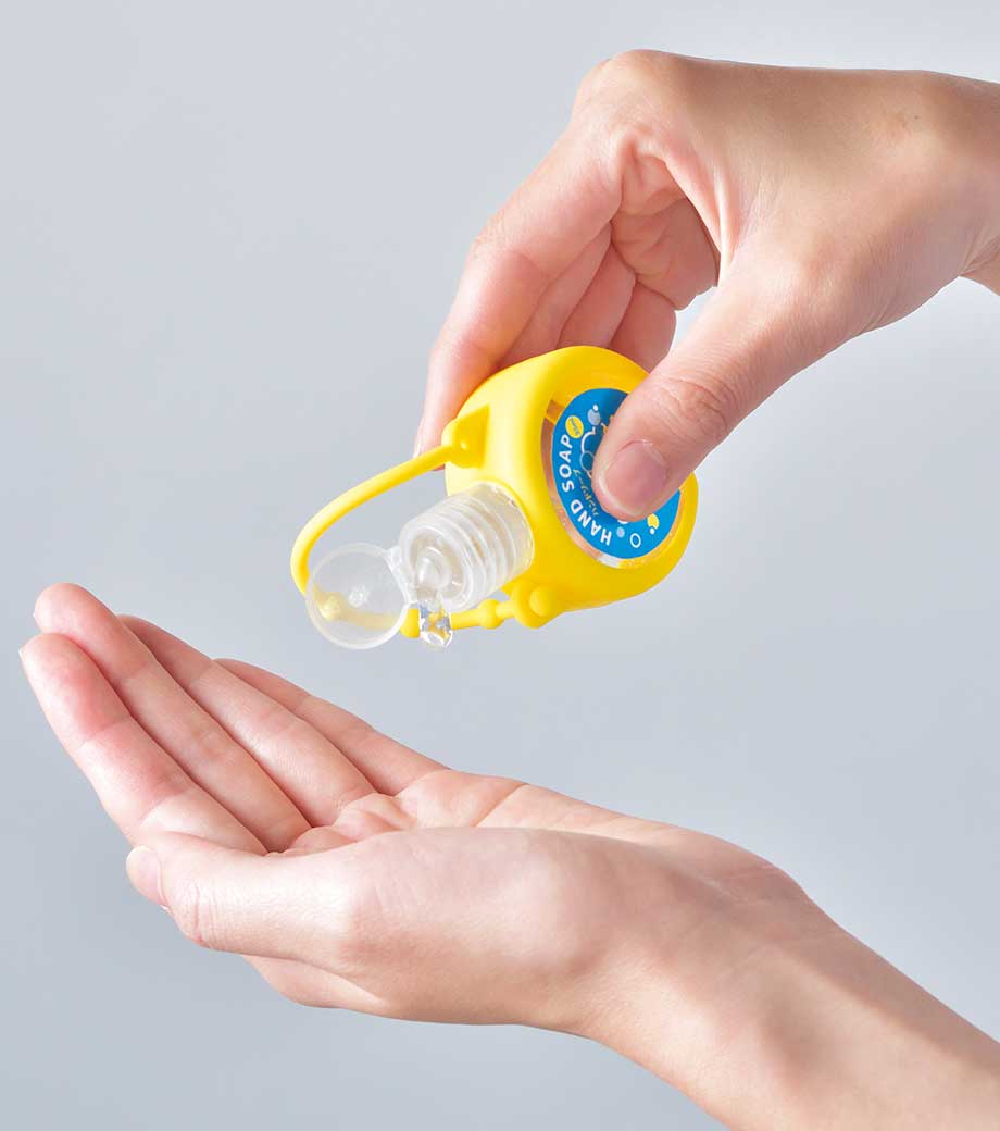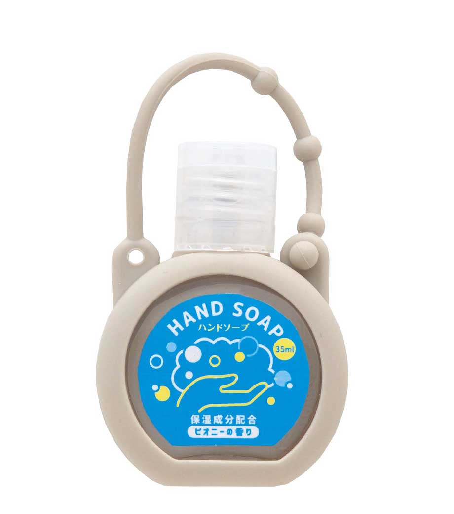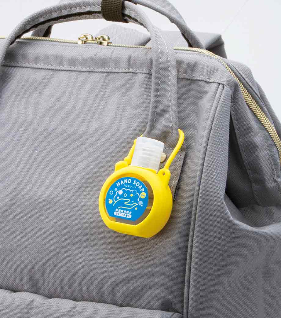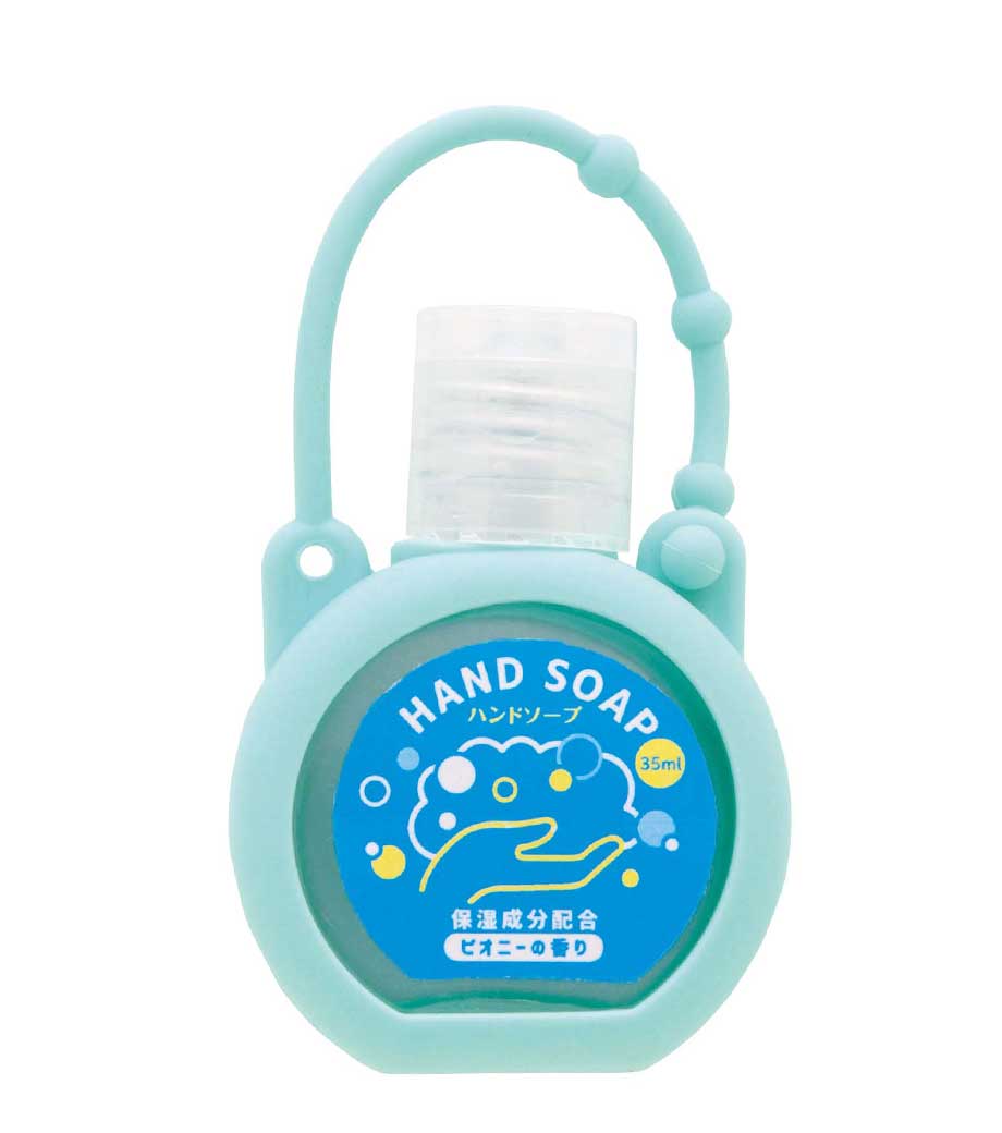 シリコンケース付きハンドソープ35ml1個は、コロンとした形がかわいいハンドソープです。バッグにも付けられるストラップ付きでキーホルダーのように手軽に持ち運べます。4色取り混ぜでお届けするので、選ぶのも楽しいですね。