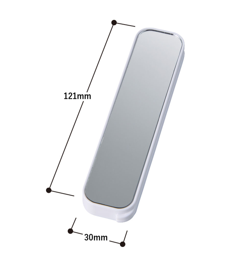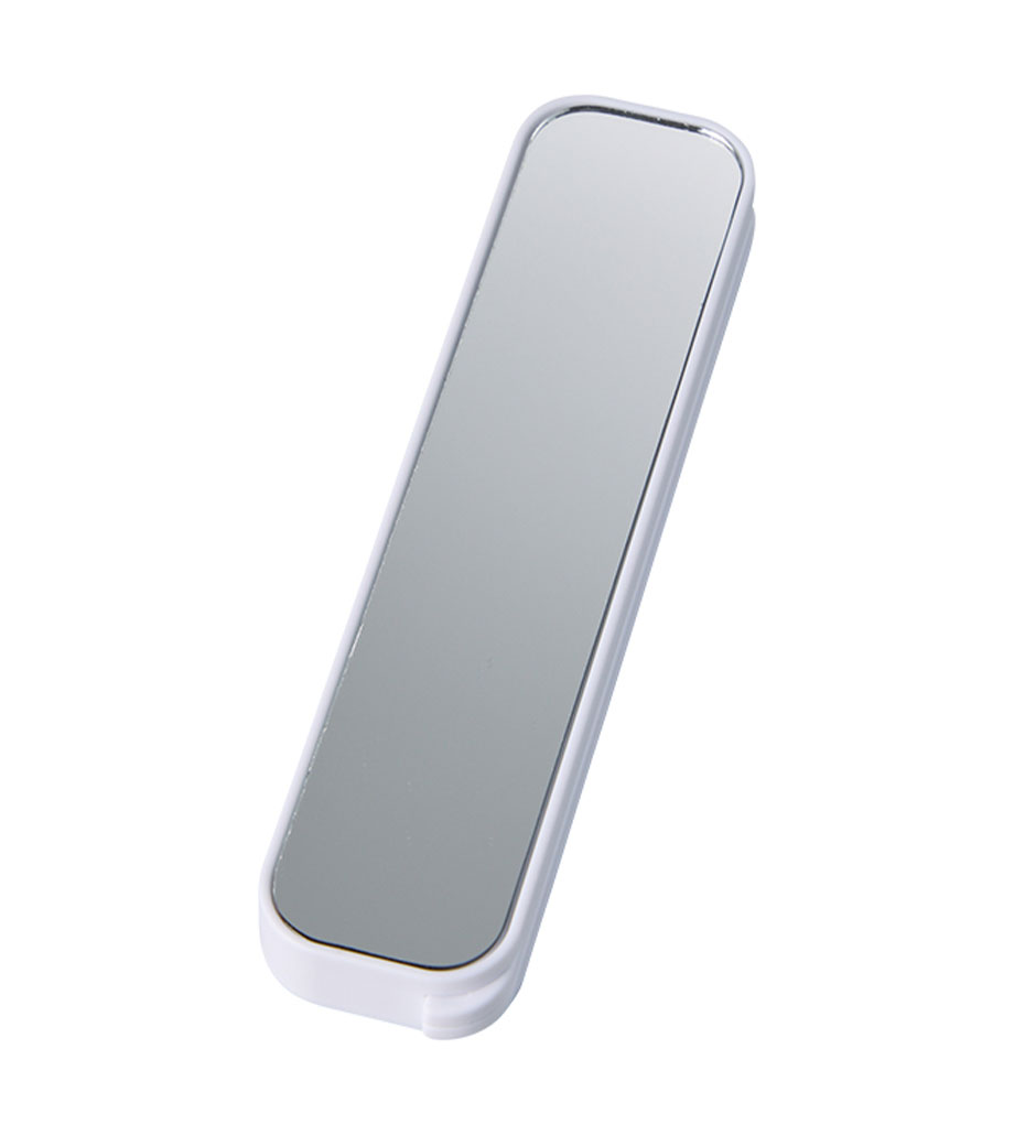 携帯に便利なシンプルなミラー。長方形型で卓上ミラーとしても使えます。日常使いや外出先での身だしなみチェック、メイク直しにぴったりです。